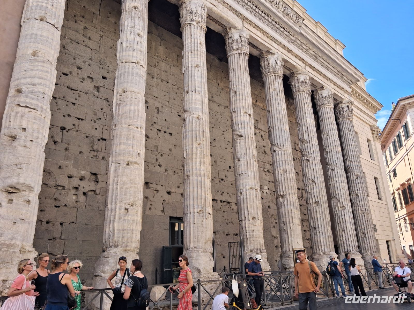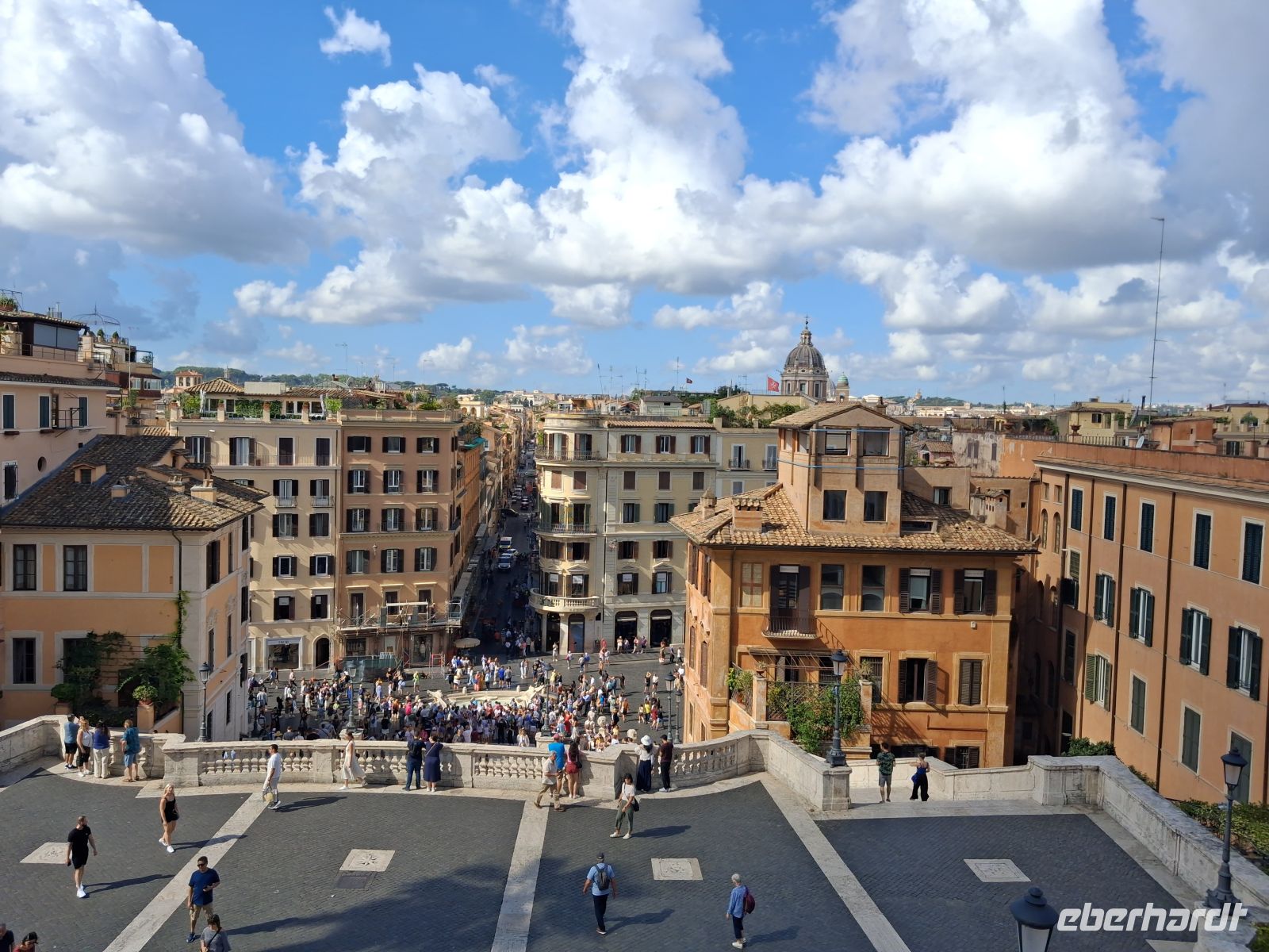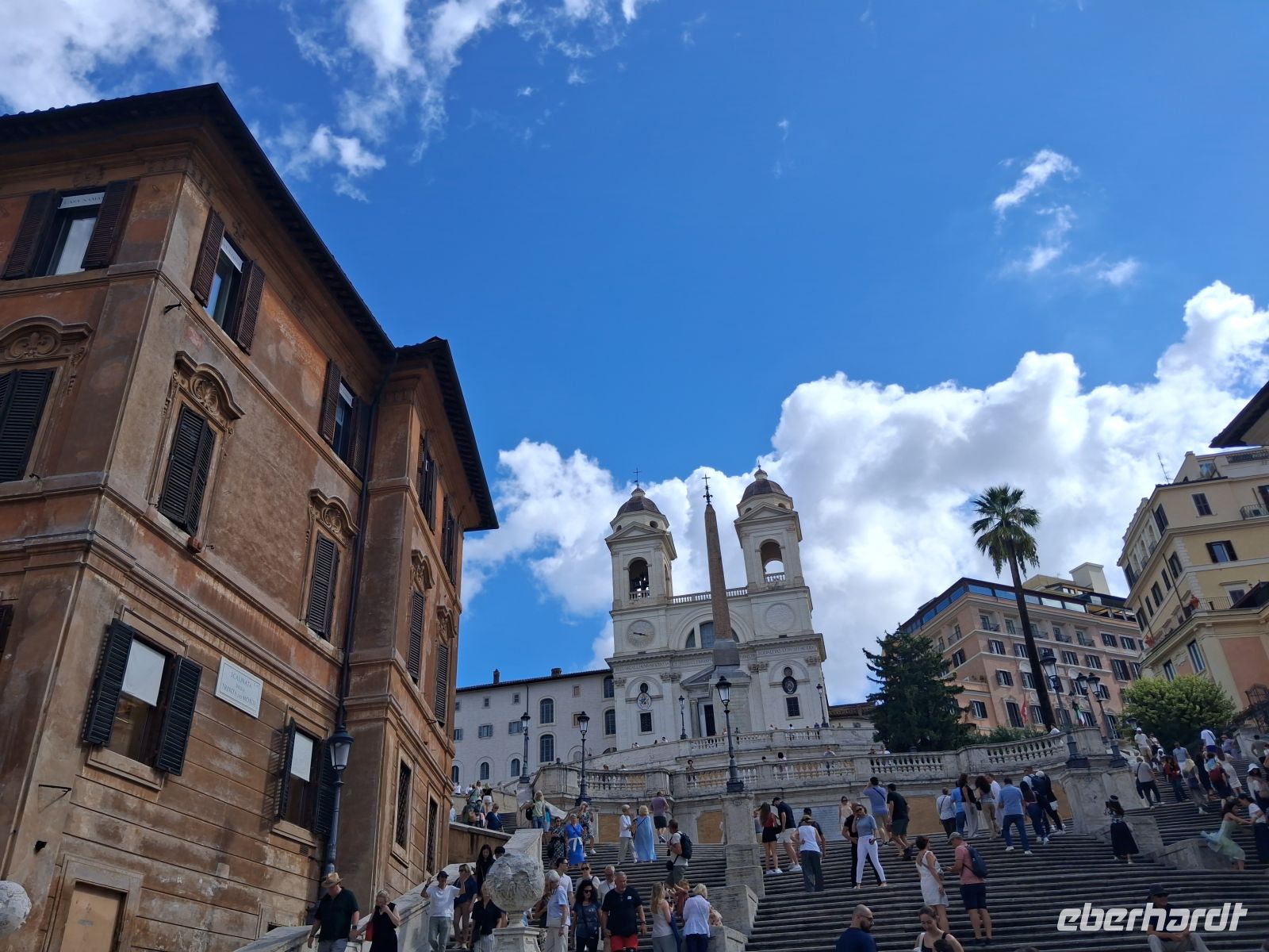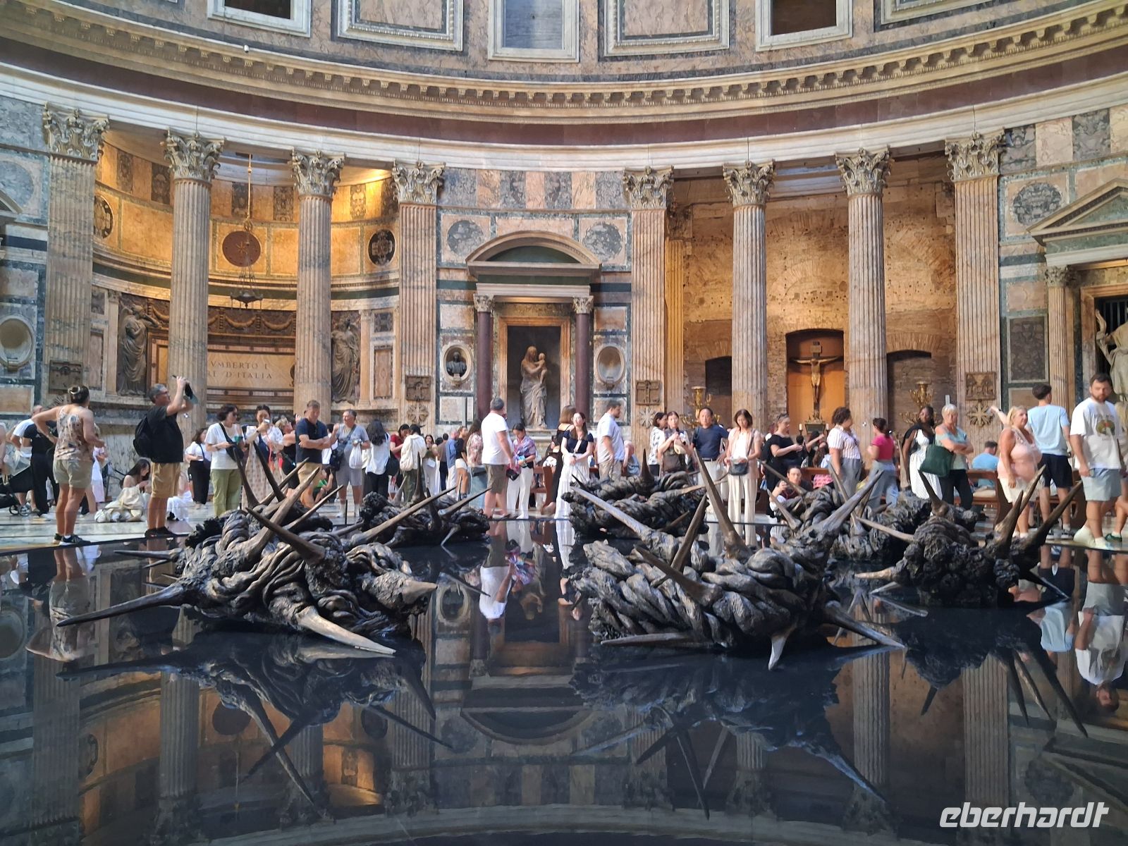 Die Sonne ist zurück. Nach dem Frühstück fahren wir mit der U-Bahn gemeinsam zur Piazza del Popolo, wo wir auf unsere Reiseführerin treffen. Die Piazza del Popolo ist einer der größten Plätze Roms und beliebter Treffpunkt der Römer. Wir erfahren von Agnieszka welche berühmten Filme hier in den 50- und 60er Jahren gedreht wurden und was sich geschichtlich hier abgespielt hat. Wir gehen die Stufen zum Pincio-Park hinauf und freuen uns auf die herrliche Aussicht. Vorbei an Steineichen, Kaki-Bäumen, Feigenbäumen und Kapernbüschen erreichen wir die Villa Medici auf dem Pincio-Hügel. Unser Spazierweg führt uns bis zur Dreifaltigkeitskirche Trinità dei Monti, die oberhalb der sogenannten Spanischen Treppe liegt - wir sind mitten im Herzen von Rom angelangt. Wir gehen die Treppe langsam hinunter und genießen den Blick nach unten und oben. Wir haben etwas Freizeit, um durch die Via Condotti zu schlendern und den wunderschönen Blick zurück auf die breiten Stufen der Spanischen Treppe zu genießen. Auf unserem Weg zum Trevi-Brunnen erklärt Agnieszka uns weitere Sehenswürdigkeiten. Nach einer Mittagspause erreichen wir ein weiteres Highlight: das Pantheon. Das Pantheon, ein sowieso spektakuläres Bauwerk, beherbergt aktuell auch eine moderne Installation mit dem Titel "Corona Gloriae". Das aus sieben Teilen in der Mitte platzierte Kunstwerk, das eine zerbrochene Dornenkrone darstellt, ist Teil des österreichischen Beitrags zum Heiligen Jahr 2025.