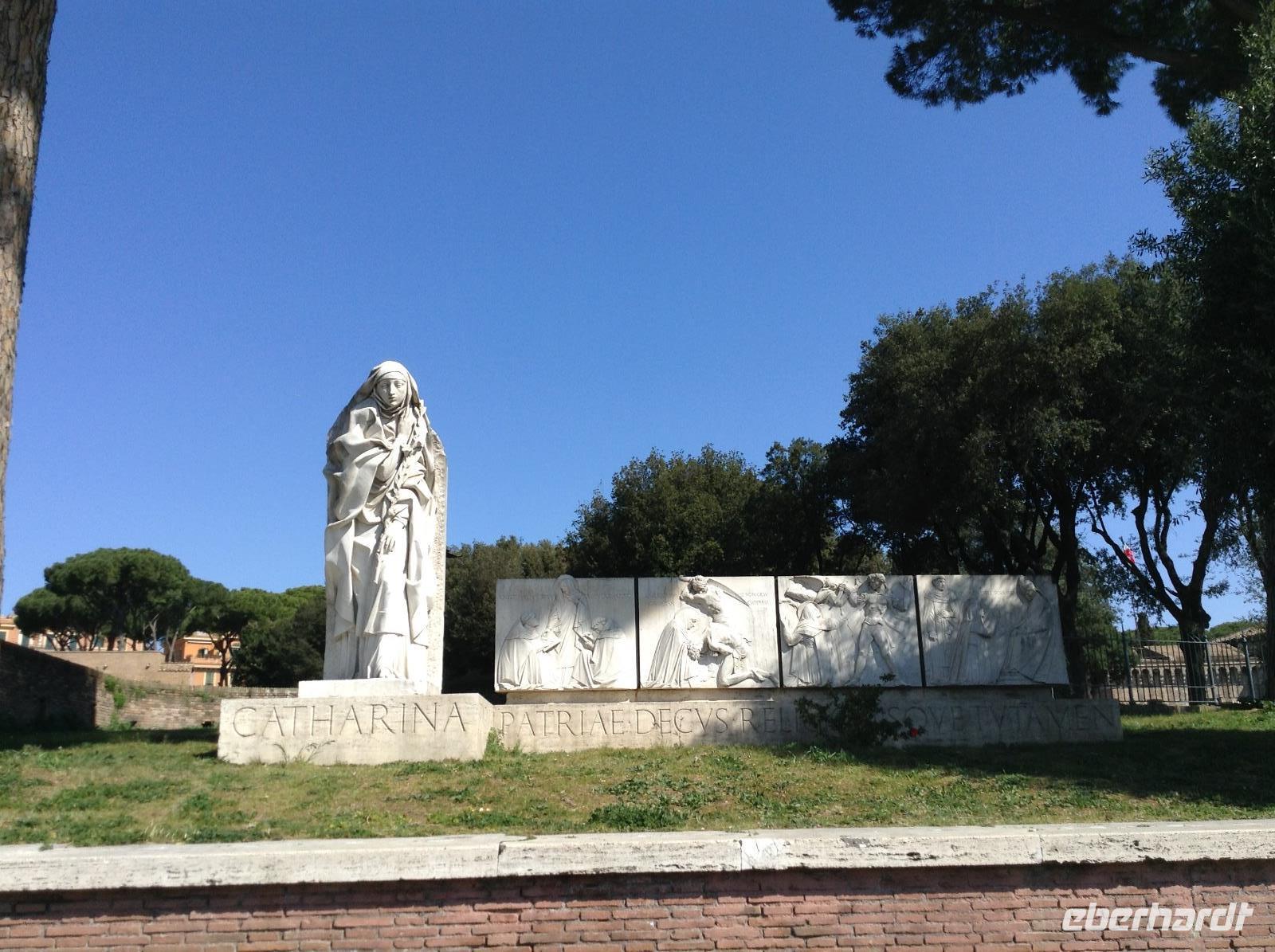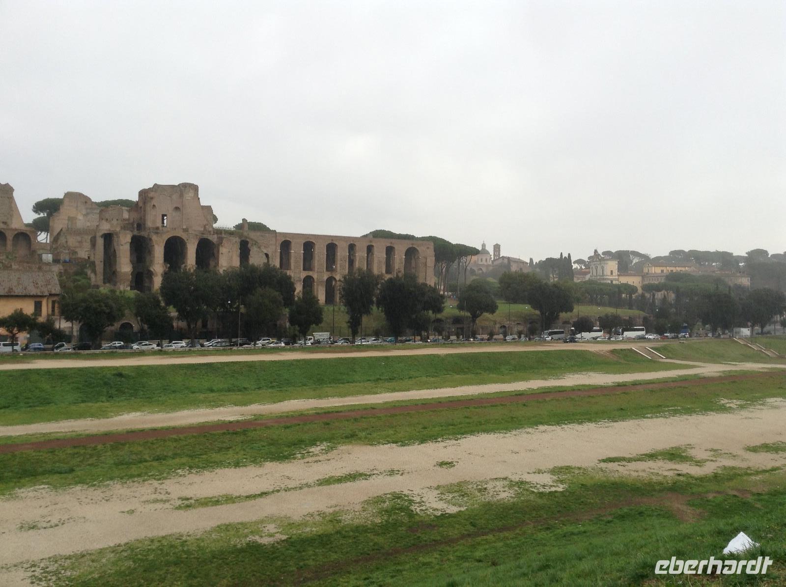 Nach einer guten Stunde Mittagspause ging unsere Besichtigung weiter, wir liefen zum Circus Maximus, der riesigen alten Anlage für antike Pferderennen. Auch von hier aus gab es nochmal einen schönen Blick hinüber zum alten Kaiserpalast. Anschließend stiegen wir noch den Aventin-Hügel hinauf, sahen unterwegs den schönen Rosengarten und den Orangengarten. Der Blick auf Rom an diesem Nachmittag war sehr verregnet, es goss ganz schön. Wir besuchten noch die frühchristliche Kirche Santa Sabina, die durch ihre Restaurierung im Jahr 1914 ihre einstige Schlichtheit wiedergewonnen hat. Ein paar Schritte weiter auf dem Aventin-Hügel ist heute die Hauptniederlassung des Malteser-Ordens. Das Eingangsportal birgt eine ganz besondere Überraschung: den berühmten Blick durch das Schlüsselloch. Jeder, der einmal durchgesehen hat, weiß, was sich dahinter verbirgt....