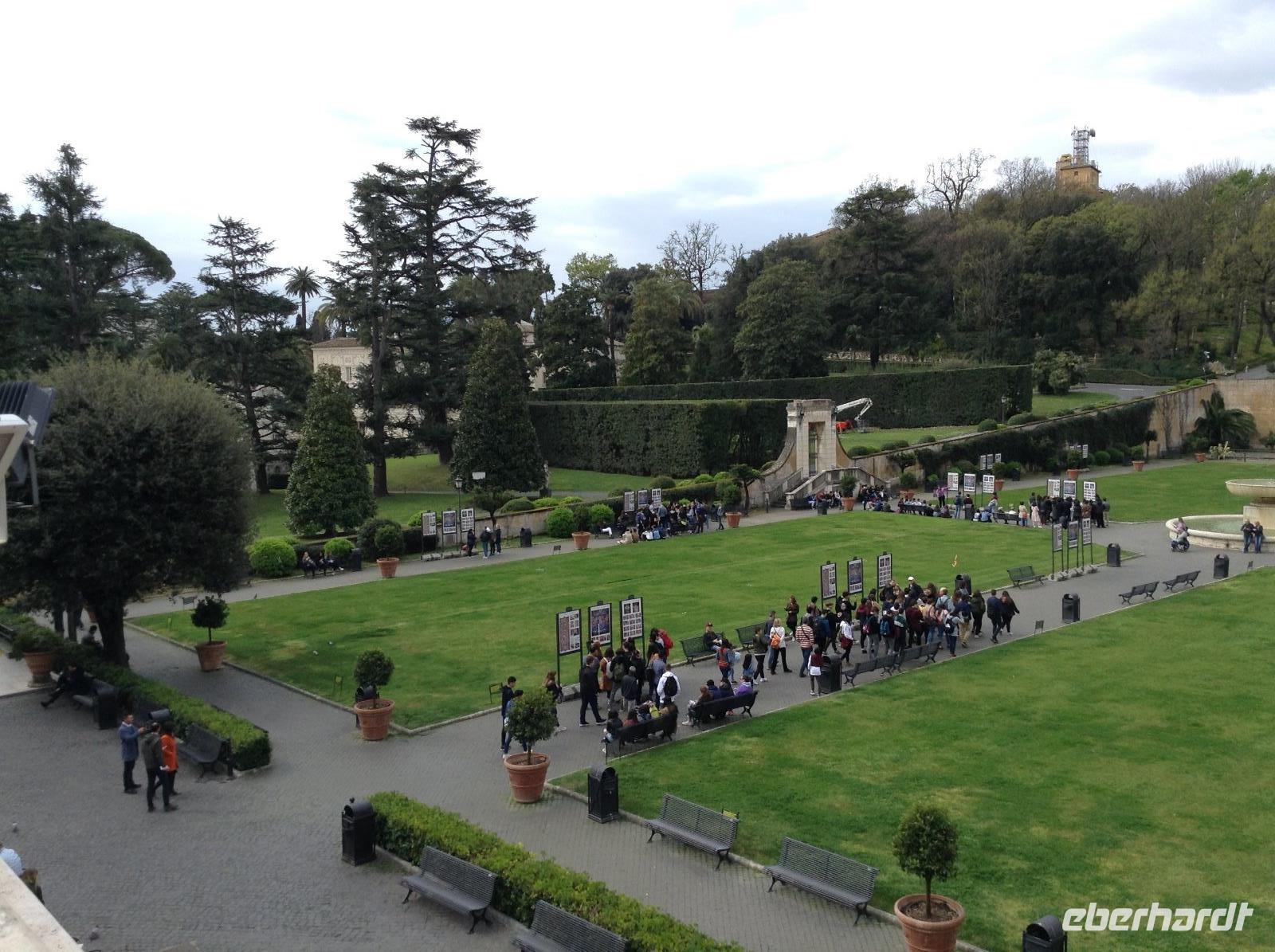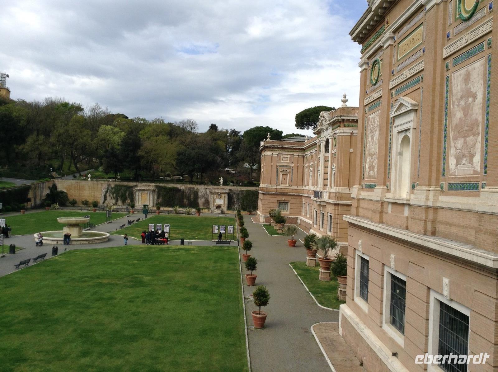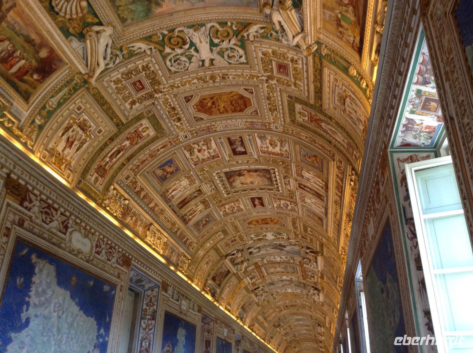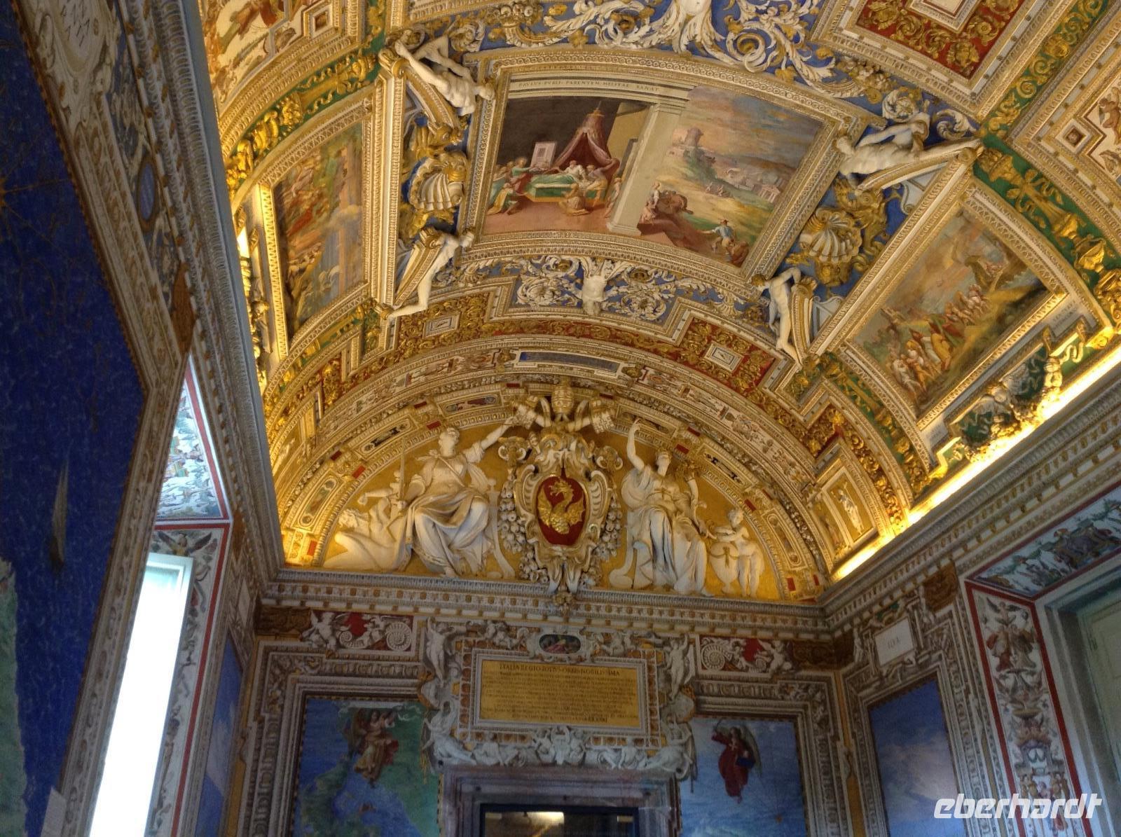 Angekommen am Ausstieg "Ottaviano, San Pietro" mischten wir uns unter die Vielzahl von Menschen, die in Richtung Petersplatz wollten. Danach ging es ein Stück die dicken Mauern des Vatikan-Staates entlang bis zum Eingang in die Vatikanischen Museen, wo uns Norbert bereits erwartete. Wieder einmal mußten wir durch die Sicherheitskontrolle, dann bekamen wir unsere technische Ausstattung und die Führung konnte beginnen. Norbert zeigte uns die wichtigsten und eindrucksvollsten Teile dieser riesigen Ausstellung und so waren wir in der Pinacotec, sahen uns den Innenhof mit der modernen Weltkugel an, spazierten an zahlreichen Statuen und bilhauerischen Kunstwerken entlang, gingen den langen Gang der wunderschönen Teppiche und alten italienischen Landkarten entlang, sahen uns die Räume an, die der junge Künstler Raffaelo im 16. Jahrhundert für den Papst gestaltete. Absoluter Höhepunkt dieser Besichtigung war natürlich der Besuch der Sixtinischen Kapelle, das Meisterwerk Michelangelos und seiner Schüler. Staunend standen wir in dieser Kapelle und betrachteten lautlos diese wundervollen Arbeiten des großen Meisters des 15. Jahrhunderts. In der Sixtinischen Kapelle endete dann auch unser Besuch der Vatikanischen Museen. Von da ging es über einen direkten Verbindungsweg hinüber zum Petersdom. Inzwischen war die Papstaudienz auf dem Platz vorm Dom zu Ende, der Dom hatte wieder geöffnet und wir konnten hinein zur Führung.