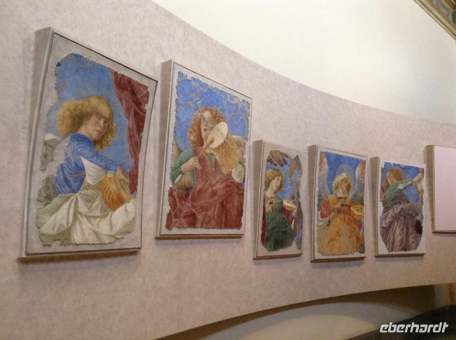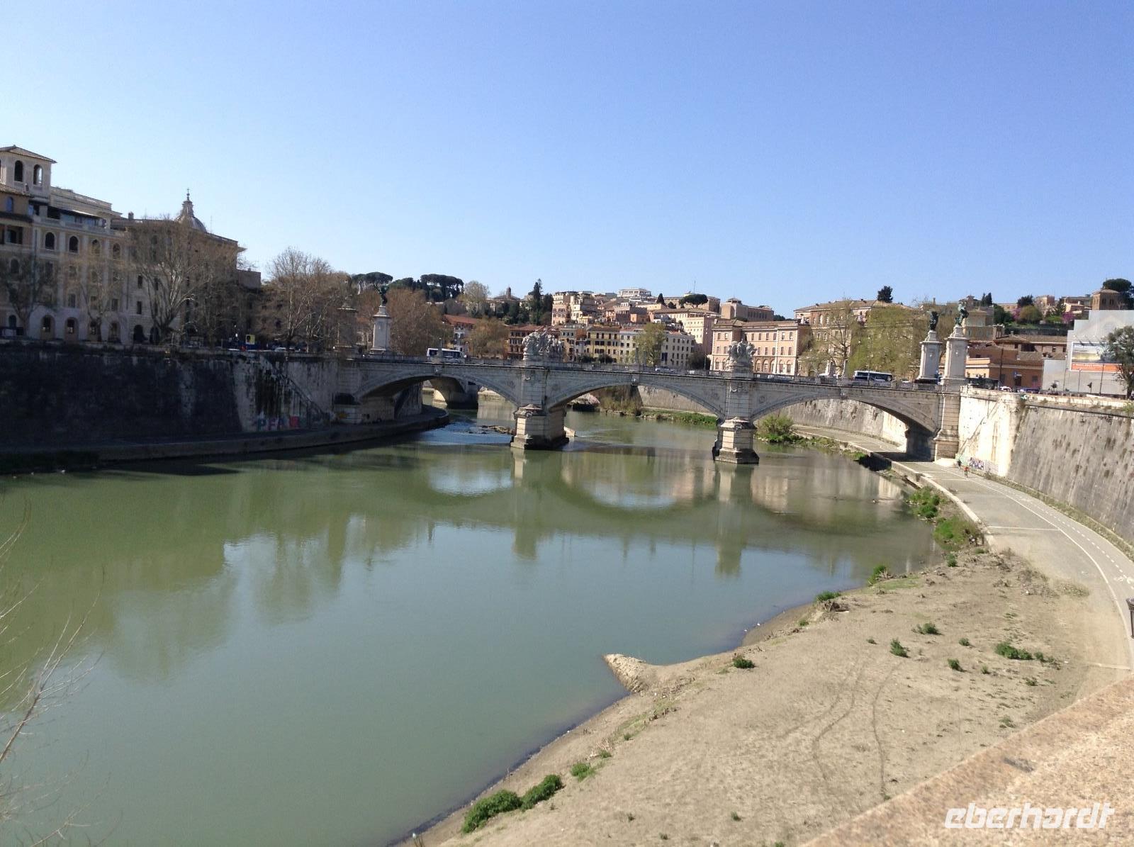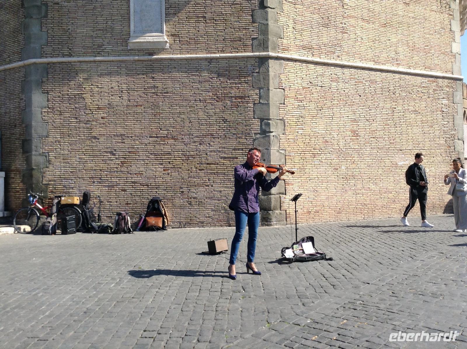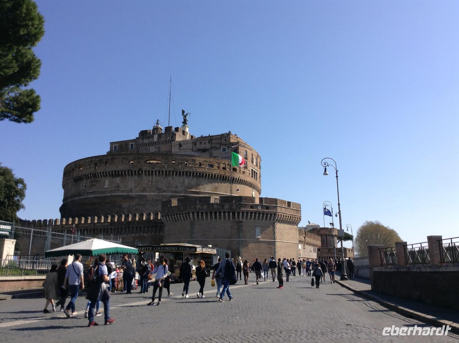 Noch einmal fuhren wir mit der Metro bis zur Station Ottaviano, dort empfing uns Norbert zum letzten gemeinsamen Besichtigungstag. Wir spazierten in Richtung Petersplatz und sahen uns von da aus den Dom und den prächtigen Platz an, den Bernini im 17. Jahrhundert erschuf. Von da aus bummelten wir die Via della Cinciliazione in Richtung Tiber und kamen dabei an einem Filmset vorbei, es wurde gerade ein neuer Filmdreh vorbereitet. An der Engelsburg angekommen, konnten wir gut die Mauern des alten geheimen Verbindungsweges zwischen Petersdom und Engelsburg sehen. Vor der Engelsburg spielten Strassenmusiker und wir lauschten einwenig. Die Engelsburg, ein faszinierender Bau, den Kaiser Hadrian einst im Jahr 139 als Mausoleum bauen liess, diente später Verteidigungszwecken, als Gefängnis und auch zu kaiserlichen Wohnzwecken. Wir betrachteten das Eingangsportal und schlenderten gemeinsam weiter über die Engelsbrücke in Richtung Altstadtgassen. Die Engelsbrücke, die von 10 weißen Marmorengeln von Bernini gesäumt ist, zählt zu den schönsten Brücken Roms.