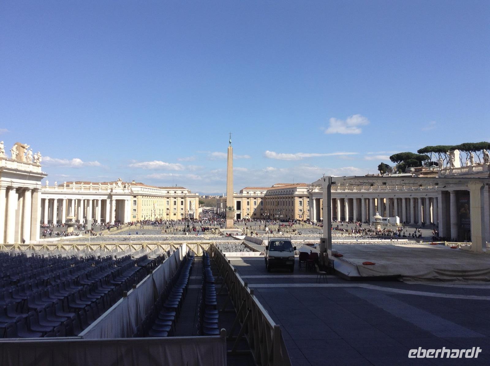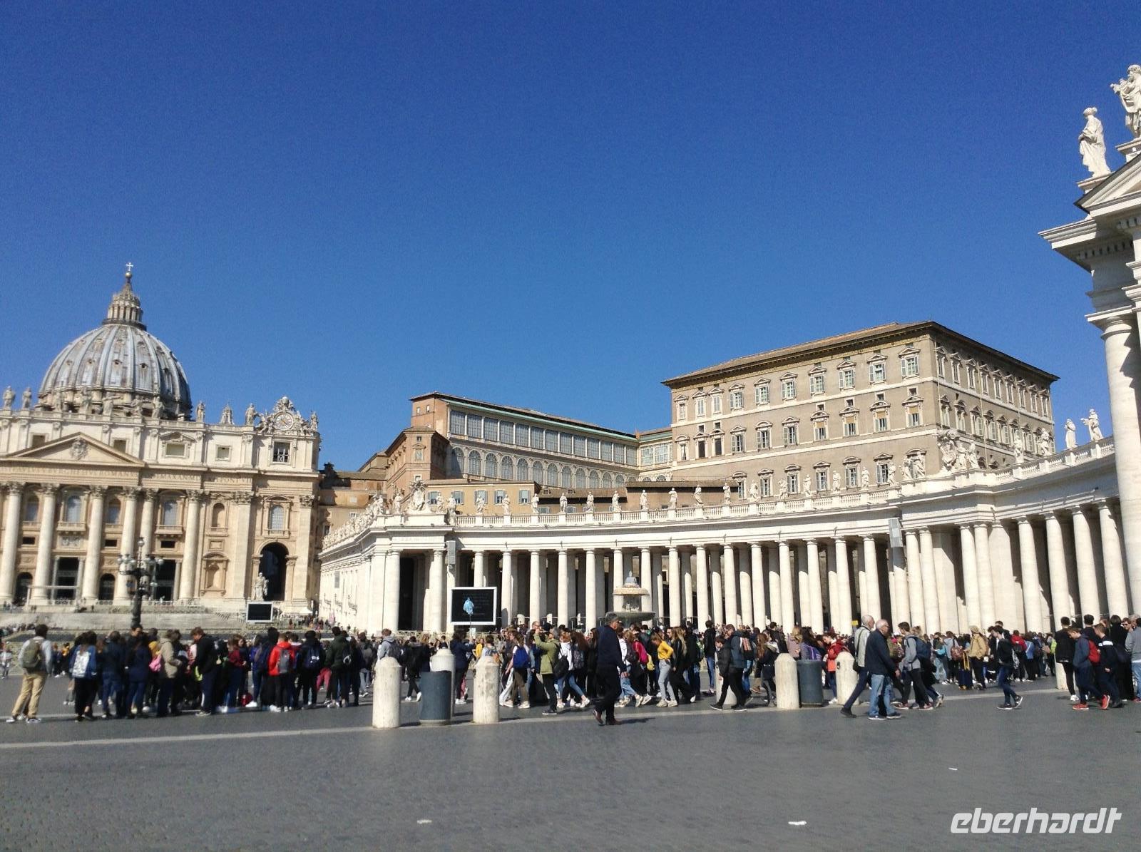 Es war Mittwoch Morgen und auf unserem Weg zum Vatikan erlebten wir, wie voll die Metro sein kann an einem Tag, wo Papstaudienz am Petersplatz ist. Der Umstieg am "Termini" (Hauptbahnhof) und die Weiterfahrt waren eine echte Herausforderung für eine Gruppe von 30 Personen. Aber wir haben diese Herausforderung zusammen gut gemeistert.
