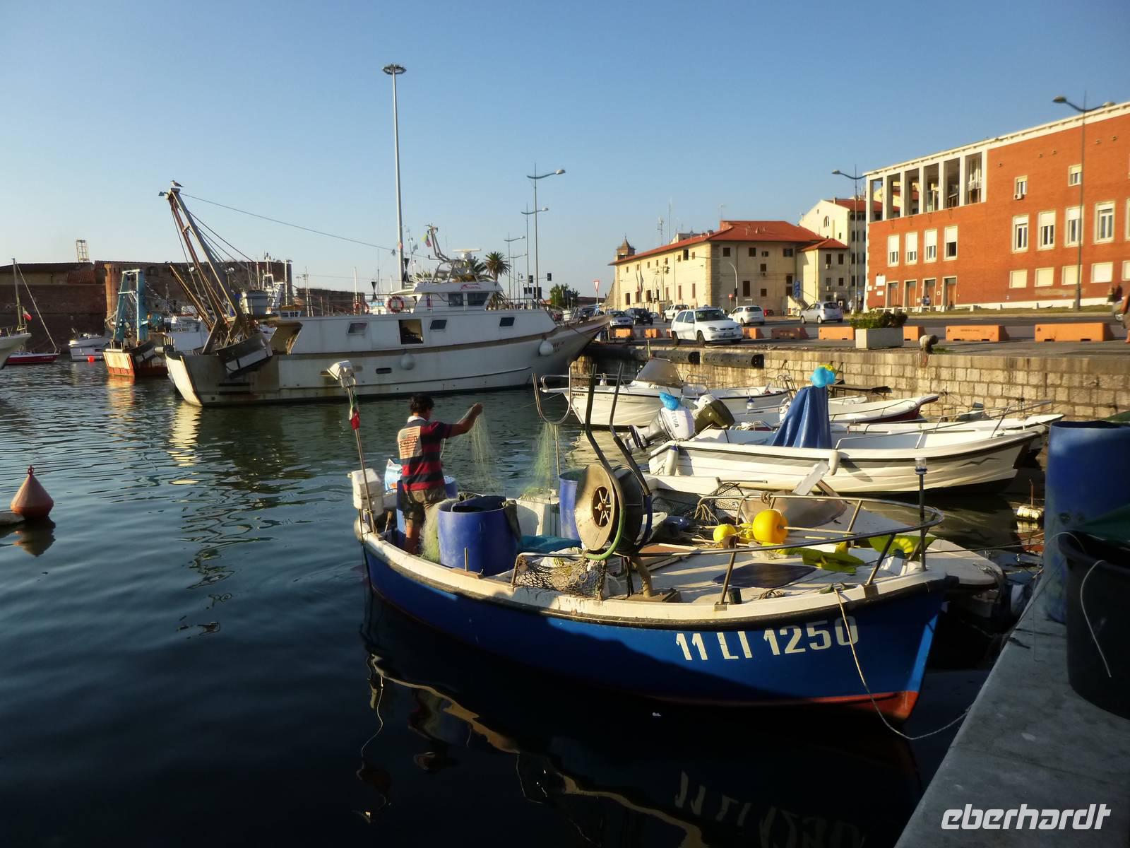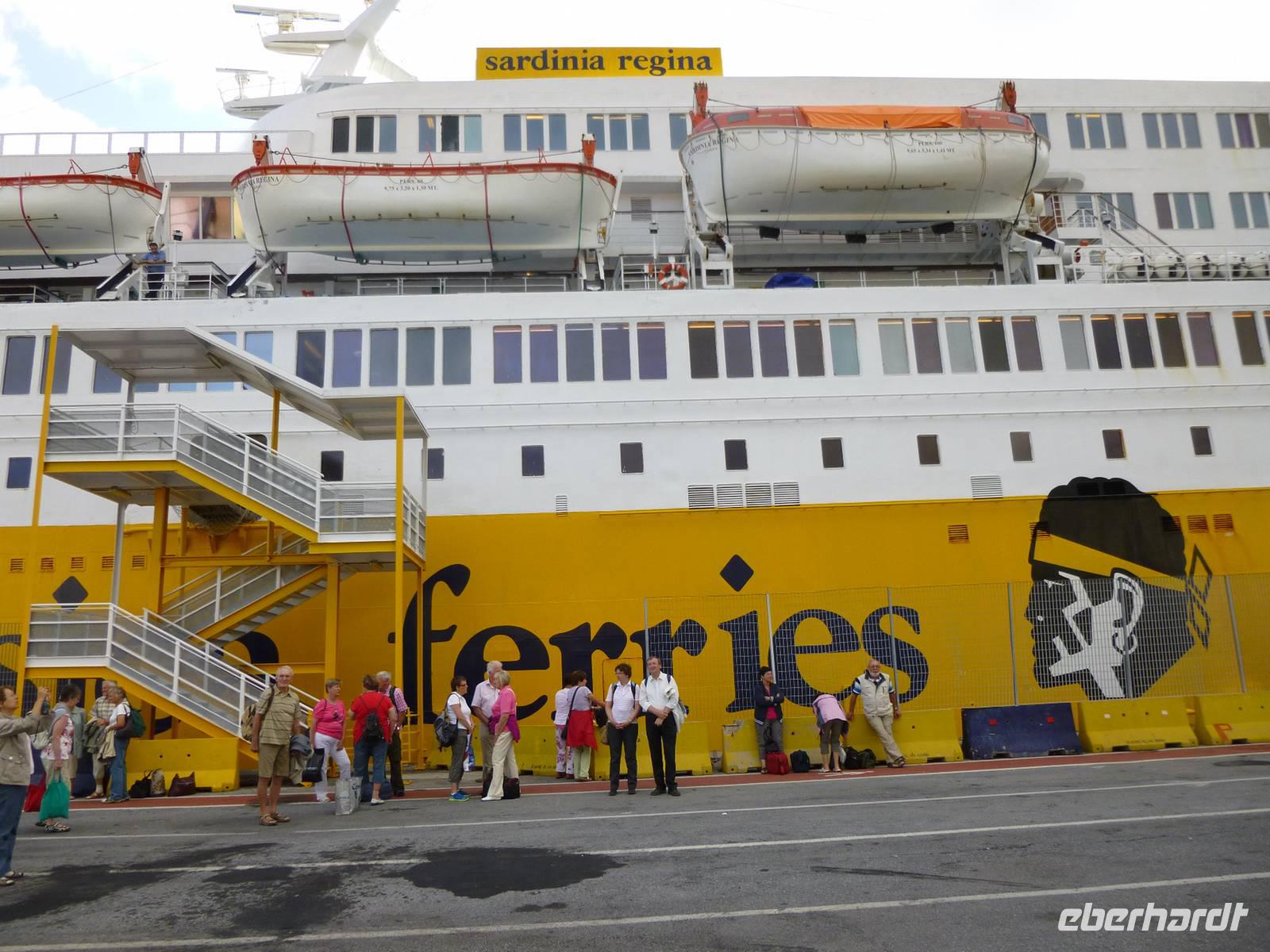 Am nächsten Tag wollen wir zur Fähre nach Livorno, aber ohne eine kleine Wanderung am Gardasee wäre dieser Tag nur halb so schön. Rechtzeitig erreichen wir den Hafen in Livorno, um noch die Stadt zu erkunden und zum Abend eine Pizza ganz nach italienischer Art, also mit viel Lärm um uns, aber auch sehr preiswert und schmackhaft mit einem Becher Wein zu genießen. Das Einchecken verläuft reibungslos und die Überfahrt nach Sardinien beschert uns eine ruhige Nacht.