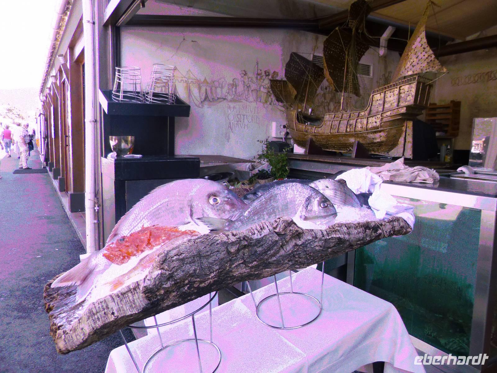 Unseren Ausflug in die Balagne, den „Garten Korsikas", beginnen wir mit einem Stop an der historisch wichtigsten Genueserbrücke der Insel. 1769 fand dort die letzte Schlacht der Korsen gegen die Franzosen statt. Seitdem gehört Korsika zu Frankreich. Danach geht es über die Schnellstraße zügig zur Westküste und Isula Rossa ist erreicht. Gemeinsam bummeln wir zur Markthalle und erfreuen uns an das vielfältige Angebot an korsischen Spezialitäten. Ich empfehle meinen Gästen zu Mittag eine korsische Fischsuppe und wir gehen gemeinsam essen. Die Einen sind begeistert, für andere war es wohl nicht so das Richtige. Doch ich bin zufrieden, dass sich doch die meisten Gäste auch auf das Kennenlernen korsischer Spezialitäten eingelassen haben. Zeit für einen individuellen Bummel durch Calvi bleibt natürlich auch noch. Dann geht es über schmale Straßen und kleine Dörfer bis nach Sant Antonino. Ein letzter gemeinsamer Spaziergang erschließt uns diese Schutzburg aus dem Mittelalter. Wieder am Hotel angekommen können alle nochmals ein Bad im warmen Wasser des Mittelmeers vor dem Abendessen nehmen.