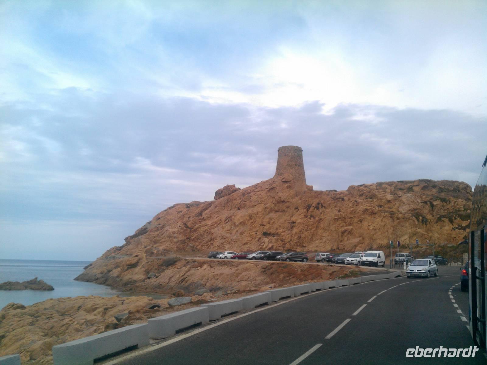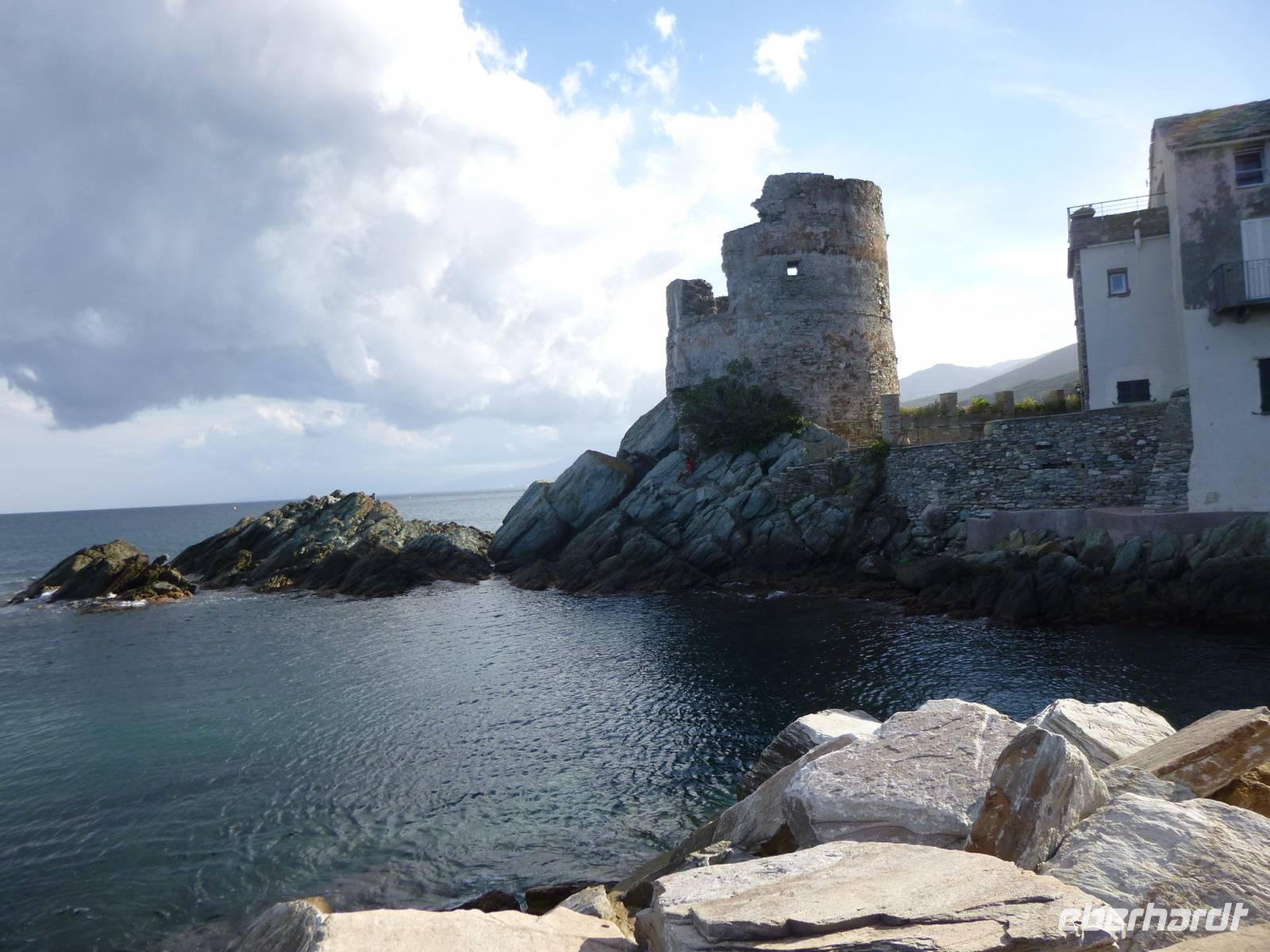 Dann geht's los, unsere Fahrt ums Cap Corse. Den ersten Stop legen wir gleich am Col Teghime ein und die Sicht reicht bis zur Lagune von Bigulia. Nonza ist unser nächstes Ziel aber dort ist heute so viel Ausflugsverkehr, dass unser Bus keine Parkmöglichkeit hat. Wir machen an der Küstenstaße Fotostops. Am Cap Corse ist der wind dann so stark, das wir zwar einen Fotostop einlegen können, aber unser Picknick wäre hier vom Winde verweht! So Fahren wir dann weiter bis Macinaggio und postieren unseren Bus so, dass das Picknick doch noch ein voller Erfolg wird. Fröhlich fahren wir dann die Ostküste zurück nach Bastia. Bevor wir aber den Fährhafen erreichen, unternehmen wir noch einen Abschiedsspaziergang in Erbalunga.