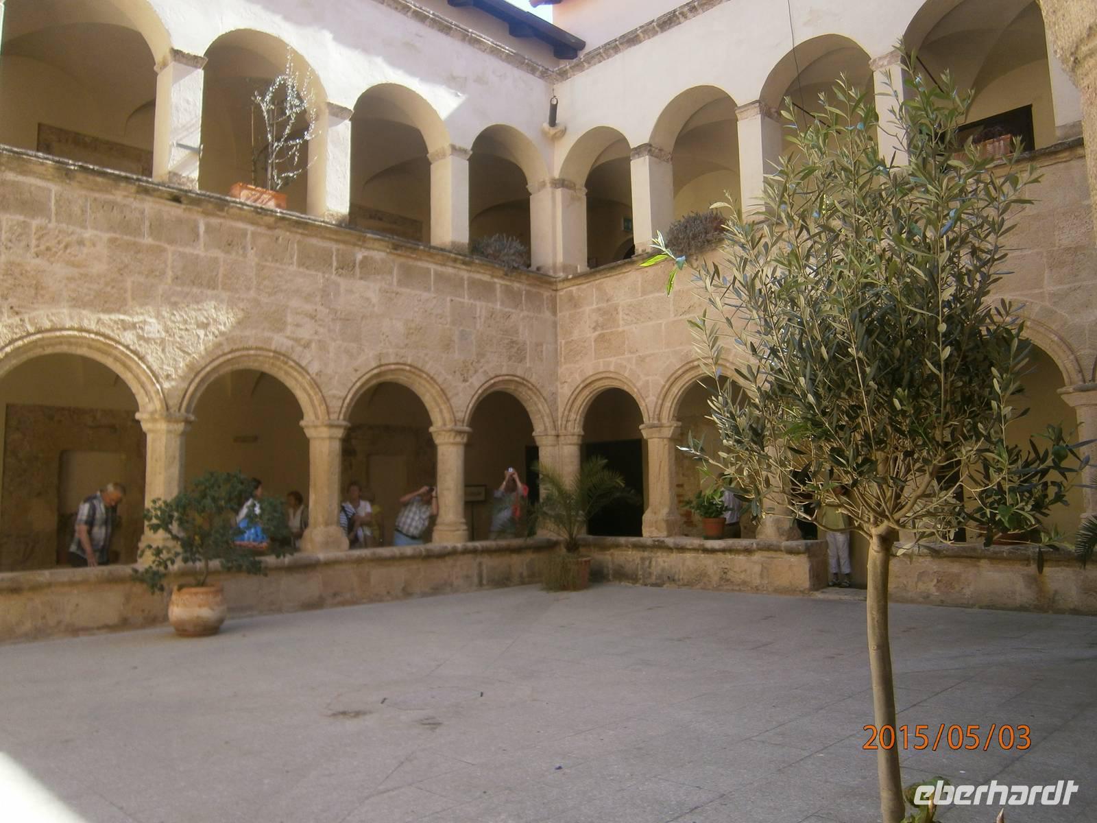 Unser Buschauffeur hat heut seinen wohlverdienter Ruhetag. Unser Hotel Rina liegt nah am Strand und so spazieren wir an diesem Morgen, entlang der Strandpromenade hin zur Altstadt von Alghero. Die Stadt verfügt über zahlreiche mittelalterliche Baudenkmäler. Dicke Mauern umschließen sie und schmale Gassen führen zu den Kirchen und Plätzen. Während unseres Rundganges, gemeinsam mit Sophie, passieren wir unter anderem die Piazza Civica, die Via Santa Barbara, die Via Manno, die Via Principe Umberto und die Piazza Teatro. Unser Rundgang führt uns auch auf die alte Festungsmauer, sie wurde im 12. Jahrhundert von den Dorias erbaut und später von den Aragonern verstärkt. Ein weiterer Besichtigungspunkt ist die Kirche San Francesco mit ihrem romanischen Kreuzgang. Von Sophie erfahren wir auch das noch viele Bewohner von Alghero die katalanische Sprache sprechen. Hintergrund dafür ist, dass spanische Kolonisten die Stadt im 14. Jahrhundert neu besiedelten und es in der heutigen Zeit verschiedene Vereinigungen gibt, die die Tradition der katalanischen Sprache und Kultur weiterführen.