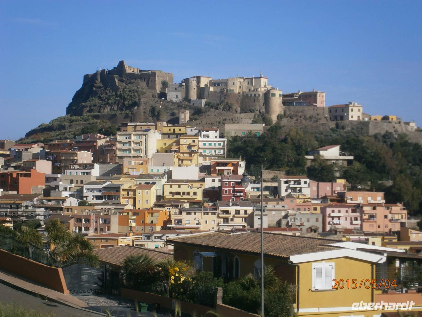 Einer der Hauptorte und das touristische Zentrum an der Costa Smeralda ist Porto Cervo. An diesem Vormittag scheint der Ort noch zu schlafen. Wir spazieren über die kleine Piazetta zum Hafen hinunter. Gerade in den Sommermonaten gehen viele Prominente mit ihren Luxusliner im Yachthafen von Porto Cervo vor Anker. Über einen kleinen Pfad erreichen wir die Kirche Stella Maris. Weiß getüncht erhebt sie sich über dem Neuen Hafen, für viele ist die Kirche das Wahrzeichen. Gebaut wurde sie erst im Jahre 1968 im sogenannten neosardischen Stil. Von Porto Cervo aus fahren wir in das Landesinnere. Zur Mittagszeit sind wir in Orgossolo zu einem sardischen Hirtenessen angemeldet. Der Ort ist weltbekannt für seine Murales - Wandgemälde - die an die Häuserfassaden gemalt wurden. Wir treffen uns mit Mario, er fährt unserem Bus voraus und führt uns in den Wald. Am Grillplatz gibt es dann Salami, Pecorino (keinen hüpfenden Käse), gekochtes Lammfleisch, gegrilltes Schweinefleisch und unter anderem „carasau - eine Art sardisches Knäckebrot. Dazu serviert man unseren Gästen auch Rotwein. Bei manch einem unserer Gäste löst das die Zunge und letztendlich wünschen sie sich eine „Gallone". So entsteht der Name für die Reisegruppe. Die sardische Küche gilt als ausgesprochen gesund und ist streng an Traditionen gebunden. Eine Erklärung dafür das auf Sardinien so viele Hundertjährige Einwohner leben. Zum Abschluss des Hirtenessens zelebrieren uns die einheimischen Männer noch den typischen a Capella Gesang. Dann heißt es Abschied nehmen, denn wir müssen weiter. Unser Ziel an diesem Reisetag ist die Stadt Alghero. Hier hat unser Reiseveranstalter Eberhardt Travel für unsere Reisegruppe im **** Hotel Rina die Zimmer reserviert.