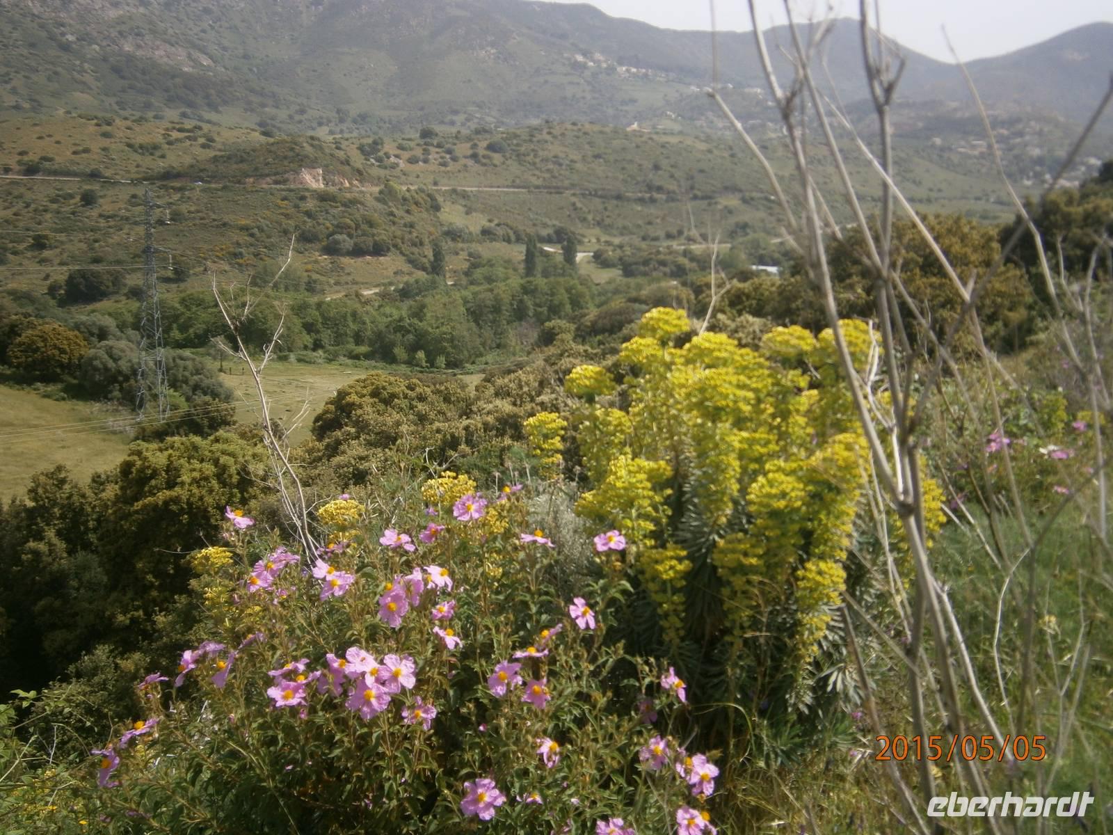 Entlang der Küstenstraße fahren wir zurück nach Alghero. Auf der Fahrt bieten sich uns Ausblicke auf das Bergmassiv des Monte Ferru. Es ist die größte Formation vulkanischen Ursprungs auf Sardinien. Zu den Gesteinsarten des Monte Ferru zählt auch der Trachyt - dieser Stein findet vornehmlich Verwendung beim Kirchenbau als Fassade, für den Boden aber auch für die Inneneinrichtung. Üppig blühender Ginster, bizzare Felsformationen und die Überreste der zahlreichen Wachtürme geben uns immer wieder die Gelegenheit ein Foto zu schießen. So manch blühendes Blümchen wird zum lohnenden Fotomotiv. Am Nachmittag sind wir dann wieder zurück im Hotel Rina und unsere Gäste nutzen die Zeit für ein Bad im Hotelpool oder im Meer.