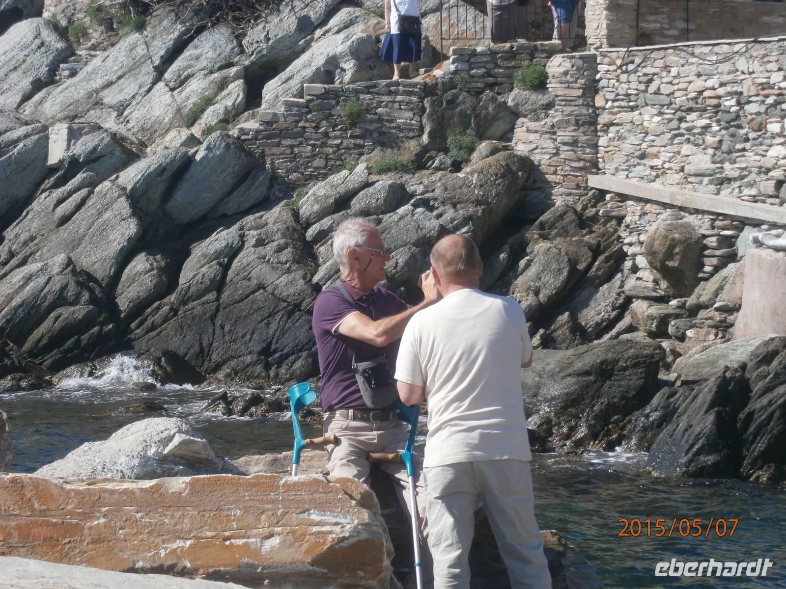 An diesem neuen Morgen heißt es Abschied nehmen von Sardinien. Nach einem zeitigen Frühstück laden wir das Gepäck unserer Gäste und fahren in die Hafenstadt Santa Teresa di Gallura. Bevor wir mit dem Schiff nach Korsika fahren, eröffnen sich uns immer wieder Ausblicke auf die faszinierende sardische Landschaften und kleine historische Städte. Wir nehmen uns auch Zeit für einen Fotostop, um auf Castelsardo zurück zu schauen und den steinernen "Elefanten" zu fotografieren. Im Hafen von S. Teresa di Gallura liegt schon unsere Fähre vor Anker, die uns innerhalb der nächsten Stunde nach Korsika bringt. Vom Schiff aus blicken wir zurück auf die Gallura - der Küstenabschnitt im Nordosten der Insel von Sardinien. Doch unsere Rückblicke sind getrübt, denn gerade während unserer Überfahrt zieht Nebel durch die Straße von Bonifacio. Von der Felsenküste und den dazu gehörenden Inseln ist nix zu sehen. Unsere Fähre bringt uns auf die Insel Korsika. Bonifacio, eine der Hauptsehenswürdigkeiten von Korsika, empfängt uns im Sonnenschein. Vom Schiff aus können wir die Altstadt sehen, welche hoch über dem Meer thront auf einem Plateau. Der Hafen der Stadt liegt idyllisch in einem 1,5 Kilometer langem Fjord. Während unseres Aufenthaltes genießen wir die warmen Sonnenstrahlen. Weiter geht unsere Fahrt an diesem Tag und wir erreichen am späten Nachmittag unser Hotel U Paradisu in Porticchio. Das Hotel liegt am Meer und hat einen direkten Zugang zum Strand. Natürlich nutzen unsere Gäste die verbleibende Zeit um im Meer zu baden. Hinterher ist dann „große Wäsche" angesagt.