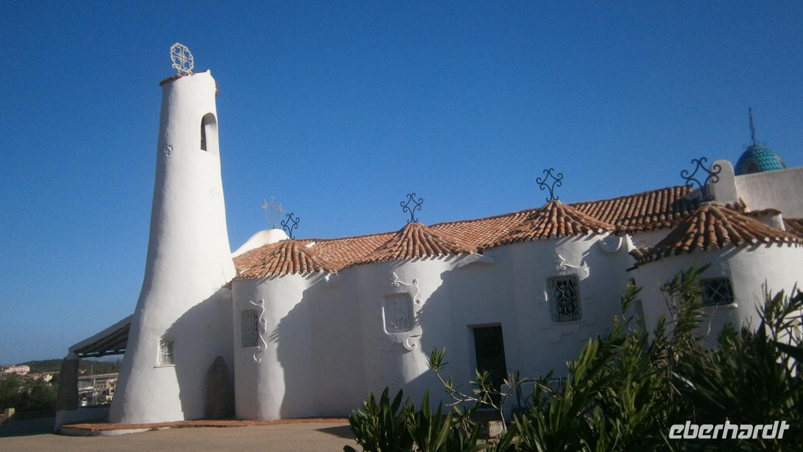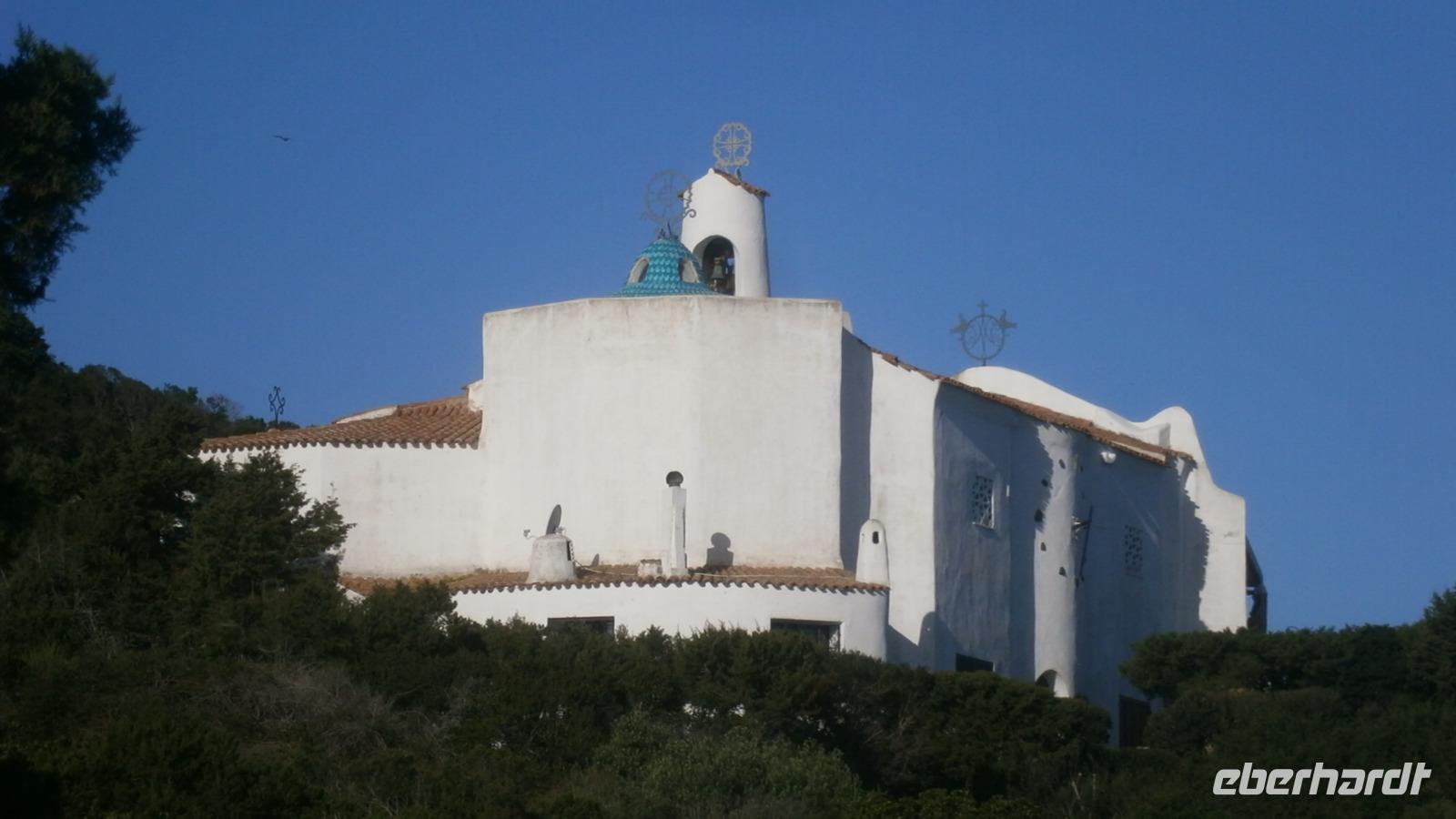 Im mondänen Badeort, Porto Cervo, unternehmen wir einen morgendlichen Spaziergang. Von der Piazetta zum Hafen und zur kleinen Kirche Stella Maris. Weiß getüncht erhebt sie sich über dem Neuen Hafen, für viele ist die Kirche das Wahrzeichen. Gebaut wurde sie erst im Jahre 1968 im sogenannten neosardischen Stil. Im Inneren wirkt die Kirche sehr bescheiden; ein Kruzifix aus dem 16. Jahrhundert, eine Orgel aus dem 17. Jahrhundert und ein Madonnenportrait.