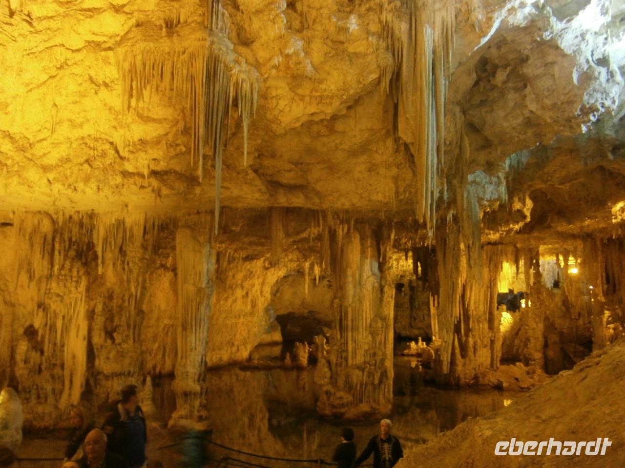 Die Grotta di Nettuno sind die berühmtesten auf Sardinien. Sie liegt etwa einen Meter über dem Meeresspiegel, am Fuß einer 110 m hohen Steilwand. Im 14. Jahrhundert wurden sie von Fischern entdeckt und sind seit 1950 für die Besucher geöffnet. In hellen Gelb- und Orangetönen hängen überall die Stalaktiten von der Decke und reichen oft bis zum Boden und wirken märchenhaft. Ein Wunder der Natur.