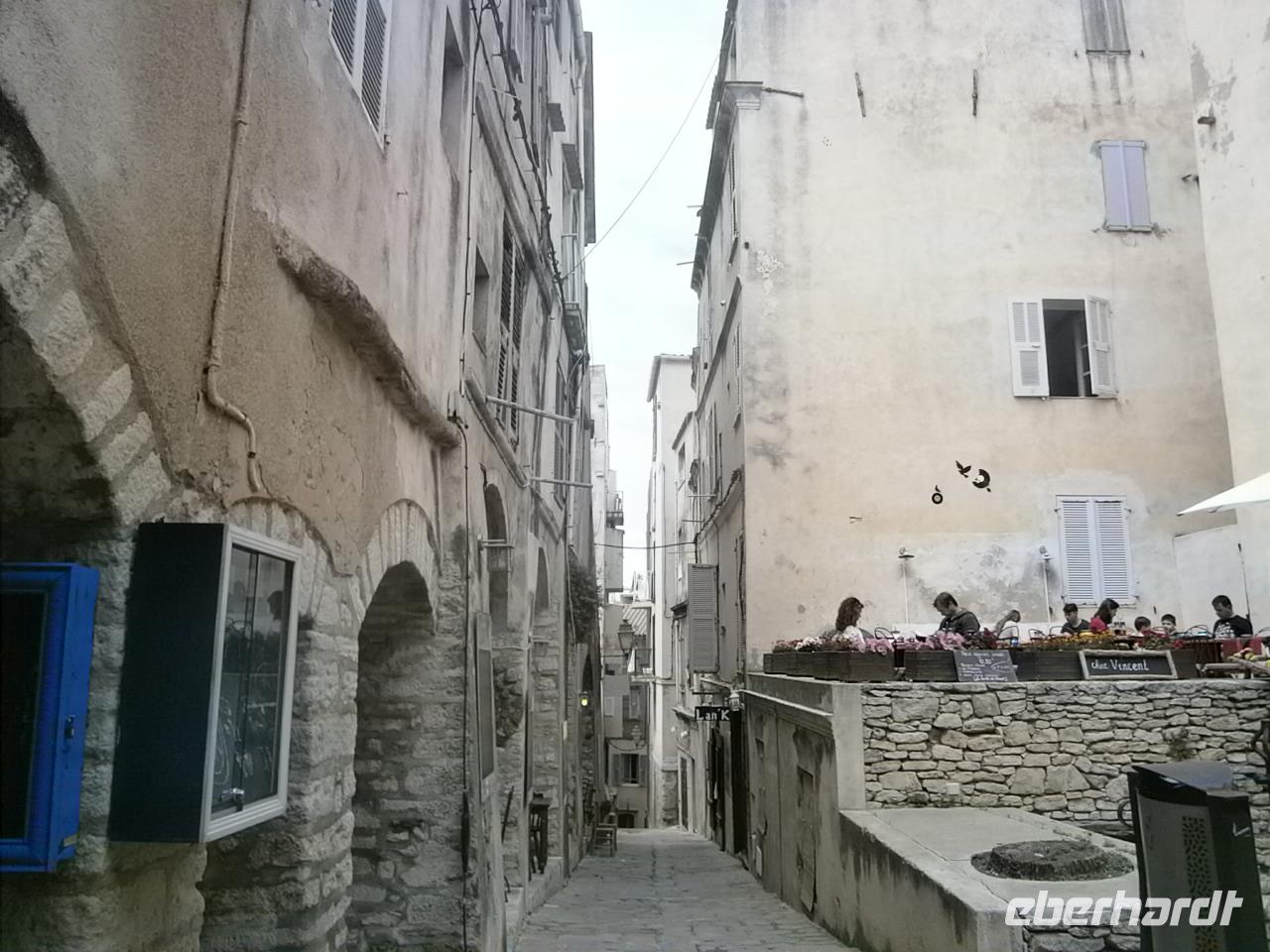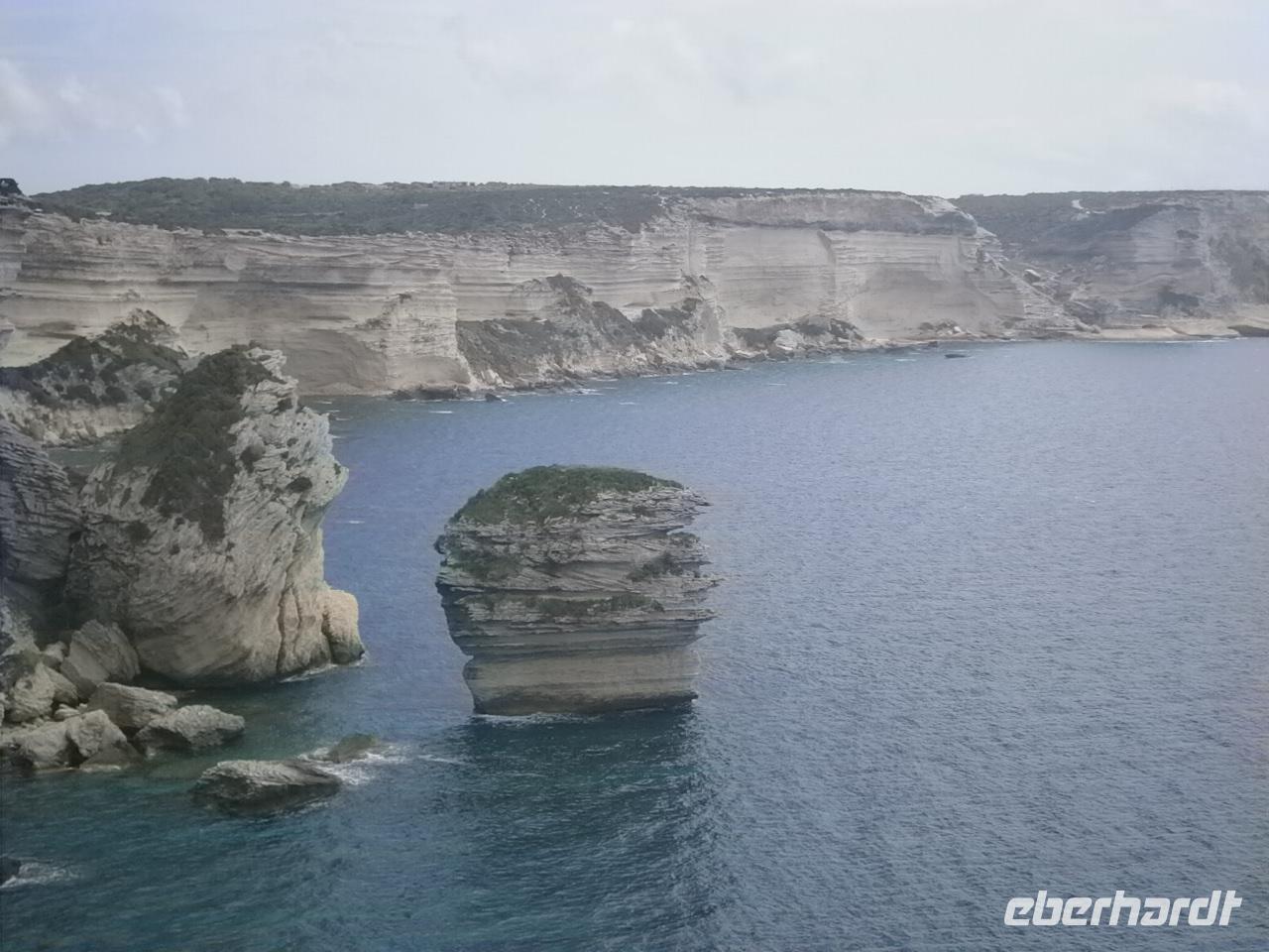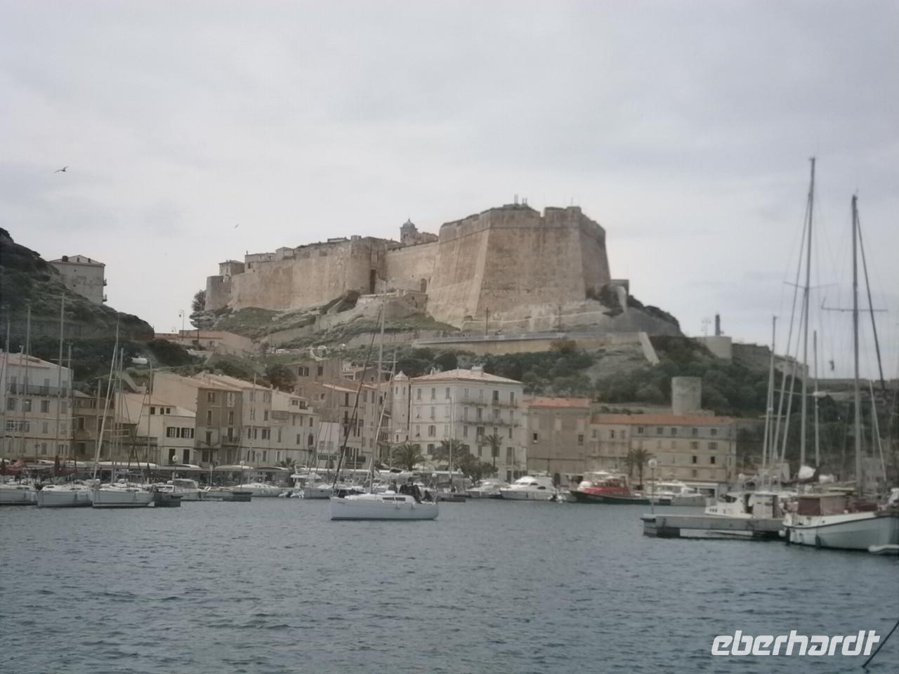Vom Schiff aus blicken wir zurück auf die Gallura - so bezeichnet man den Küstenabschnitt im Nordosten der Insel von Sardinien. Eine bizarre Felsenküste mit karger Küstenlandschaft und den dazu gehörenden Inseln. Unsere Fähre bringt uns auf die Insel Korsika. Bonifacio, eine der Hauptsehenswürdigkeiten von Korsika, empfängt uns im Sonnenschein. Vom Schiff aus können wir die Altstadt sehen, welche hoch über dem Meer thront auf einem Plateau aus Kalkstein. Der Hafen der Stadt liegt idyllisch in einem 1,5 Kilometer langem Fjord. Das neue Bonifacio ist zwei geteilt. Zum einen die mittelalterliche Altstadt auf dem Plateau und zum anderen der Hafenbereich. Mit der „Petit Train" fahren wir hoch in die Altstadt. Kleine enge mit Kopfsteinen gepflasterte Straßen und Gassen durchziehen die Altstadt.