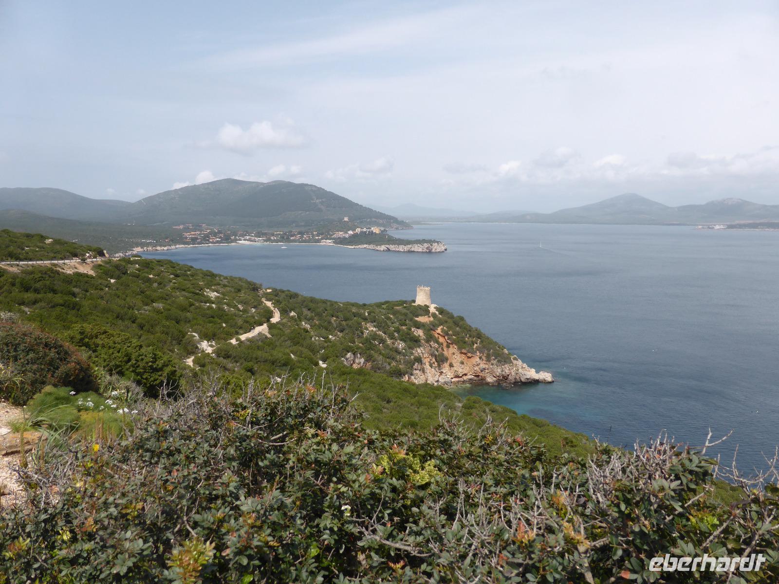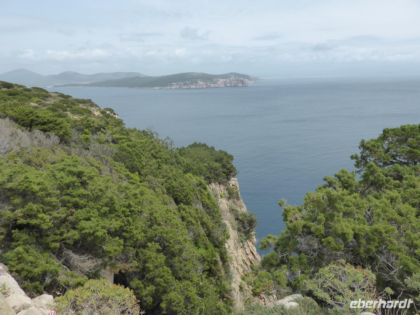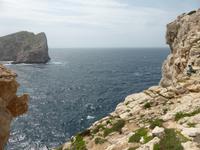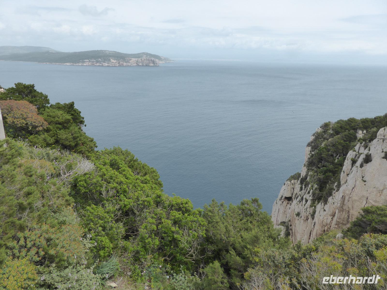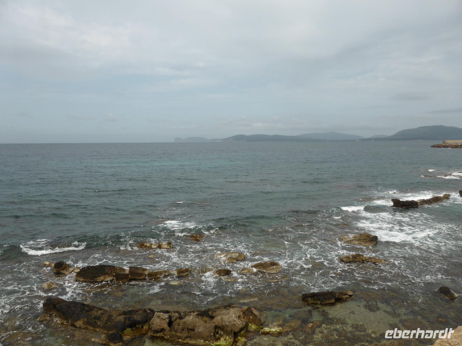Leider war das Meer zu aufgewühlt, sodass wir nicht mit dem Schiff zur Neptunsgrotte fahren konnten. Uwe erklärte sich bereit mit dem Bus zum Capo Caccia zu fahren, sodass wir eine ganz andere Sicht auf das „Jagdkap" genießen konnten. Wir genossen den Blick auf die gesamte Bucht von Alghero sowie die Insel Foradada.