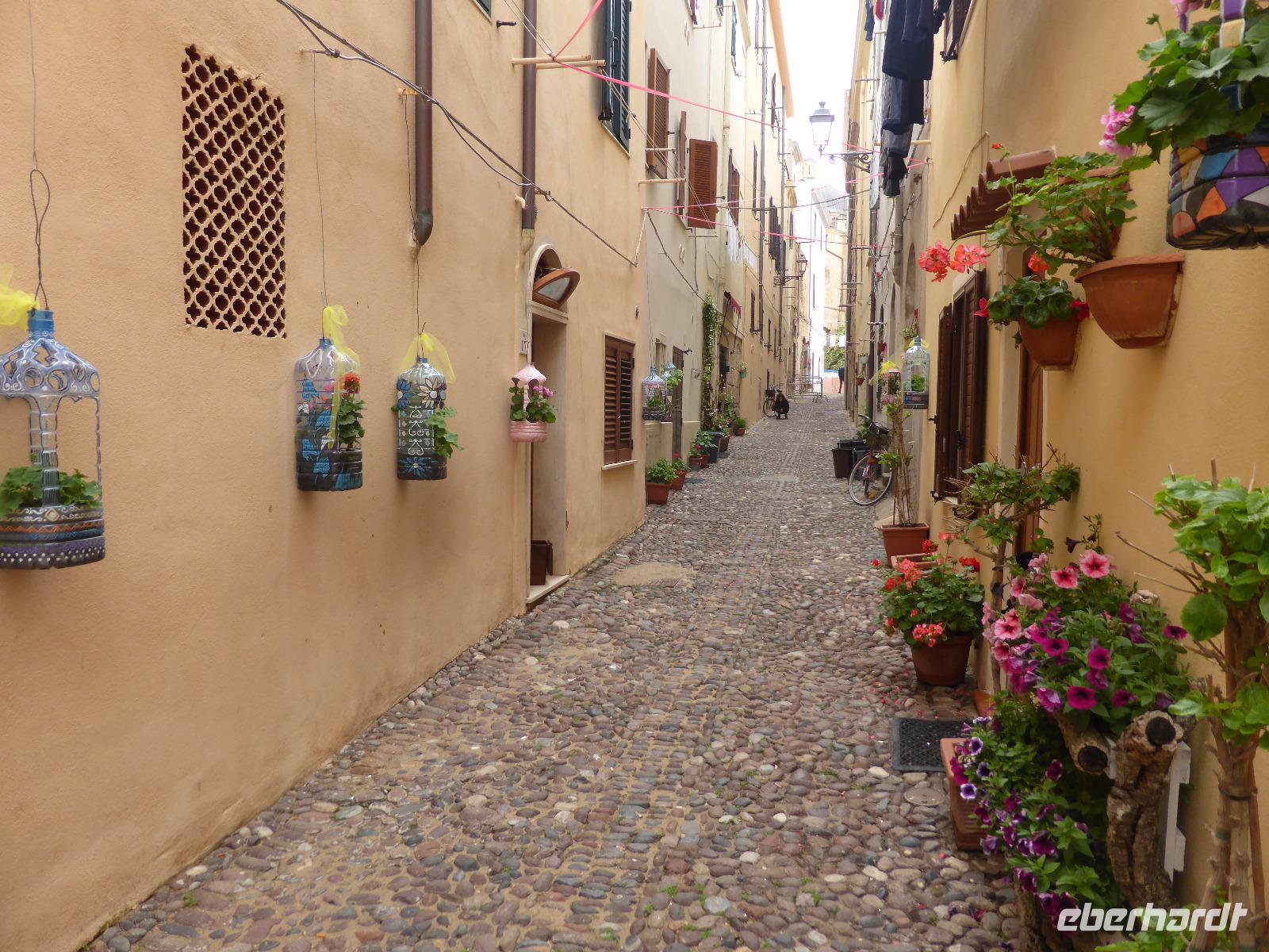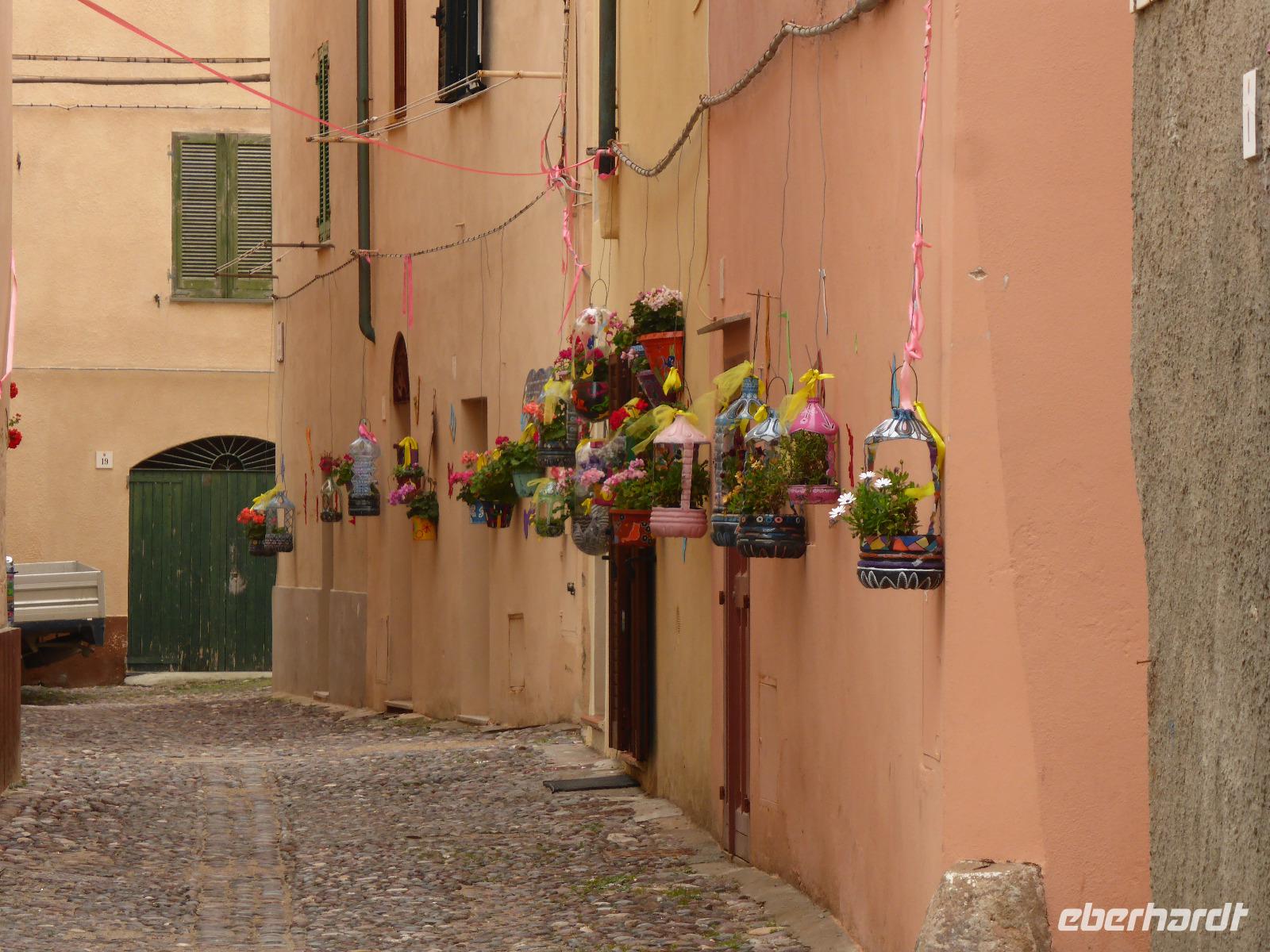 Bosa am Temo ist die einzige unmittelbar an einem Wasserlauf erbaute Stadt. Dank seines malerischen historischen Zentrums, der Lage am Temo sowie der Burg Malaspina gilt Bosa als die schönste Stadt Sardiniens. Entlang des Temo Ufers, welches einst palmengesäumt war, dem Corso Vittorio Emanuele und die engen Gassen der Altstadt bummelten wir durch die Stadt. Am Fuße der Burg Serravalle angelangt, genossen wir einen schönen Blick auf die Dächer von Bosa.