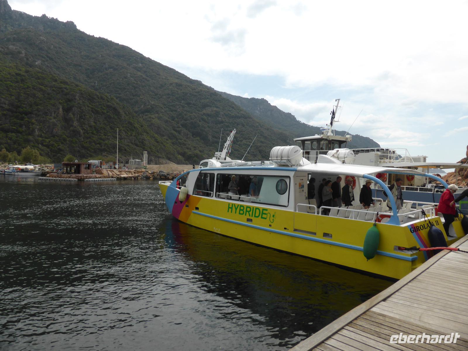 Zu der wohl schönsten Landschaft Korsikas führte uns unser heutiger Ausflug - zur Calanche. Am Golf von Sagone entlang und vorbei an der griechischen Stadt Cargese erreichen wir die Calanche, eines der berühmtesten Naturphänomene der Insel. In Piana legten wir einen kleinen Stopp ein. Dieses Dorf gehört zu den schönsten Dörfern Frankreich und zum UNESCO - Weltnaturerbe. Der bizarre gelbliche bis rote Felsengarten hoch über dem Meer ließ uns ins Schwärmen geraten. Die Tafoni Verwitterung wurde hier erforscht. Diese durch Wasser- und Temperatureinwirkungen entstandenen Felsformationen können an vielen Stellen Korsikas beobachtet werden, aber selten so großflächig und vor dem farblichen Kontrast des tiefblauen Meeres wie in der Calanche. Wir ließen unserer Phantasie freien Lauf und entdeckten u.a. ein Herz, einen Schildkröte und einen Hund. Unsere Mittagspause legten wir in Porto ein. Nach der Freizeit genossen wir alle die faszinierende Bergwelt vom Schiff aus.