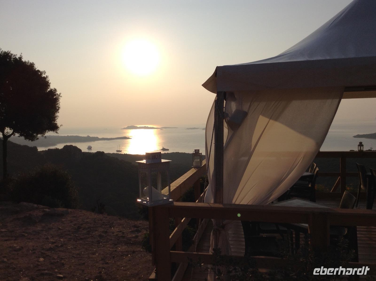 Die Überfahrt war ruhig, aber die Nacht sehr kurz. Schon am sehr frühen Morgen hieß es wieder aufstehen und Frühstücken an Bord. Als wir in Golfo Aranci ankamen, war es noch düster. Wir ließen uns Zeit an diesem Morgen, schließlich wollten wir zuerst zur Costa Smeralda, der smaragdgrünen wunderschönen Küste im Nordosten Sardiniens. Um sie in voller Schönheit genießen zu können, warteten wir auf den Sonnenaufgang und es entstanden erste tolle Fotos.