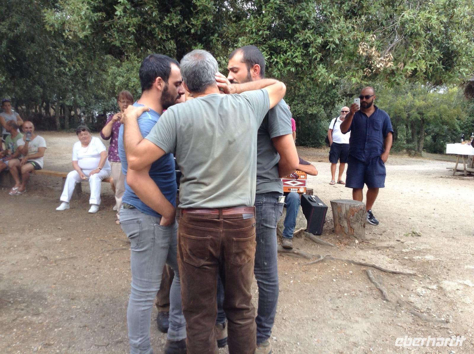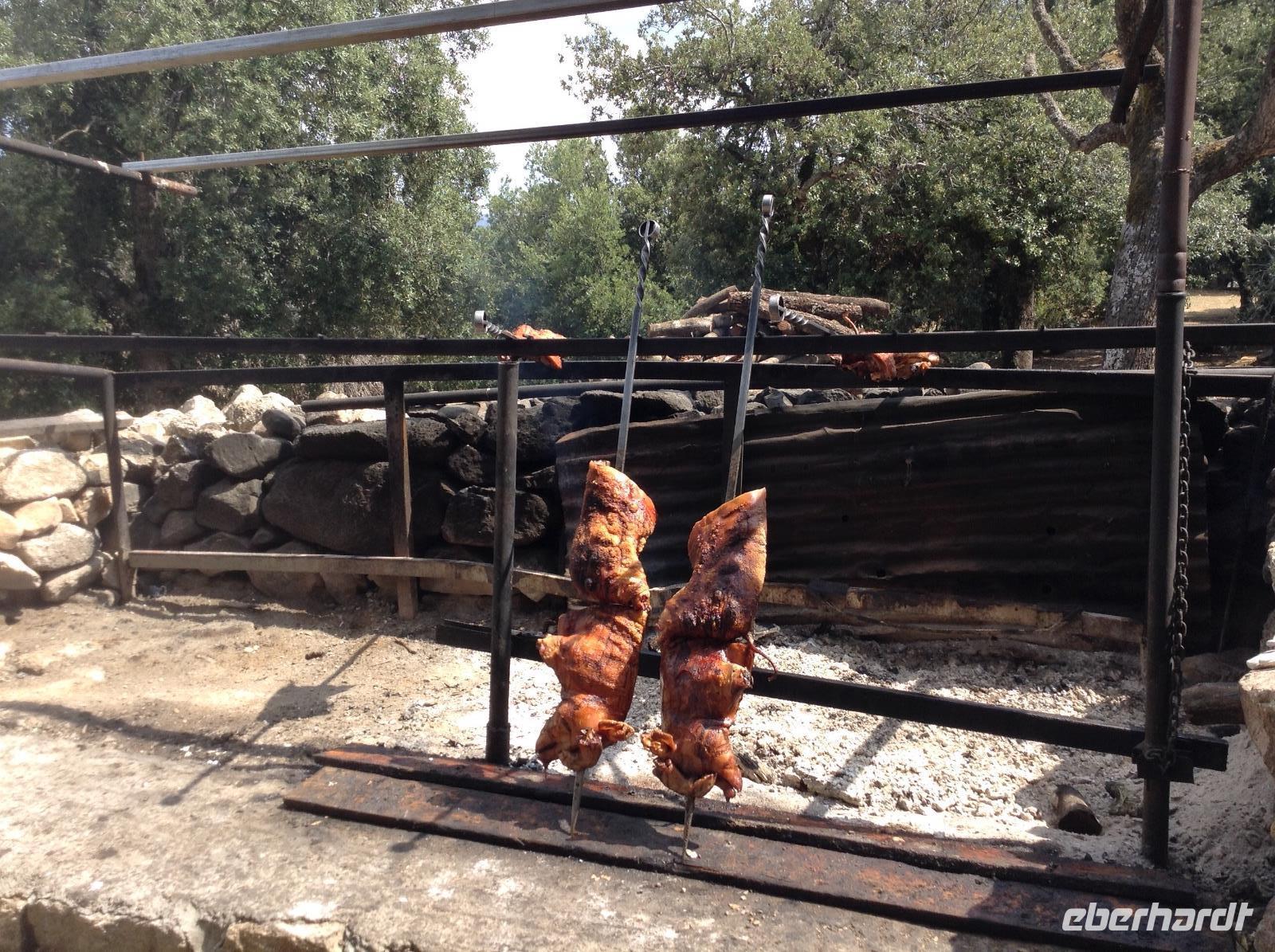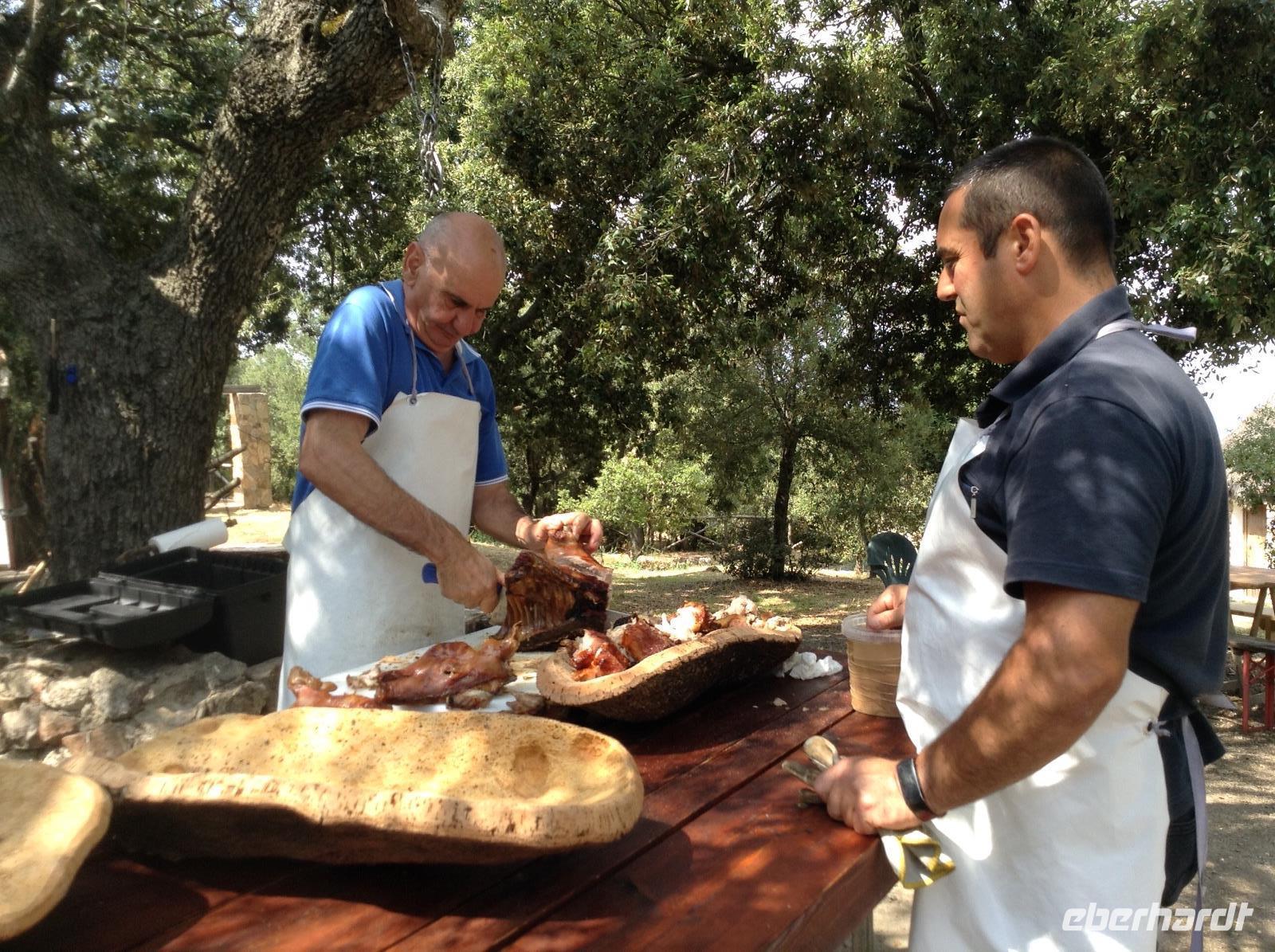 Weiter ging es zum Jet-Set-Ort Porto Cervo und gemeinsam machten wir einen schönen Morgenspaziergang durch den noch ganz ruhigen Ort in der Morgensonne. Später am Vormittag fuhren wir dann in südlicher Richtung an Olbia vorbei bis in Höhe von Nuoro. Von dort aus ging es in die Barbacchia, hinauf in die Berwelt der Sarden bei Orgosolo. Dort waren wir zu einem sehr üppigen, typisch sardischen Mittagessen der Hirten eingeladen. Wir saßen im Steineichenwald auf rustikalen Holzbänken und wurden verwöhnt mit sardischen Vorspeisen, Lamm mit Kartoffeln, Spanferkel vom offen Grill, Melone, Plätzchen..., zu trinken gab es den guten Cannanaou, einen leckeren Rotwein, Wasser und einen Grappa. Den krönenden Abschluss des Festmals bildete dann der Gesang der Hirten, ein 4 stimmiger Gesang ohne Instrumente, interessant und neu für Viele. Am Nachmittag ging es mit unserem Bus noch bis nach Quartu St. Elena, vor die Tore der Inselhauptstadt Cagliari. Dort erreichten wir unser nächstes Hotel und wurden herzlich begrüßt und toll bewirtet.