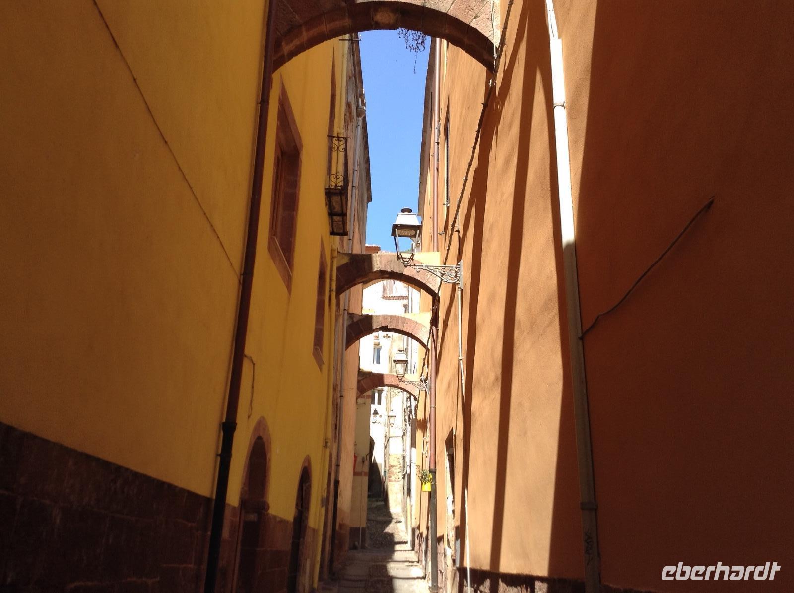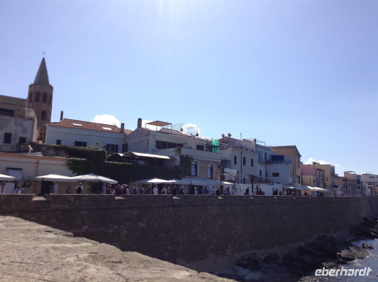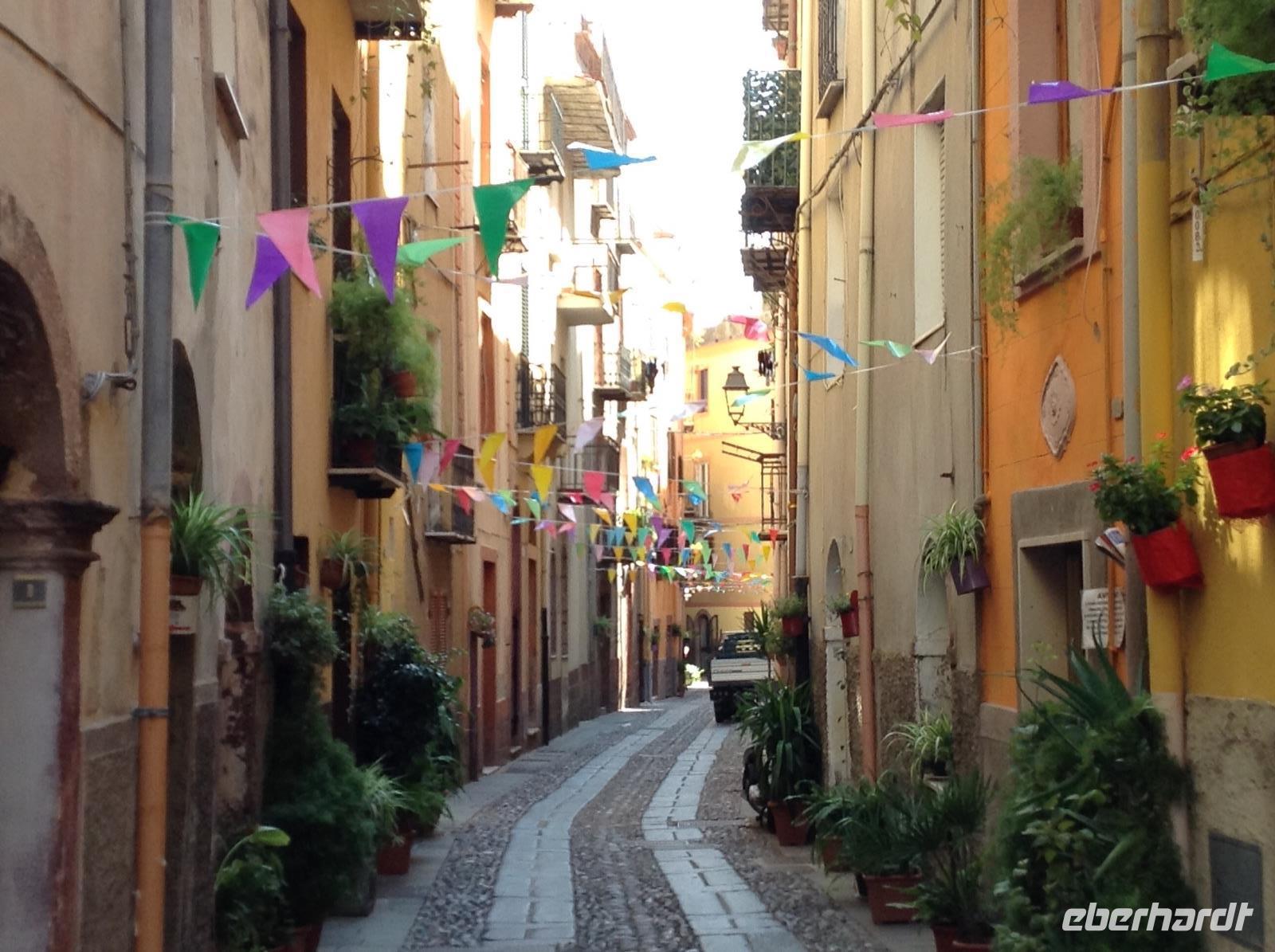 Mit unseren Koffern ging es früh wieder weiter. Wir wollten in nordwestlicher Richtung und waren zunächst mit dem Thema der Nuraghenkultur auf Sardinien beschäftigt. Mit Santu Antine erreichten wir gegen Mittag eine der best erhaltendsten Nuraghen, eine alte Königsburg. Wir waren beeindruckt von der Größe und der Bauweise dieser sehr alten Anlage. Unser weiterer Weg führte uns dann über das sardische Hinterland nach Bosa, der Stadt mit den pastellfarbenen Häusern am Temo Fluss gelegen. Von der Fußgängerbrücke aus hatten wir einen schönen Blick auf die alten Gerberhäuser, das Castello Malaspina und die Altstadt. Zusammen bummelten wir hinüber zur Altstadt. Anschließend hatte jeder Zeit für eigene Erkundungen, Capucchino oder Eisessen. Am Nachmittag fuhren wir die wunderschöne Küstenstraße entlang von Bosa nach Alghero. Am frühen Abend erreichten wir unser Hotel in Alghero.