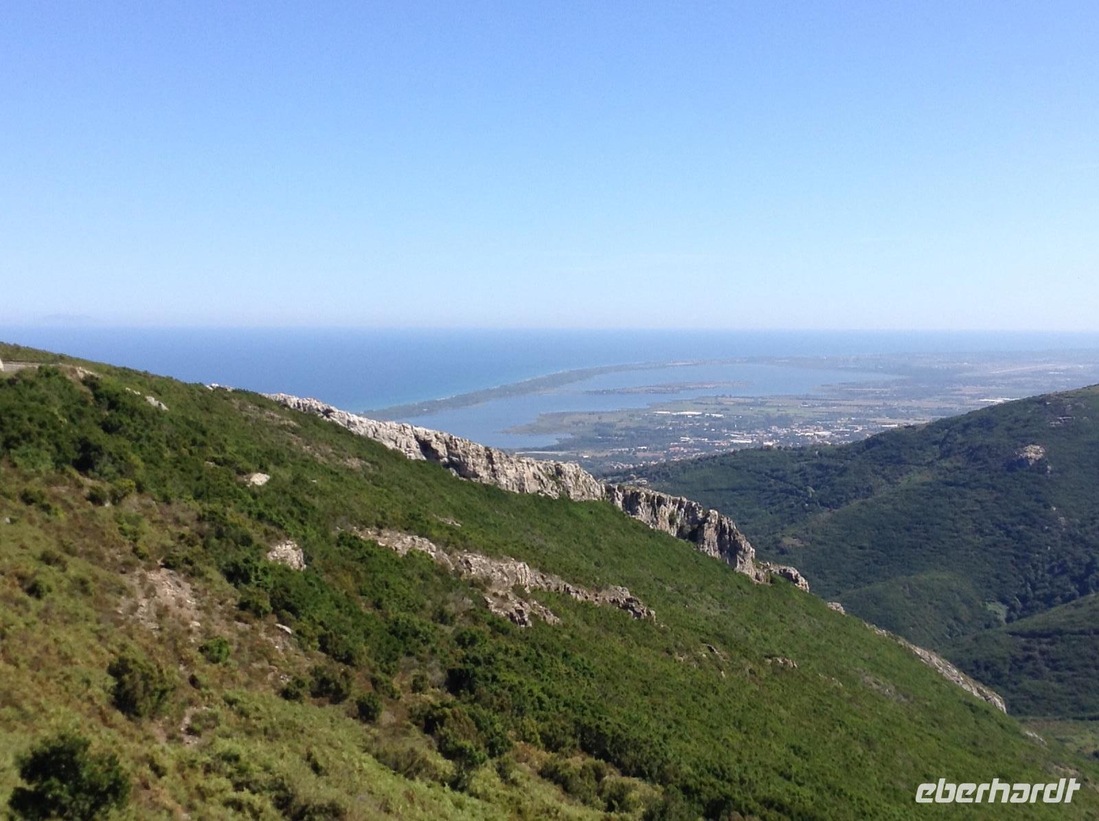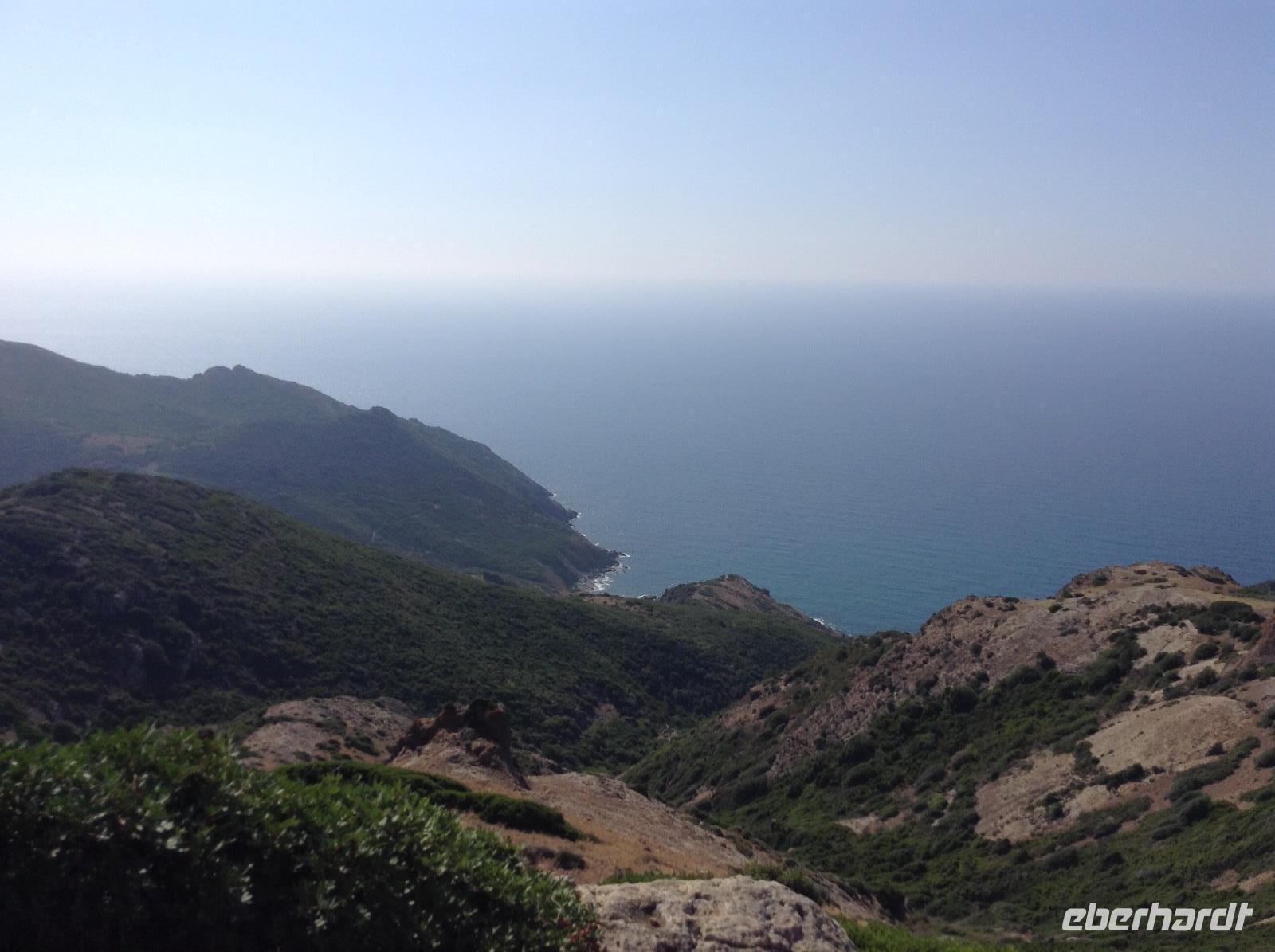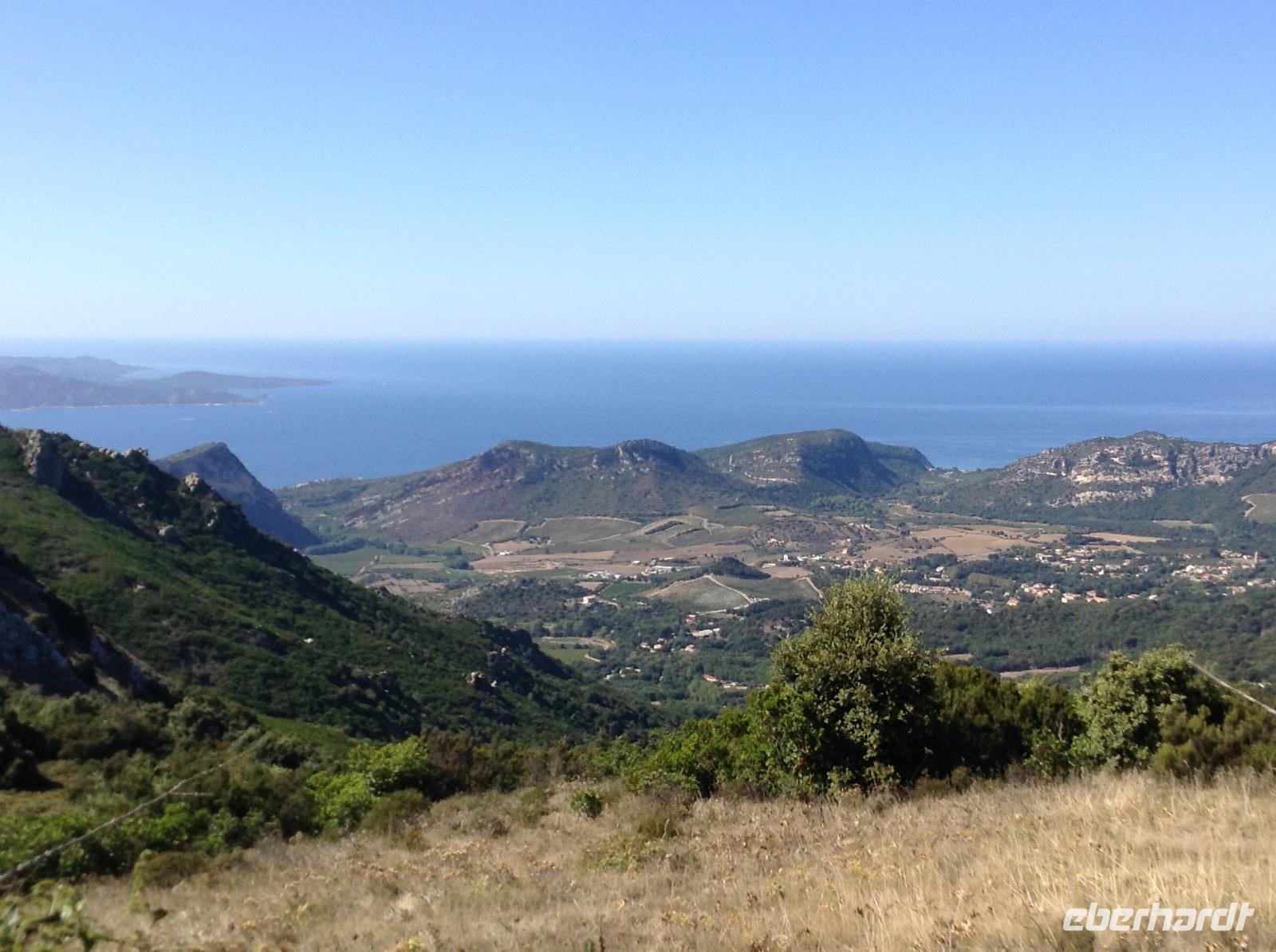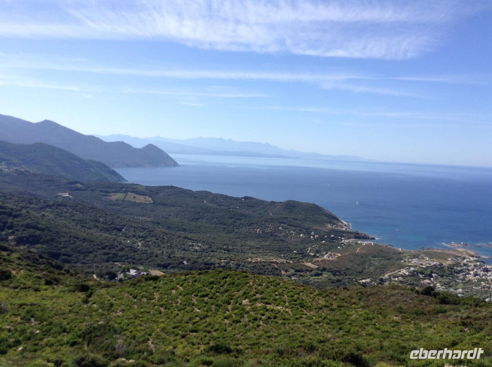 Mit unsereM Gepäck verließen wir am Morgen das Hotel. Cap Corse war unser Ziel und wir fuhren zunächst in Richtung Bastia. Am Hafen vorbei ging es in nördlicher Richtung. Gleich hinter Bastia beginnt eine tolle Straße, die den ganzen korsischen Finger umrundet. Auf unserem Weg stoppten wir zunächst in Erbalunga, einem bezaubernden alten Fischerort mit Genueserturm. Später hielten wir in Macchinaccio, bei den alten Mühlen, an wunderschönen Buchten und Aussichten. Diese Fahrt war der krönende Abschluss unserer Korsikabesichtigung. Wir konnten uns garnicht sattsehen, so schön war das. Später überquerten wir durch die Weinberge den Pass oberhalb von Bastia. Ein letzter toller Fotostop mit Blick auf die Nordküste der Insel und auch auf die Lagune vor Bastia. Dann ging es hinunter in die Stadt. Die letzten Stunden auf der Insel hatte jeder zur eigenen Verfügung zum Bummel in der Altstadt, zum Shoppen oder Essen.