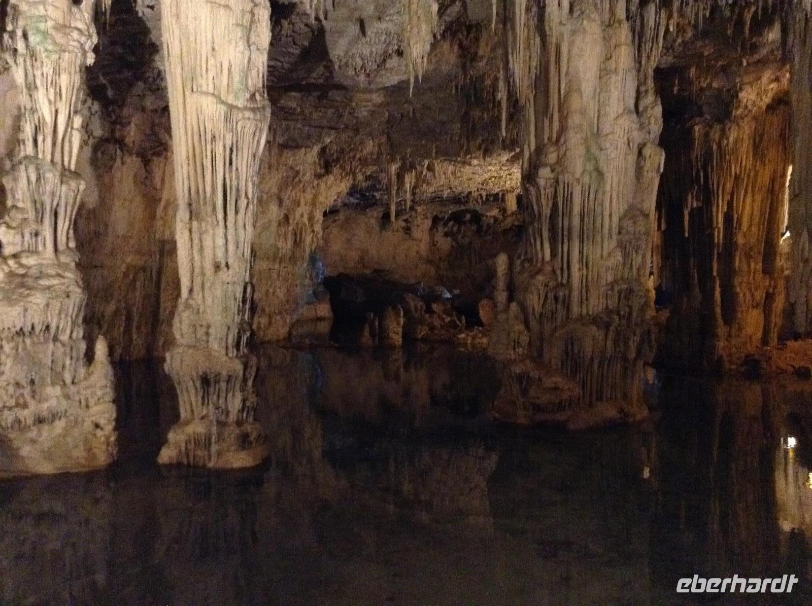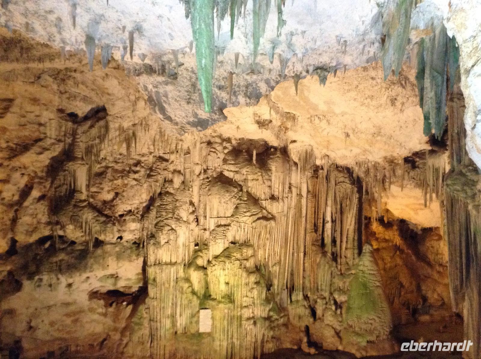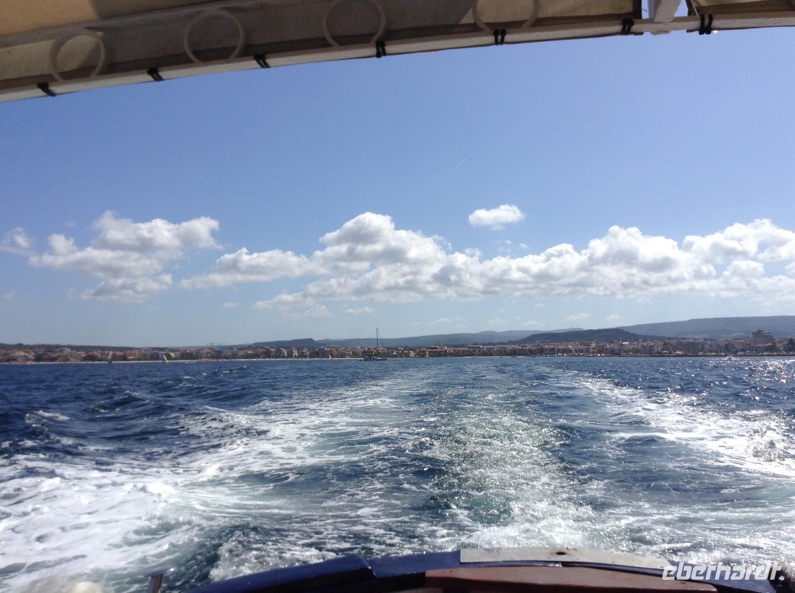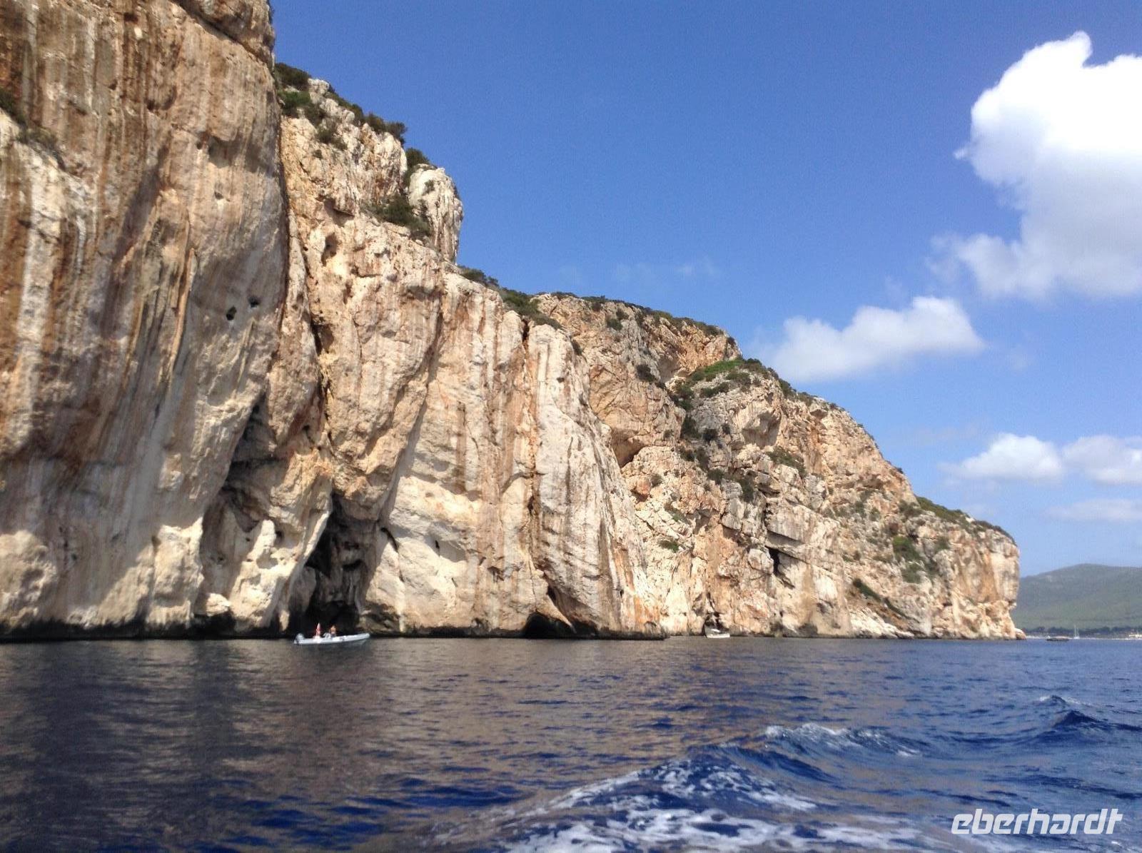Die örtliche Stadtführerin holte uns früh im Hotel ab und zu Fuß ging es an der Uferpromenade entlang bis zur Altstadt. Unterwegs hielten wir immer wieder, um uns die Küste und Umgebung anzuschauen. Am Bootshafen angekommen, hatten wir einen tollen Ausblick auf die Stadt mit ihren mächtigen Festungsmauern. Die Stadt geprägt von ihren katalanischen Wurzeln und Einflüssen, ist sehr besonders und attraktiv. Wir gingen hinein in die Altstadt und waren gefangen vom Charme und den Reizen dieser Altstadt. Überall hingen alte Vogelkäfige, bunter Blumenschmuck, dazu diese vielen hübschen Lädchen und Altstadtgassen, es war bezaubernd schön. Natürlich müssten wir auch einen Blick in die Kathedrale der Stadt werfen, später ging es auf den Mauern zur Meerseite weiter, vorbei an den alten Steinschleudern. Überall in der Stadt sahen wir uns die bezaubernden Bilder der über Hundertjährigen an. Genau zur Mittagszeit ging es dann zu einem Bootsausflug zur bekannten Neptunsgrotte. Die See wurde gegen Mittag welliger und wir waren froh, noch ein Boot gefunden zu haben, die den Ausflug nachmittags noch wagten. Vom Hafen Algheros ging es los, die Überfahrt war noch ruhig. Aber hinter Cappo Cachia war das Meer schon sehr viel mehr bewegt. Das Boot schaffte die Einfahrt in die Grotte und unsere Besichtigung der wunderschönen Tropfsteinhöhle konnte beginnen. Es war zauberhaft und sehr schön. Am frühen Nachmittag ging es zurück nach Alghero und anschließend gab es viel Zeit für eigene Erkundungen. Am Abend trafen wir uns zum Abendessen im Hotel.