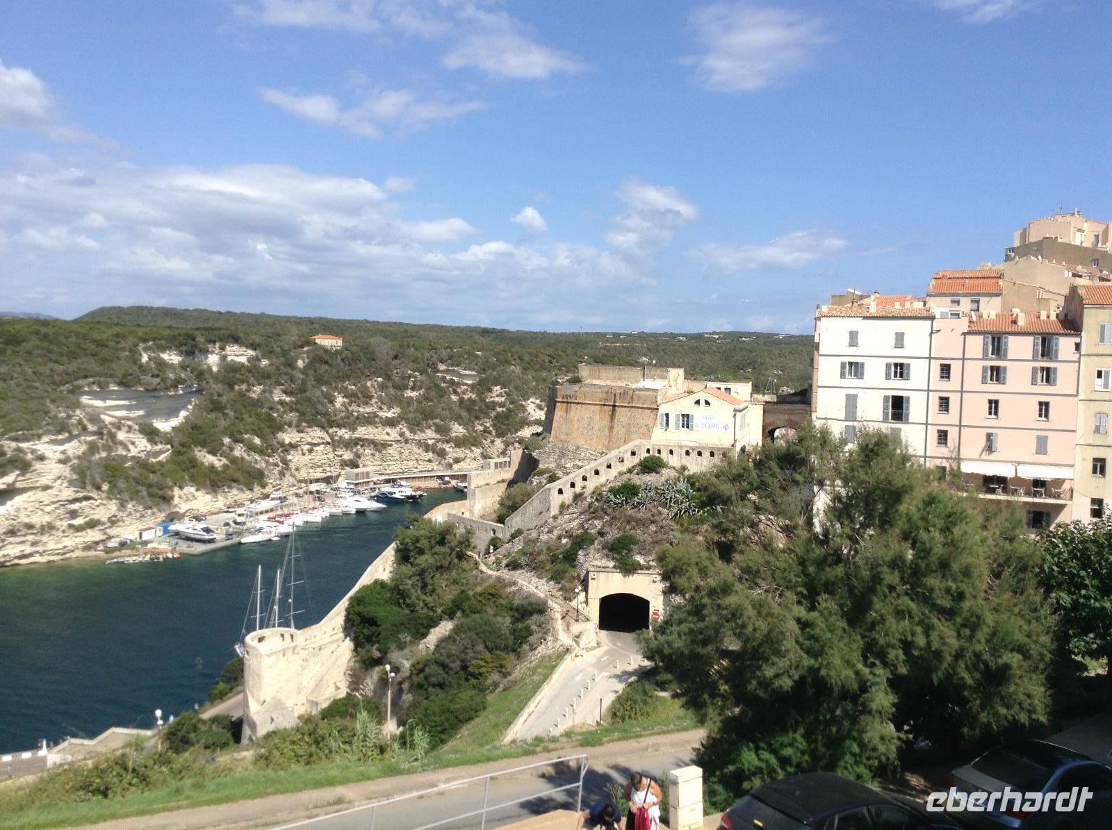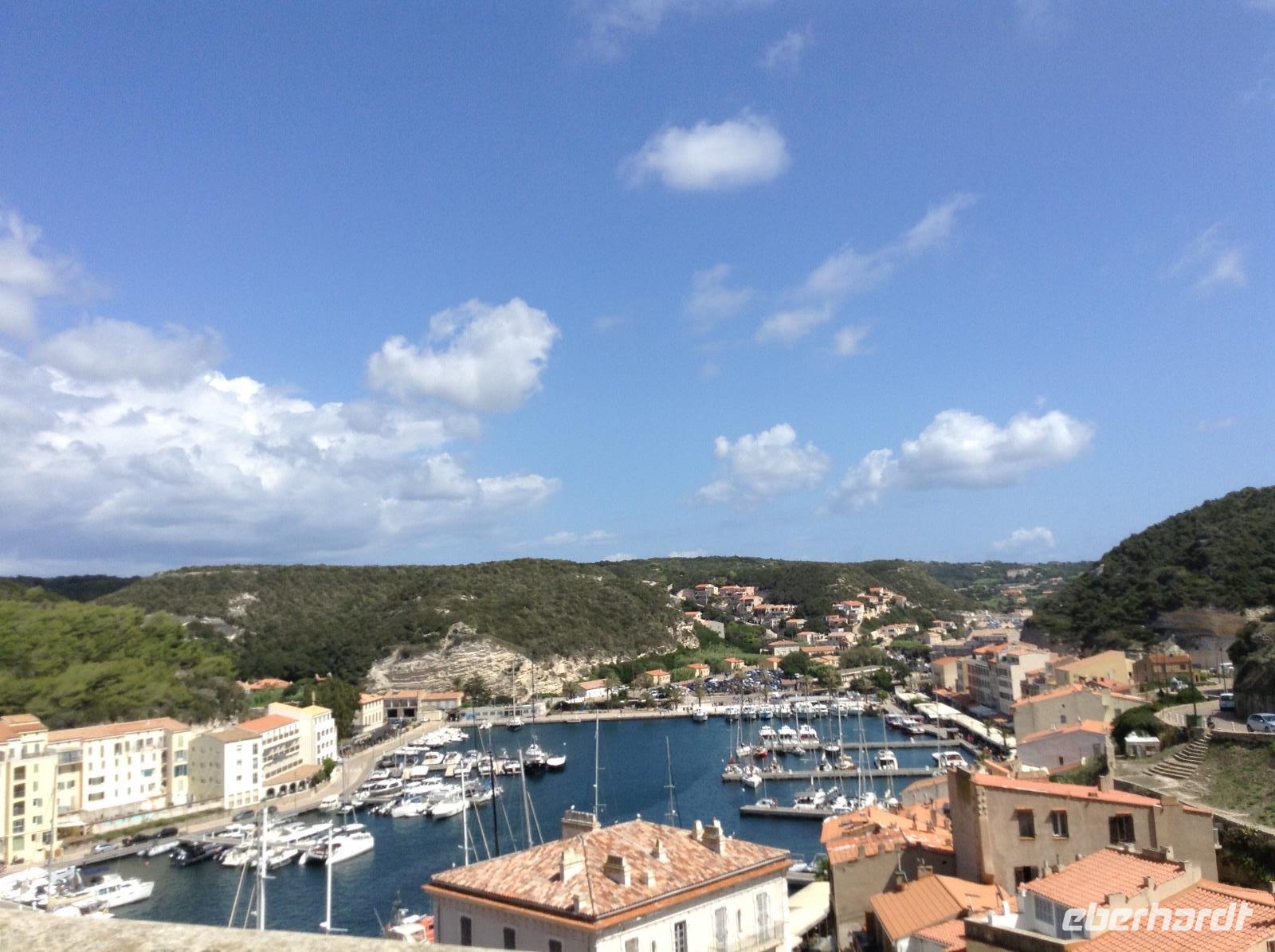 Anschließend hatten wir kurz hinter Castelsardo ein Date mit dem tierischen Sarden- dem Elefanten und es entstanden wieder tolle Fotos. Entlang der schönen Nordküste ging es dann bis Santa Teresia de Gallura, unserer Fährhafenstadt nach Korsika. Wir waren zeitig genug im Hafen uns sahen die Fähre kommen. Die See war recht bewegt an diesem Tag, das spürten wir dann auch auf unserer Übefahrt. Nach einer Stunde war die Straße von Bonifacio überquert und wir schipperten in den wunderschönen Hafen ein. Schon von weitem war die tolle Kreideküste und die hoch oben gelegene Altstadt zu sehen. Mit dem bestellten Bummelzug ging es hinauf in die Altstadt und wir sahen uns in den Gassen um. Später holte uns der Bummelzug wieder ab, es ging hinab zum Hafen und unserem Bus. Anschließend hatten wir noch 3 Stunden Fahrt vor uns, entlang der Südlichen Westküste und dem Hinterland. An Sartene und Olmeto vorbei ging es nach Ajaccio, wo wir abends unser Hotel erreichten. Zum Abendessen gab es leckere französische Küche, wirklich gut gemacht.