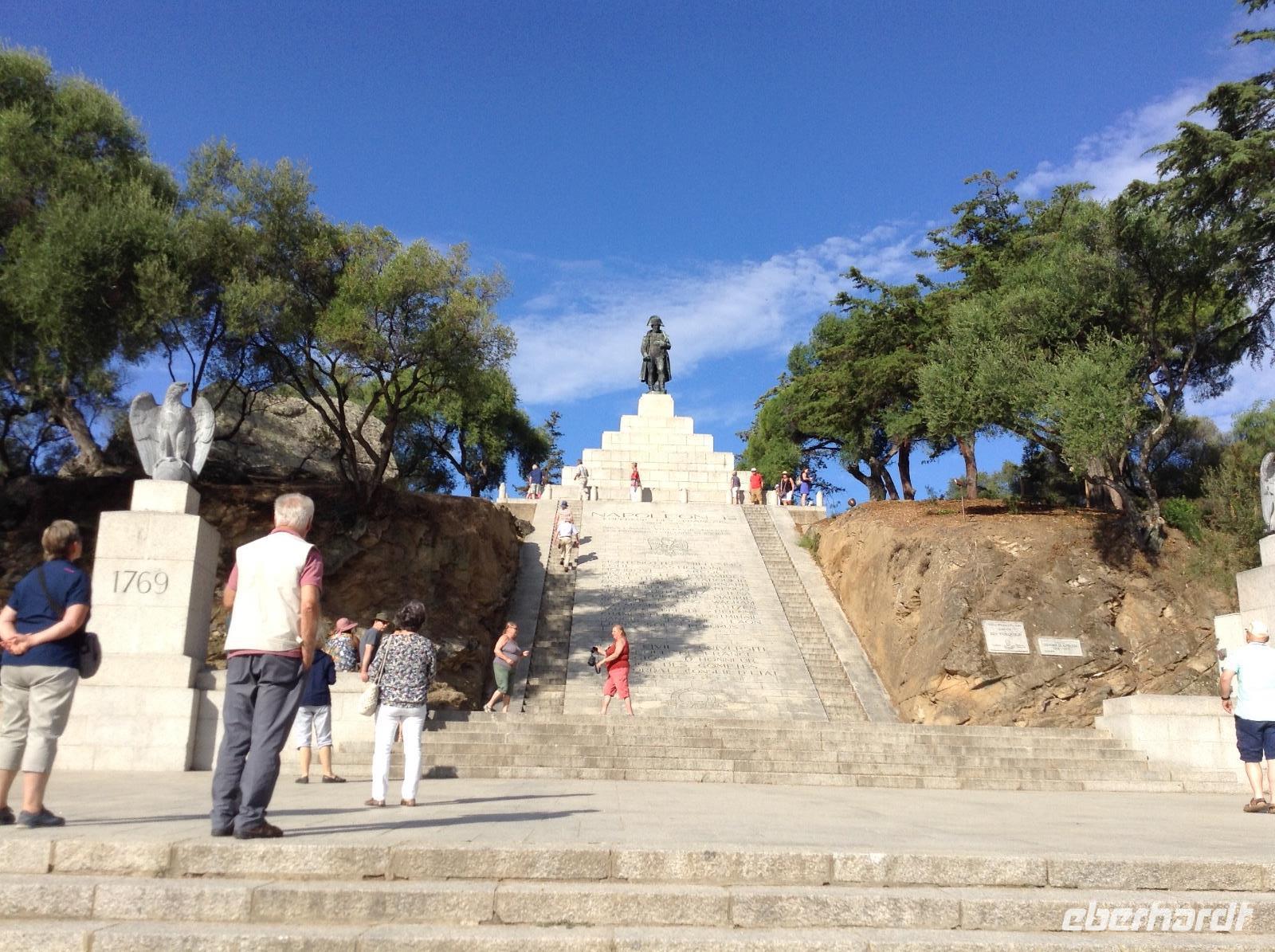 Nach gemütlichem Frühstück ging es zur Besichtigung in die Inselhauptstadt. Wir wurden von der örtlichen Reiseleiterin erwartet und gleich ging es zu den wichtigsten Punkten der Stadt und der Umgebung. Zuerst fuhren wir hinauf zum Austerlitzplatz, begrüßten Napoleon Bonaparte, später ging es ein Stück der Küste entlang in Richtung Blutinseln.