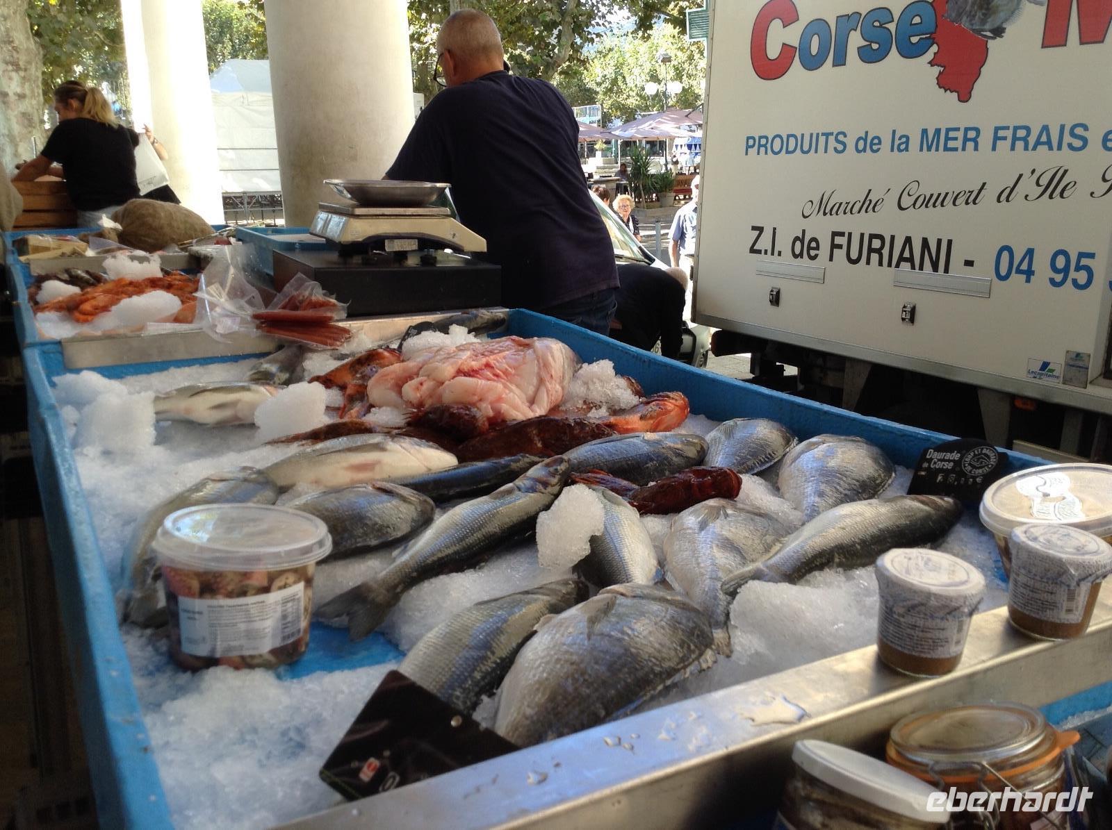 Wieder begrüßte uns die Morgensonne und wir starteten zum Ausflug an die Nordküste, die Balagne. Bei der Fahrt durch das Golotal stoppten wir an einer der schönen Eisenbahnviadukte. Leider kam kein Zug vorbei. Weiter ging es an Ponte Leccia vorbei zur Nordküste, die auch die Blumenküste genannt wird. Zuerst fuhren wir nach Isula Rossa, später nach Calvi. In beiden schönen Orten war Zeit für eigene Erkundungen. Wir bummelten durch die Gassen, besuchten den Frischemarkt mit einheimischen Produkten, konnten auch Wurst, Schinken und Käse probieren. Fangfrischer Fisch, Obst, Gemüse, Marmeladen und Honig wurden angeboten. In Calvi ging es zuerst hinauf in die Zitadelle. Von dort hatte man einen tollen Ausblick auf die Bucht und den Hafen. Wir waren uns einig, zwei sehr hübsche Orte mit tollem Flair und schönen Stränden.
