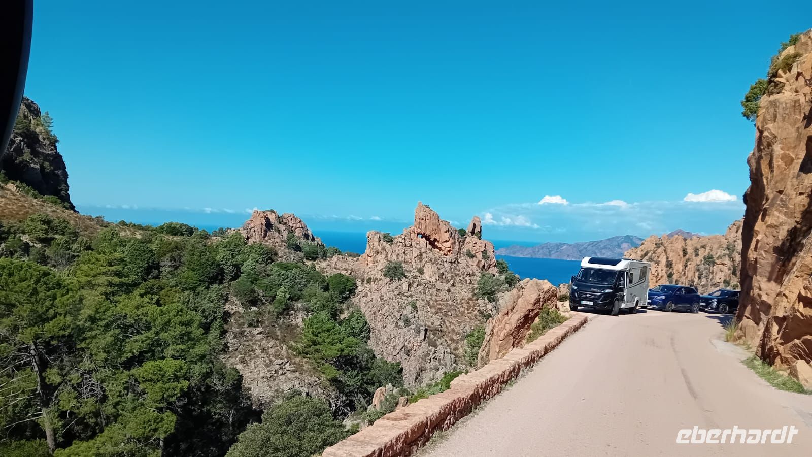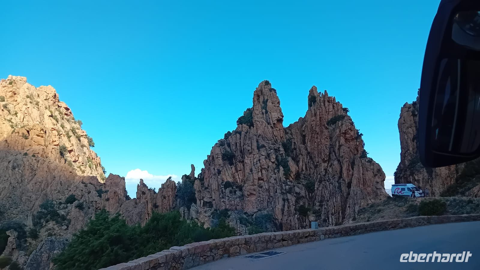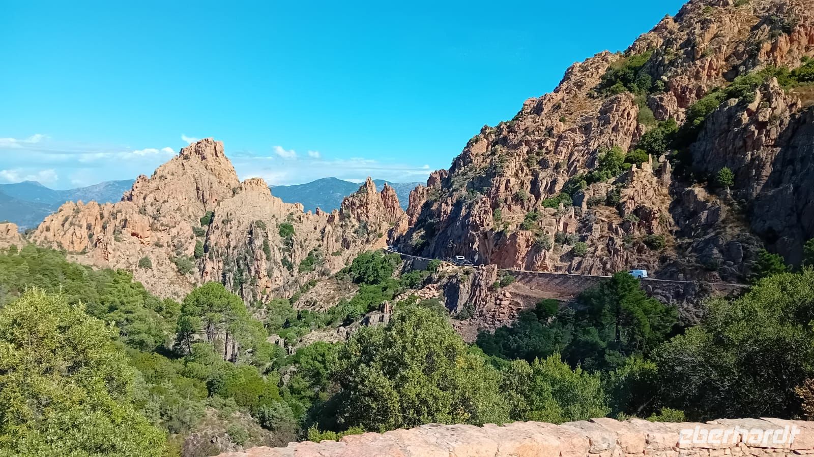Nach der Bootstour setzten wir unsere Fahrt fort und durchquerten die beeindruckende Spelunca-Schlucht. Die Straße schlängelte sich durch enge Passagen, vorbei an steilen Felswänden und üppiger Vegetation, die den Kontrast zur rauen Küste perfekt ergänzte. Höhepunkt der Fahrt war der Pass des Col de Vergio, mit 1477 Metern der höchste Gebirgspass Korsikas, von dem wir einen atemberaubenden Ausblick auf die umliegenden Berge und Täler genossen.