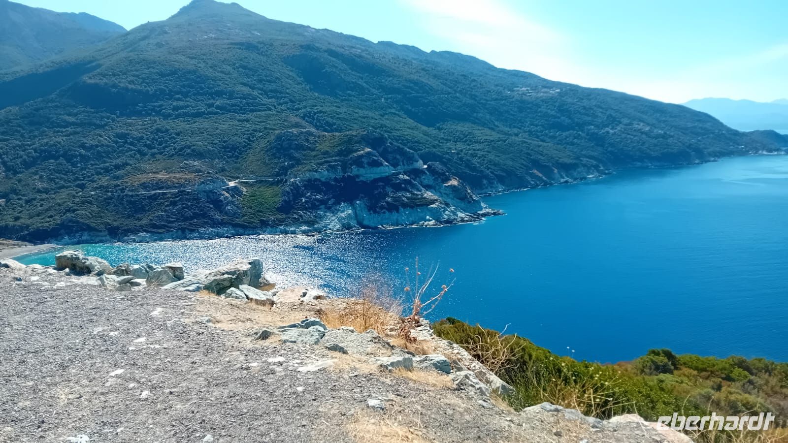 Anschließend setzten wir unsere Reise entlang des spektakulären Cap Corse fort, der markanten Halbinsel im Norden Korsikas. Die Küstenstraße schlängelte sich entlang steiler Klippen, vorbei an kleinen Fischerdörfern und einsamen Buchten. Die wilde Schönheit der Landschaft beeindruckte uns tief – hier verschmelzen Meer und Berge zu einem einzigartigen Panorama.