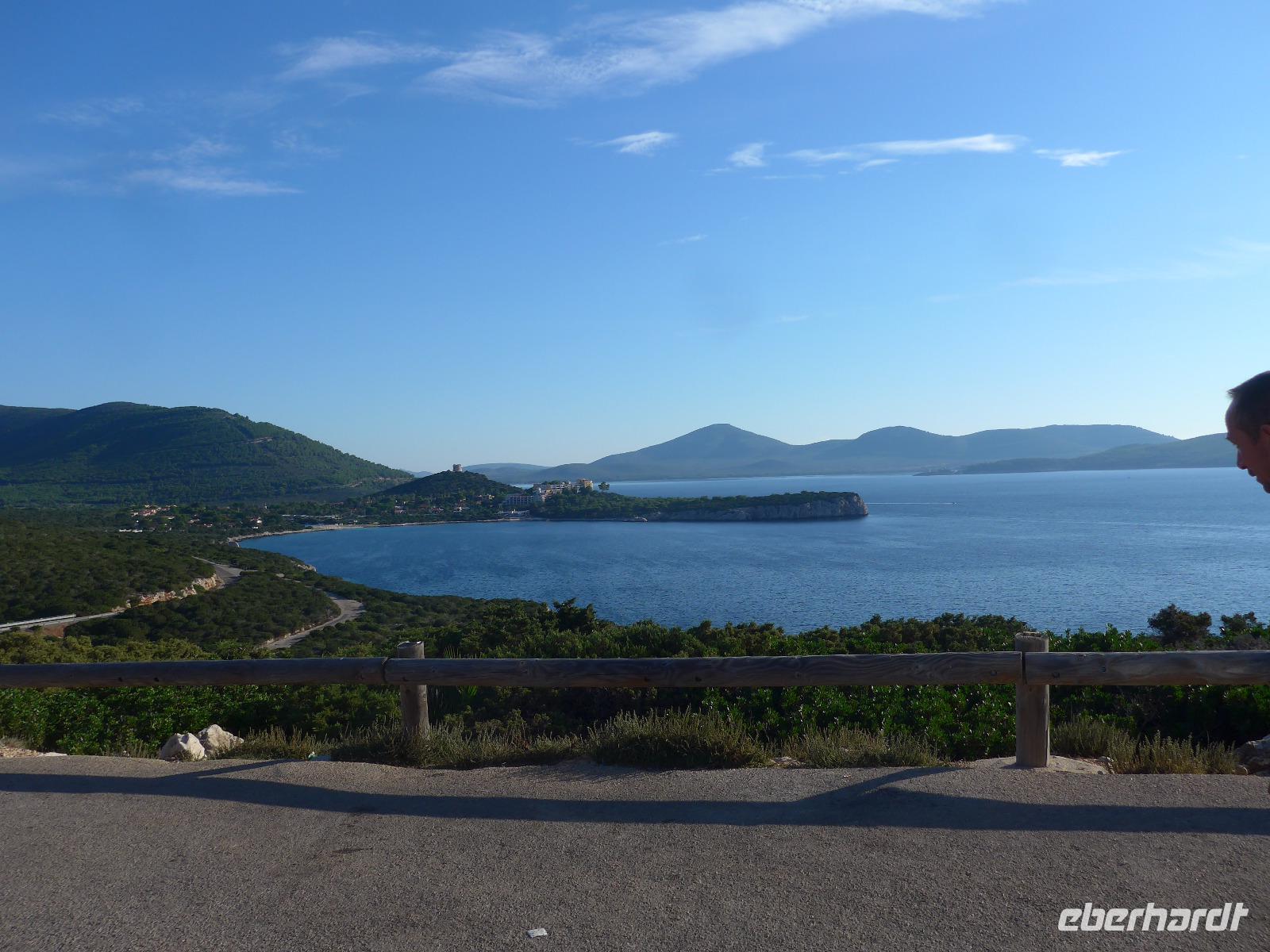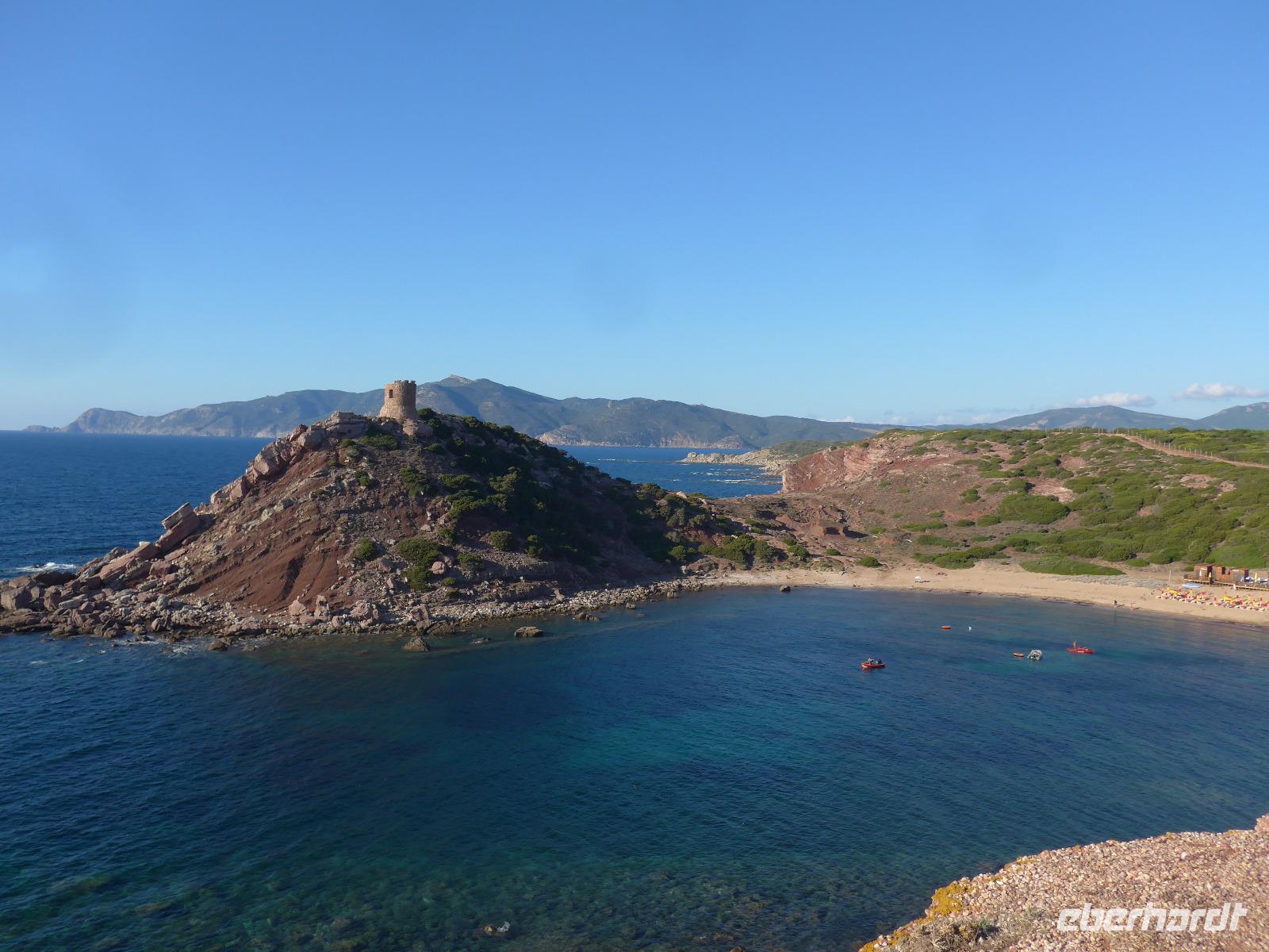 Auf unserer Fahrt gen Westen brachte uns Gigi zum Aussichtspunkt Cala Porticciolo und dort sahen wir zum ersten Mal die tolle Küste mit den zahlreichen Buchten und einem Verteidigungsturm.