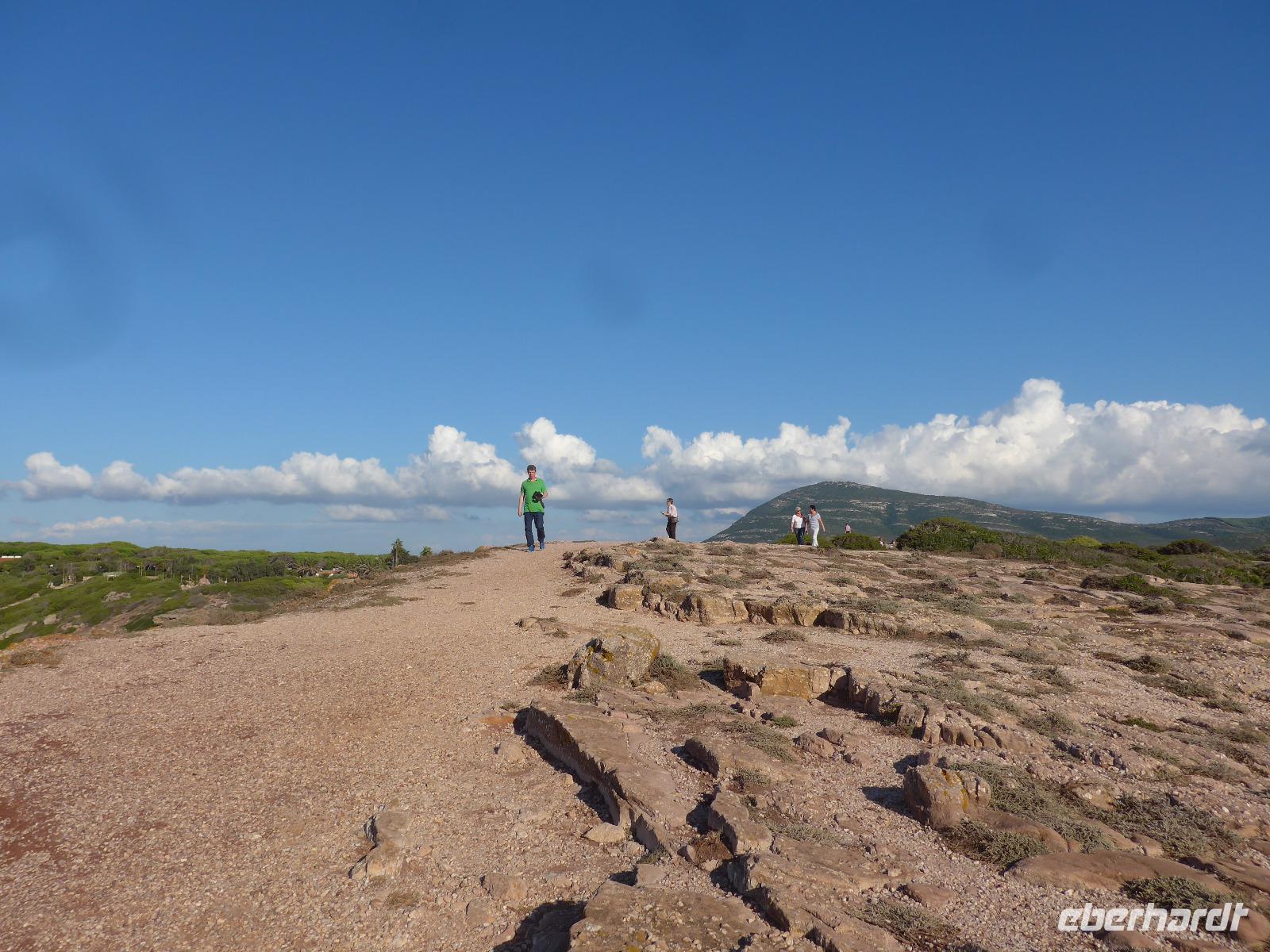 Heute nahmen wir unsere Koffer mit, denn es stand ein Hotel- und Ortswechsel an. Von Alghero im Westen ging es in den Raum Olbia im Osten. Unsere Route führte zunächst vorbei am Wildpark nach Porticciolo zu einem Fotostopp. Wir blickten hinüber in "unsere" Hotelbucht Porto Conte und hielten diese traumhafte Gegend auf einem Gruppenfoto fest. Danach führte unsere Route gen Norden nach Porto Torres. Die einst von den Römern gegründete Stadt wirkte heute eher geisterhaft. Das riesige Areal war heute zum großen Teil verlassen, die Raffinerien geschlossen und nur der Fähr- und Kreuzfahrthafen sind wieder in Betrieb. Porto Torres hat eine lange Küste mit schönen Badebuchten und daran schloß sich ein 10 km langer Sandstrand mit großen Sanddünen an. Dort legen alljährlich Meeresschildkröten ihre Eier ab.