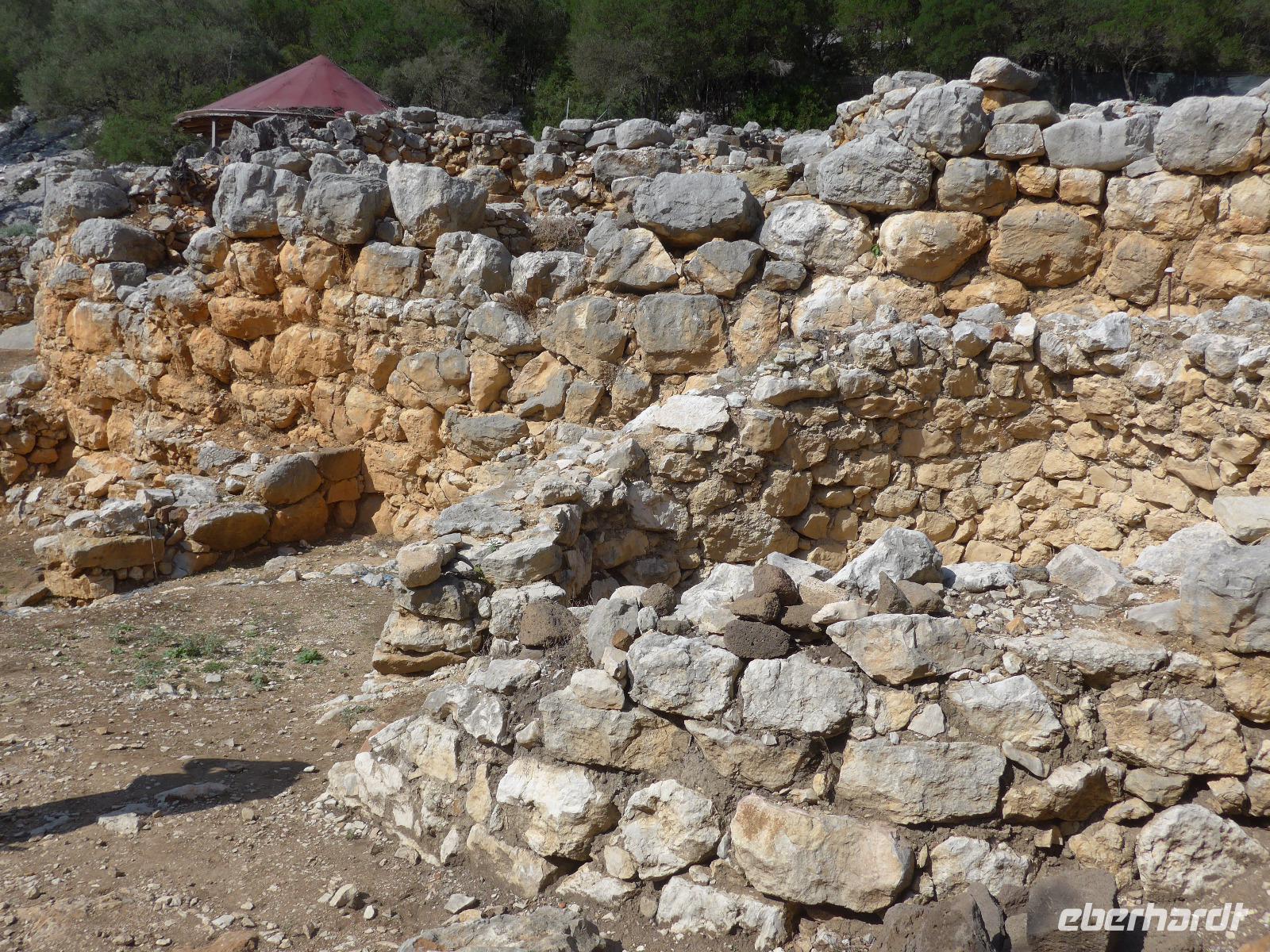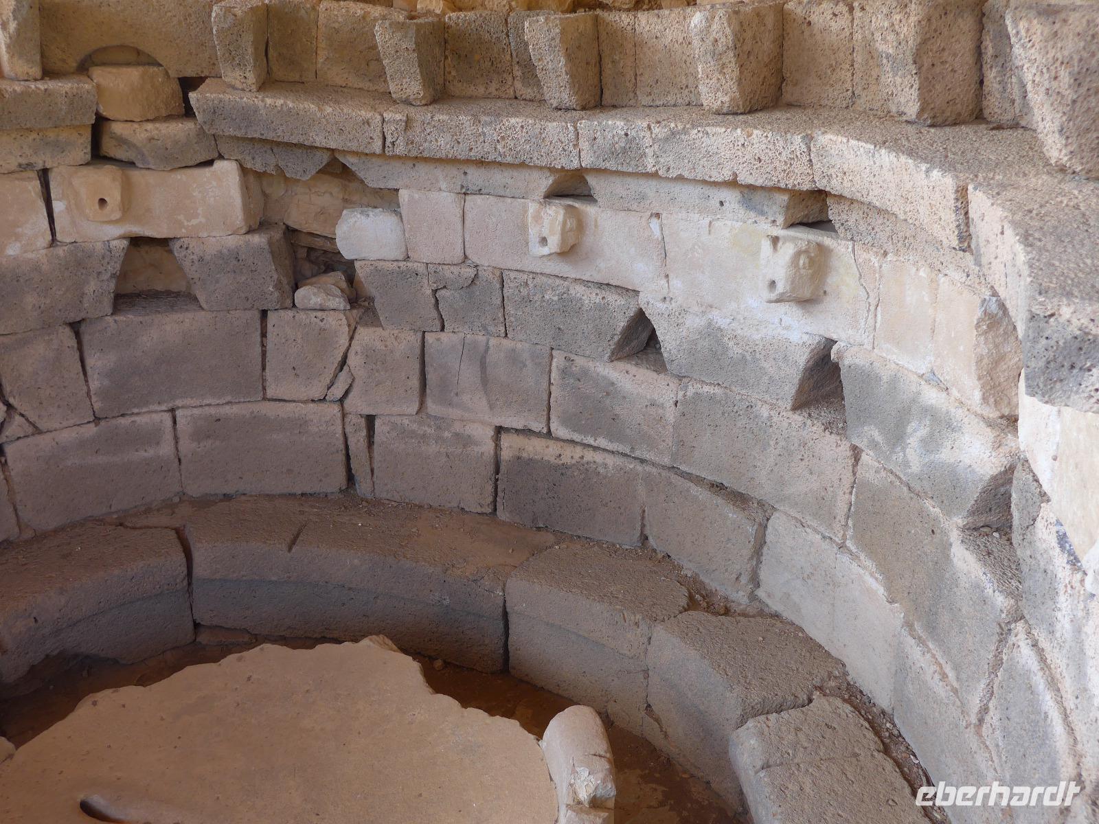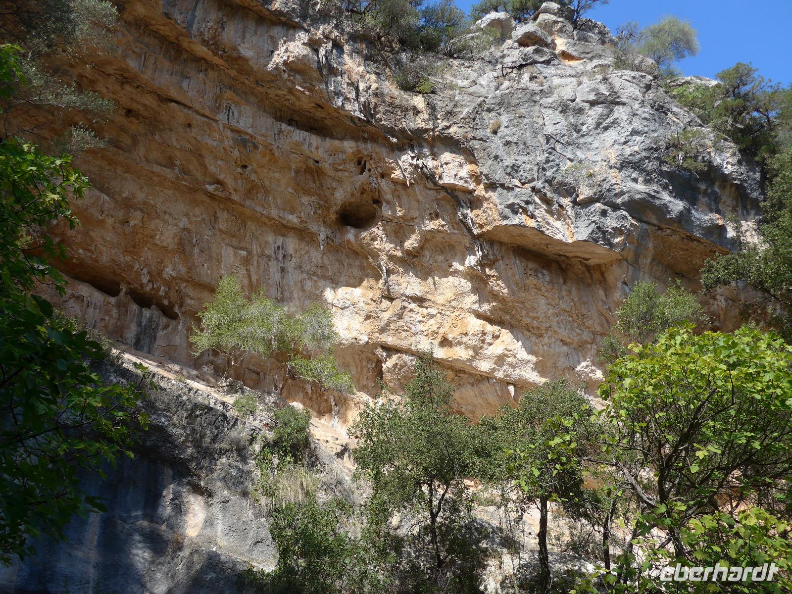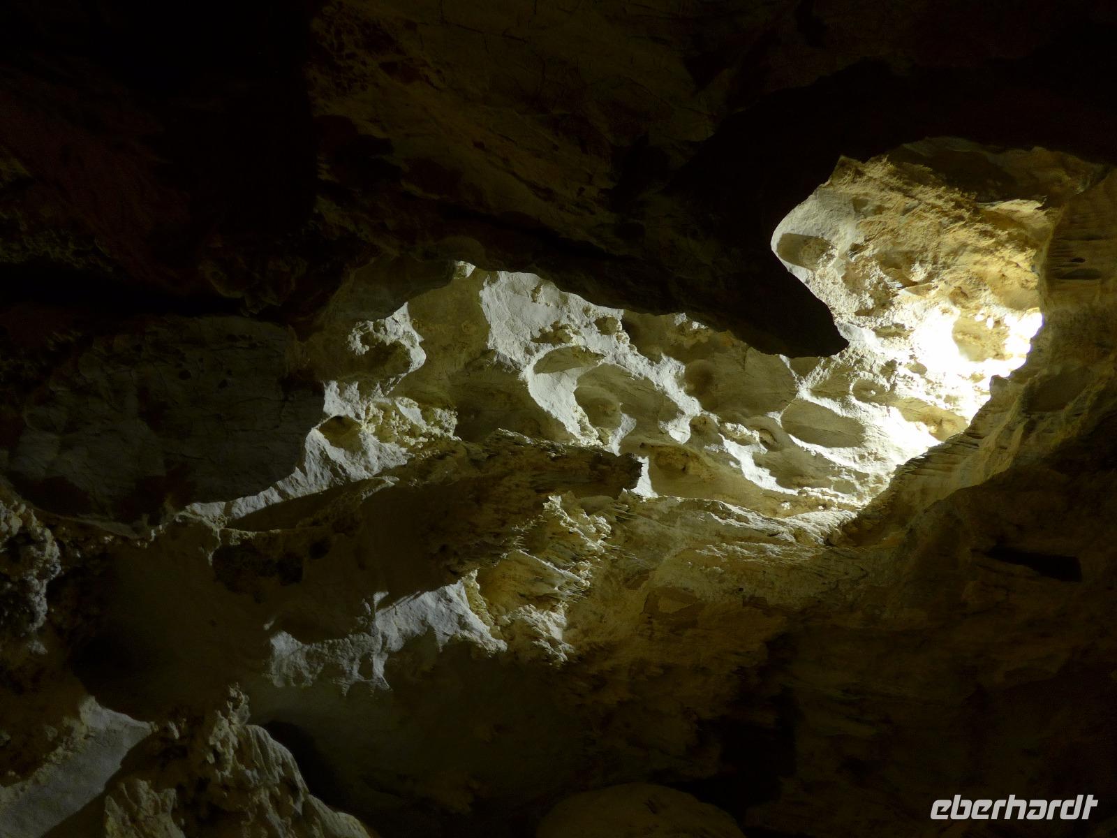 Nach dem Frühstück erwartete uns schon Robin, ein Wanderführer und unser Reriseleiter für das Lanaittu Tal. Auf der Schnellstrasse fuhren wir nach Süden und machten eine Kaffeepause an einer Raststätte bei der Abfahrt. Am Beginn der Lanaittu Tals standen dann 3 Jeeps bereit und wir stiegen um. Auf aussichtsreicher Strasse fuhren wir weit in das Teil hinein und hielten am Besucherzentrum. Von da gingen wir zu Fuß hinauf zum Nuraghendorf Soss Carros, das vor ca. 3500 Jahren entstand. Der Platz wurde bewußt gewählt im Schutz der hohen Felsen und unweit einer Wasserquelle. Robin machte mit uns eine beeindruckende Führung und wies uns auf die wichtigen Details hin. Sogar unser Fahrer Gigi war mit uns hinauf gegangen. Danach besuchten wir die Grotte Sa Oche und wir stiegen hinunter in das Felslabyrint. 1 bis 2 mal im Jahr füllt sich die Grotte bei starkem Regen mit Wasser soweit, das das Wasser sogar durch den hoch gelegenen Eingangsbereich herausfließt. Das muß sehr beeindruckend sein und man kann dieses "Schauspiel" auch nur aus sicherer Entfernung beobachten. Am Besucherzentrum gab es Kaffee und Toiletten und dann fuhren wir zur Mittagspause.
