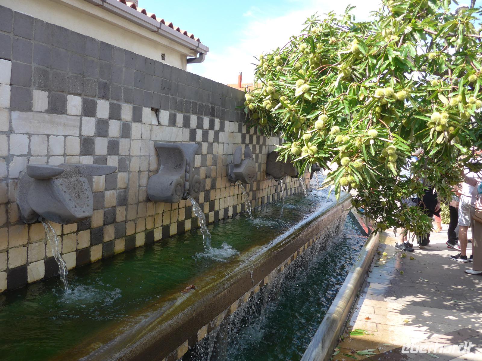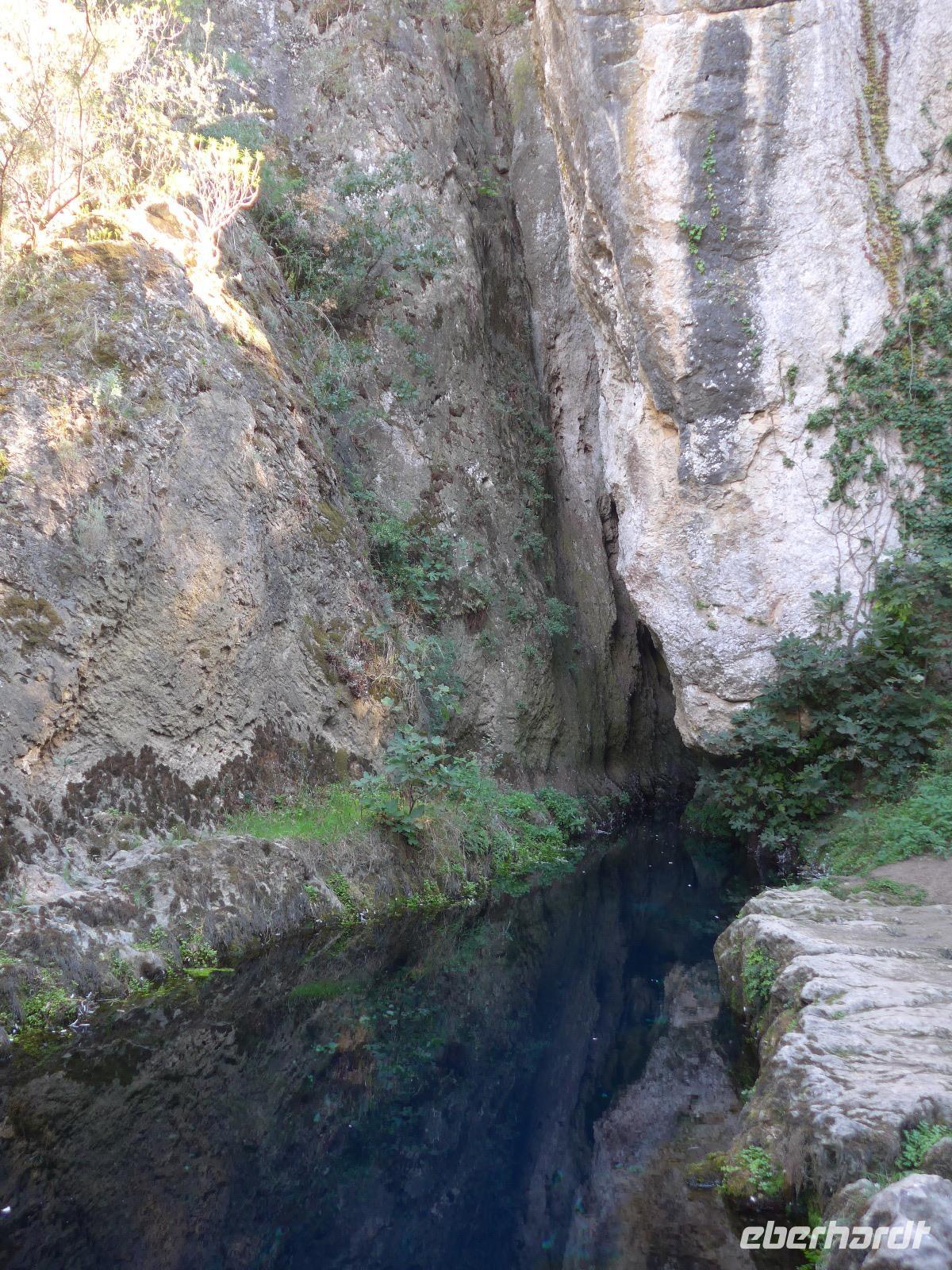 Mit den Jeeps fuhren wir in Richtung Talausgang und hielten noch bei der Quelle Su Gologone. Das Wasser kommt aus einer tiefen Kalkfelsspalte und speist den Fluß Cedrino. Mit 300 Litern pro Sekunde ist sie die stärkste Quelle Sardiniens. Bei der Quelle gab es Souvenirgeschäfte und einen Picknick-Platz.