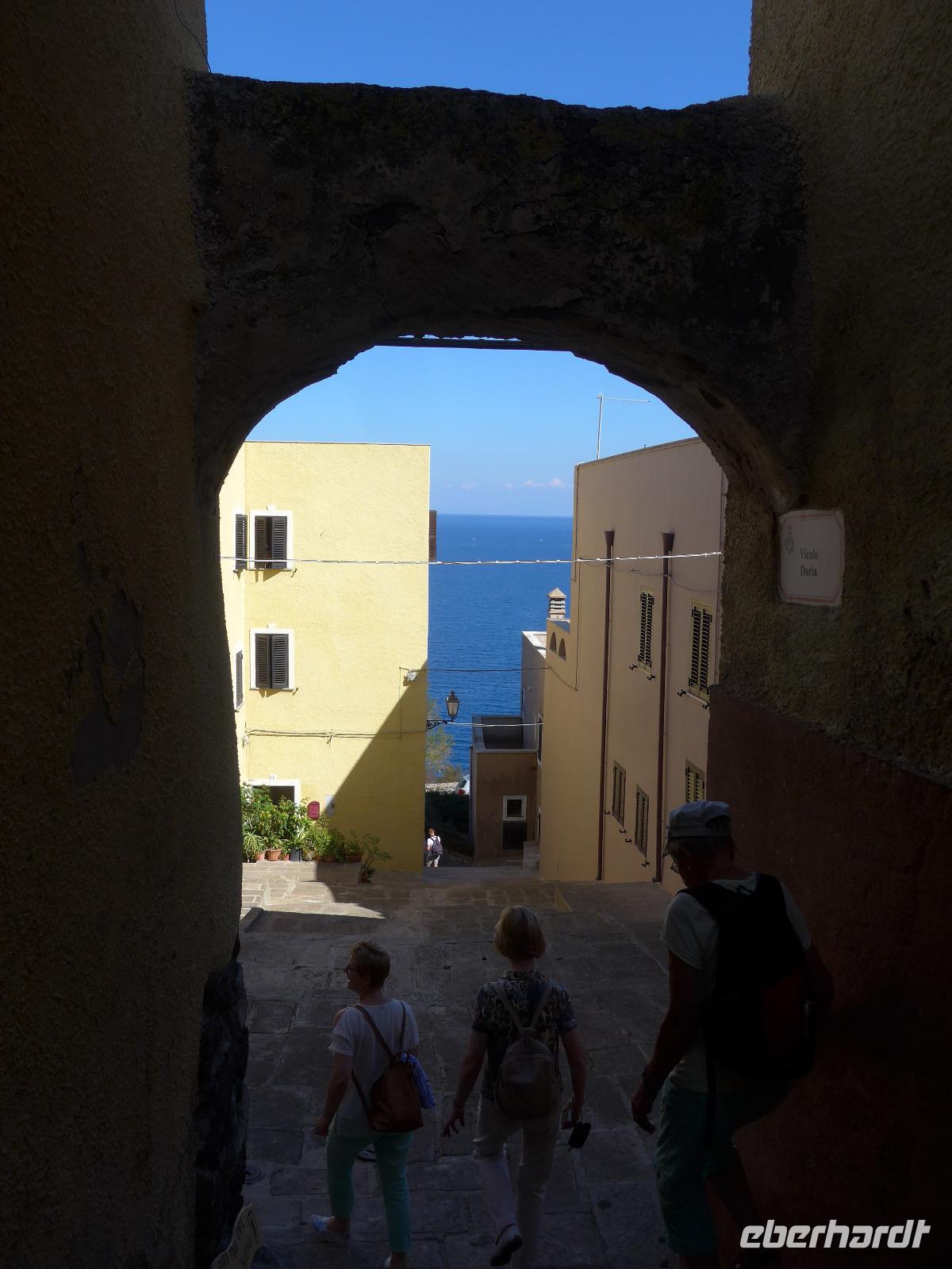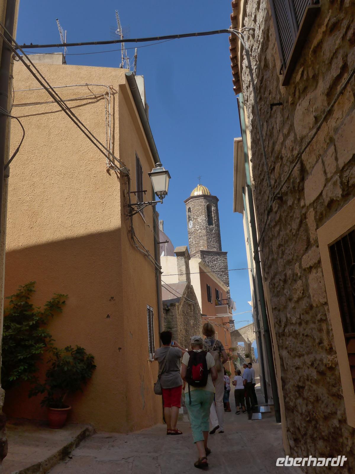 Es folgte der Halt beim wohl berühmtesten Felsen Sardiniens - dem Elefantenfelsen und dort gab es das nächste Gruppenfoto. Ganz in der Nähe lag Castelsardo, um 1100 von der genuesischen Familie Doria auf dem 114 m hohen Hügel gegründet. Mit einem Linienbus fuhren wir hinauf und erkundeten die vielen kleinen und seht steilen Gassen mit herrlichen Ausblicken aufs Meer und den Hafen.