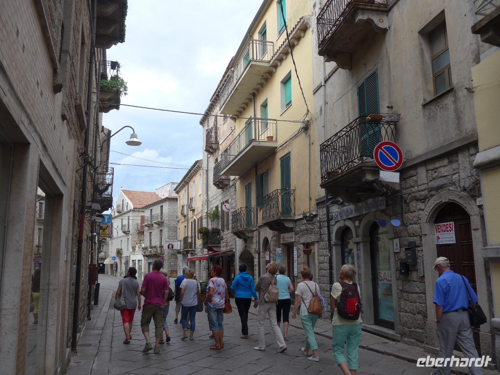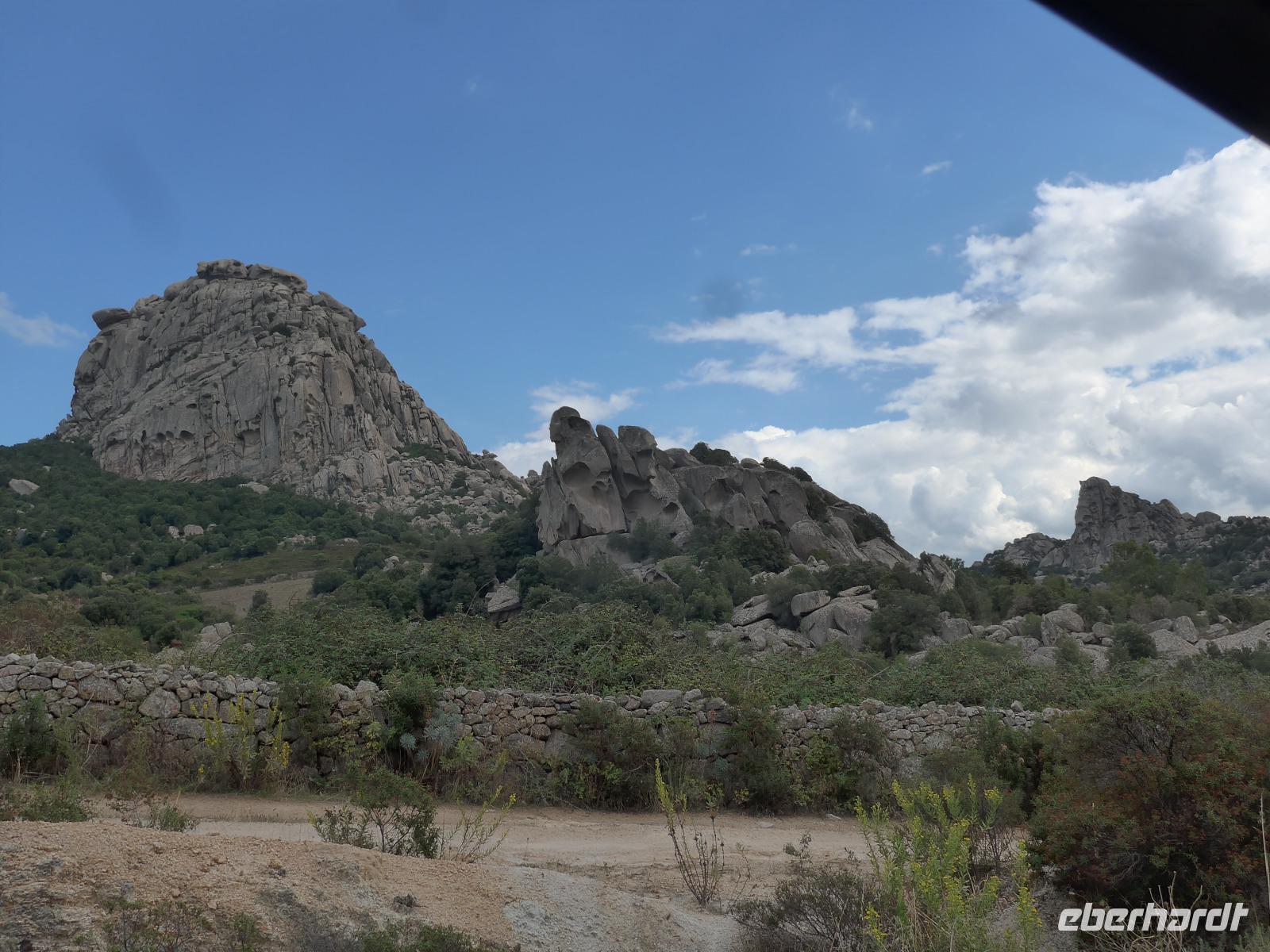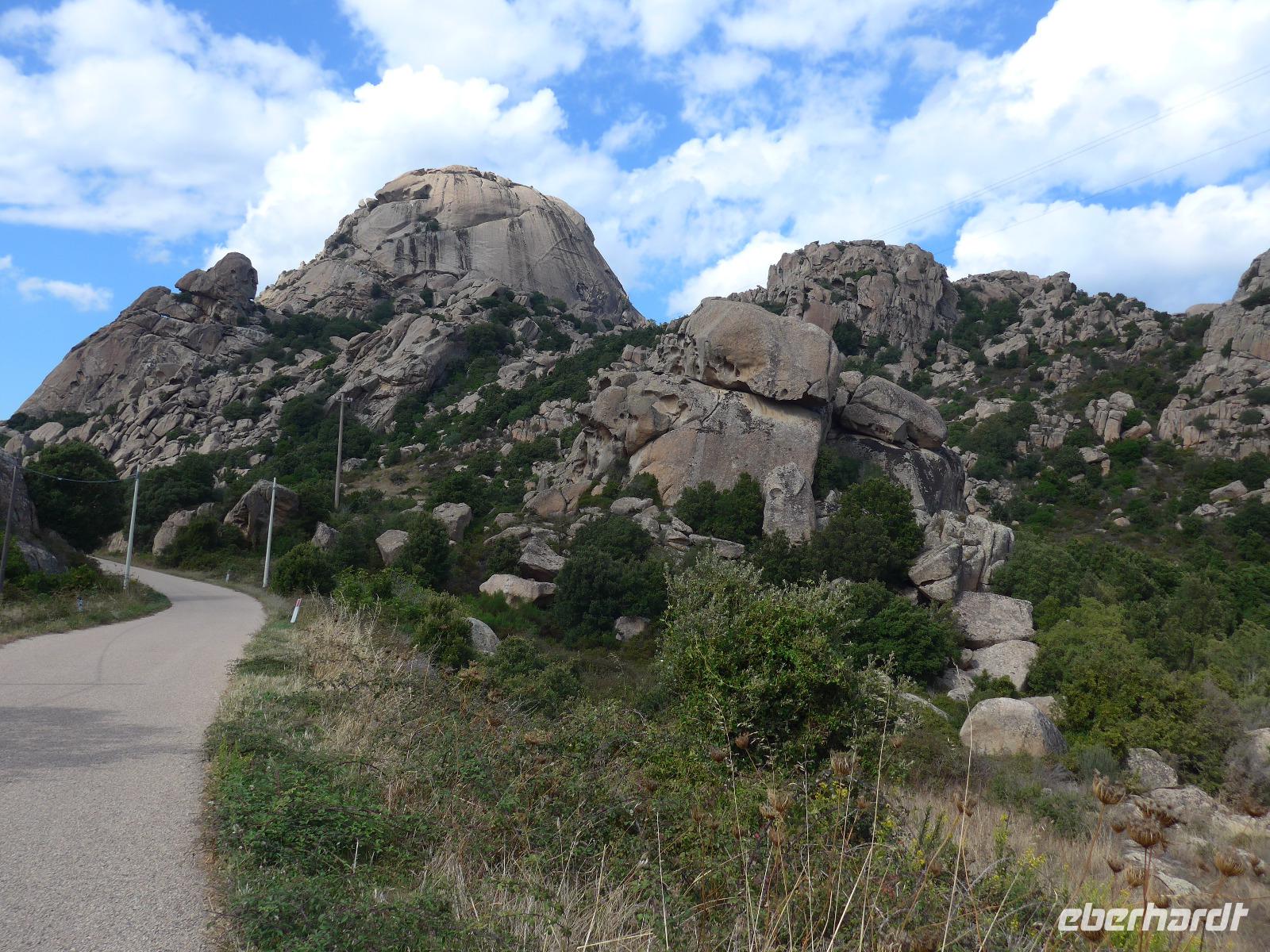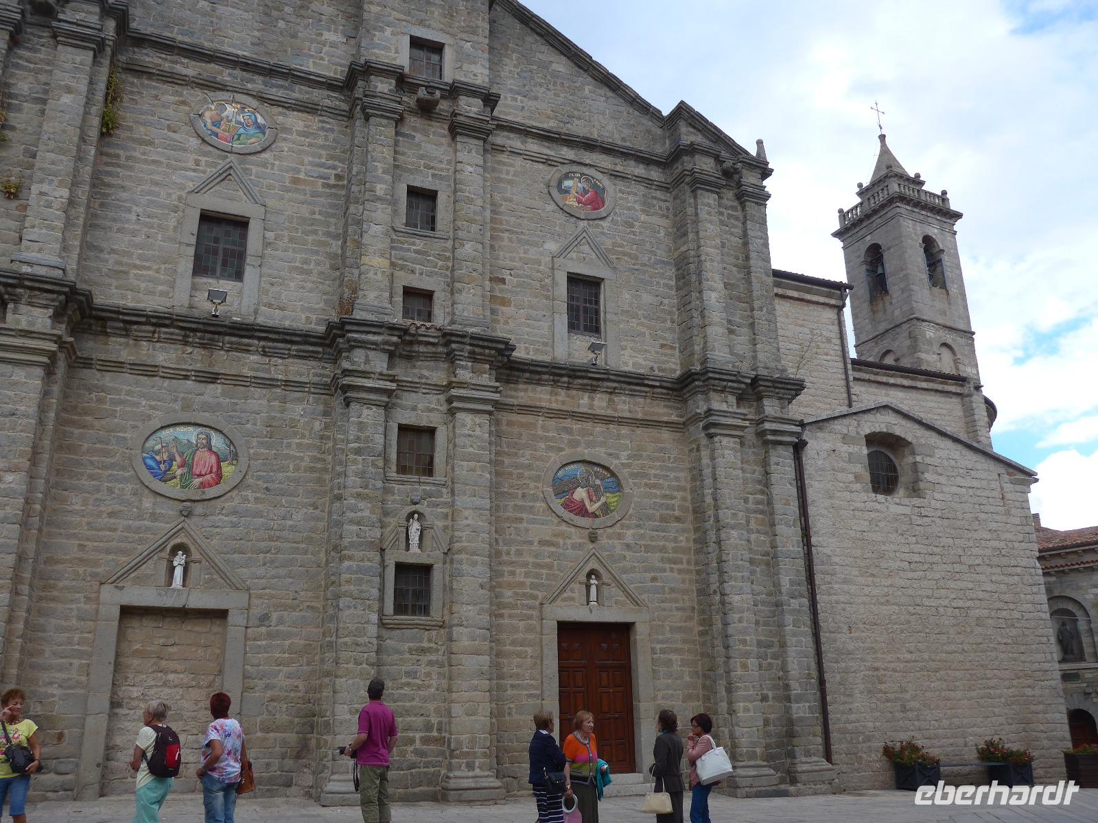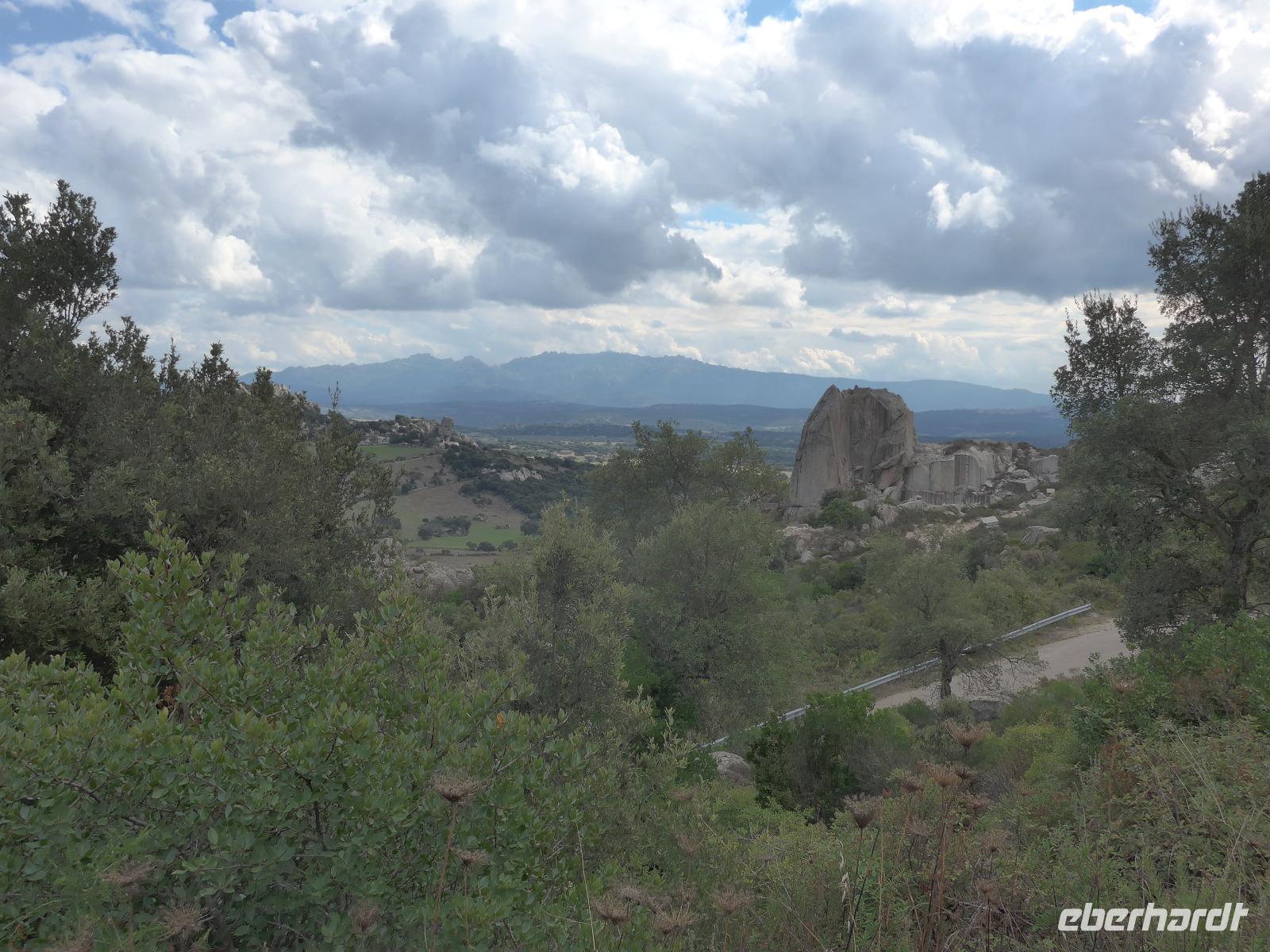 Nach der Mittagspause fuhren wir mit unserem kleinen Bus durch das Mondtal oder auch "Ebene der großen Steine" genannt. In der letzten Eiszeit hatten hier Gletscher, Wind und Wetter diese bizarren Felsen geschaffen. Riesige Granitsteine waren übereinander geschoben und bildeten interessante Formen. Auf der Weiterfahrt ging es in das Gebiet der Korkeichen und schließlich nach Tempio - Pausania ins Zentrum der Korkverarbeitung. Sogar der Kork von Korsika wird hierher zur Verarbeitung gebracht. In Tempio machten wir einen kleinen Rundgang durch das Stadtzentrum mit den zahlreichen unverputzten Granithäusern. Wir warfen einen Blick in die Kathedrale San Pietro und trafen uns wieder auf einen Kaffee und ein Eis in einem netten Lokal. Im Kurpark gab es Mineralwasserquellen, die vor allem Nierenstein- und Harnwegserkrankungen lindern sollen. Unsere Blicke schweiften vom Parkplatz hinüber zum 1369 m hohen Monte Limbara, dem höchsten Berg im Norden Sardiniens.