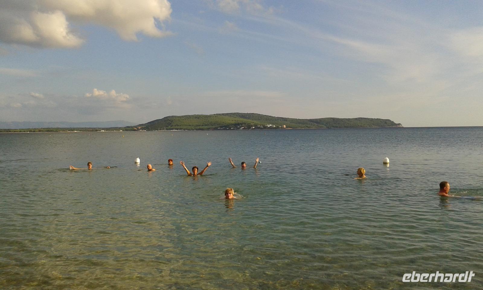 Kristall klares Wasser in allen Blau und Grüntönen, 2 schöne Hotels mit gutem Essen, Alghero, Bosa, Macomer und Castelsardo, ein alter Zug, Grotten, Nuraghen und die Smaragdküste, Essen bei den Hirten