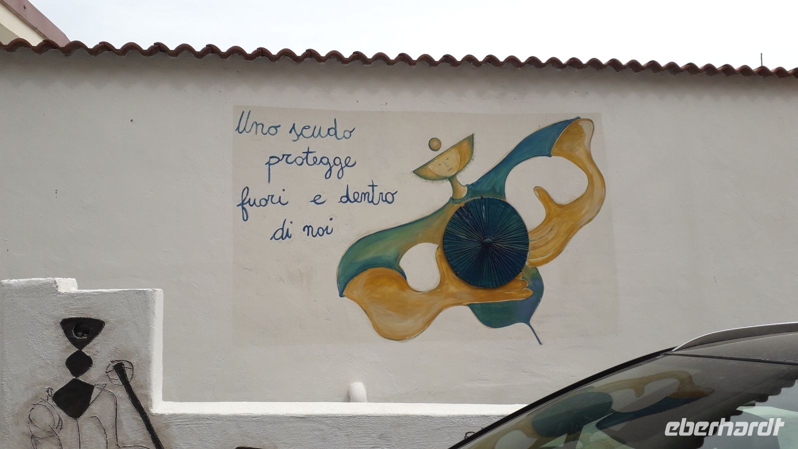 Als wir durch San Sperate laufen, entdecken wir außerdem schöne Wandmalereien. Hier leben viele Maler und Bildhauer, die die Häuserfassaden als Leinwand benutzt haben. Anschließend werden wir zum Hotel gebracht.