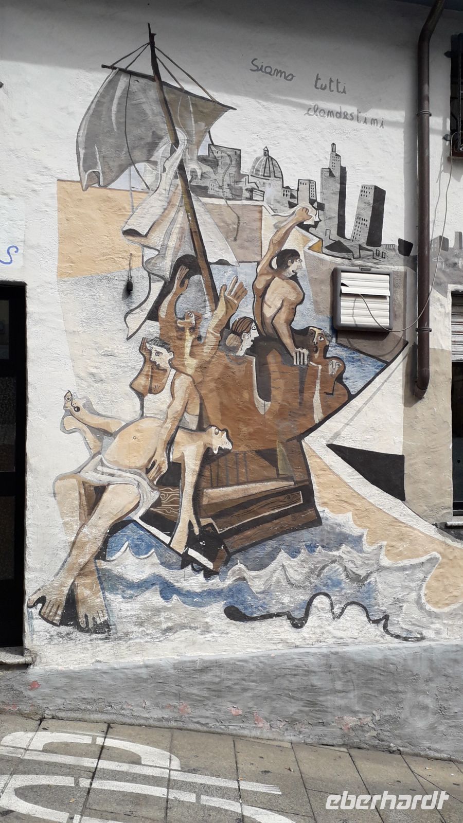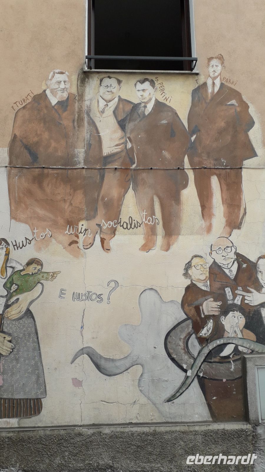 Nach einem kurzen Toiletten- und Kaffeestopp geht es weiter zum Bergdorf Orgosolo im Hinterland, das wir nach ca. drei Stunden erreichen. Hier kann man viele Wandmalereien bewundern. Die meisten haben eine politische oder soziale Botschaft.