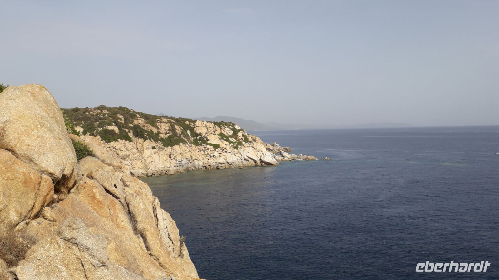 Die Route verläuft von Capo Carbonara weiter zu der Insel dei Cavoli mit dem Hexenfelsen und dann an der Küste entlang zurück nach Villasimius.