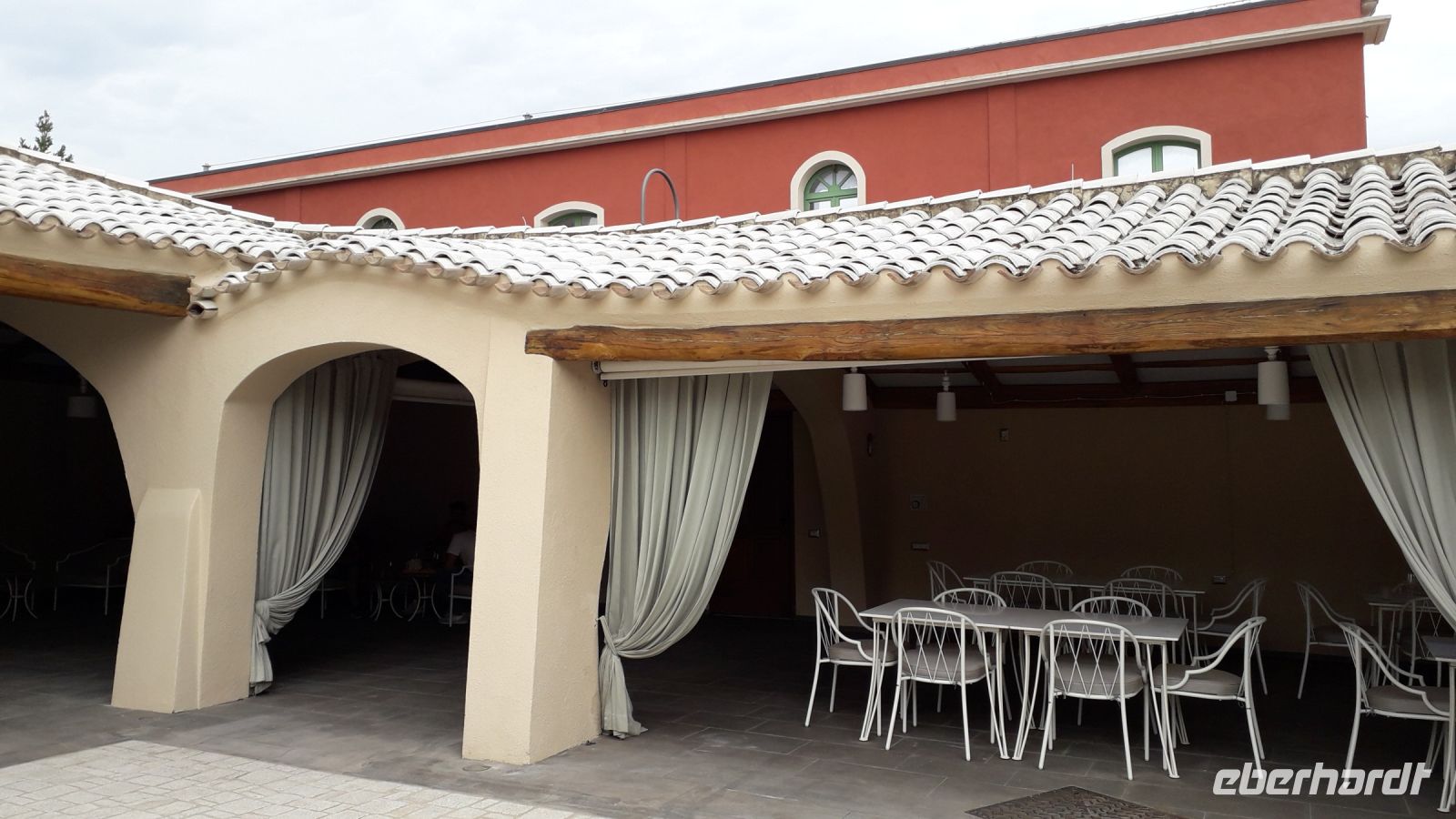 Anschließend fahren wir zu den Weinbergen und schauen uns die Weinrebsorte "Monika" auf dem Feld an. Danach gibt es eine Führung, wo wir u.a. die zahlreichen Barrique-Weinfässer sehen. Zum Schluss probieren wir noch vier verschiedene Weinsorten (zwei Rotweine & zwei Weißweine), dazu gibt es Oliven, den Pecorino Käse, Carasau (papierdünnes knuspriges Fladenbrot), Wurstspezialitäten und Wasser.
