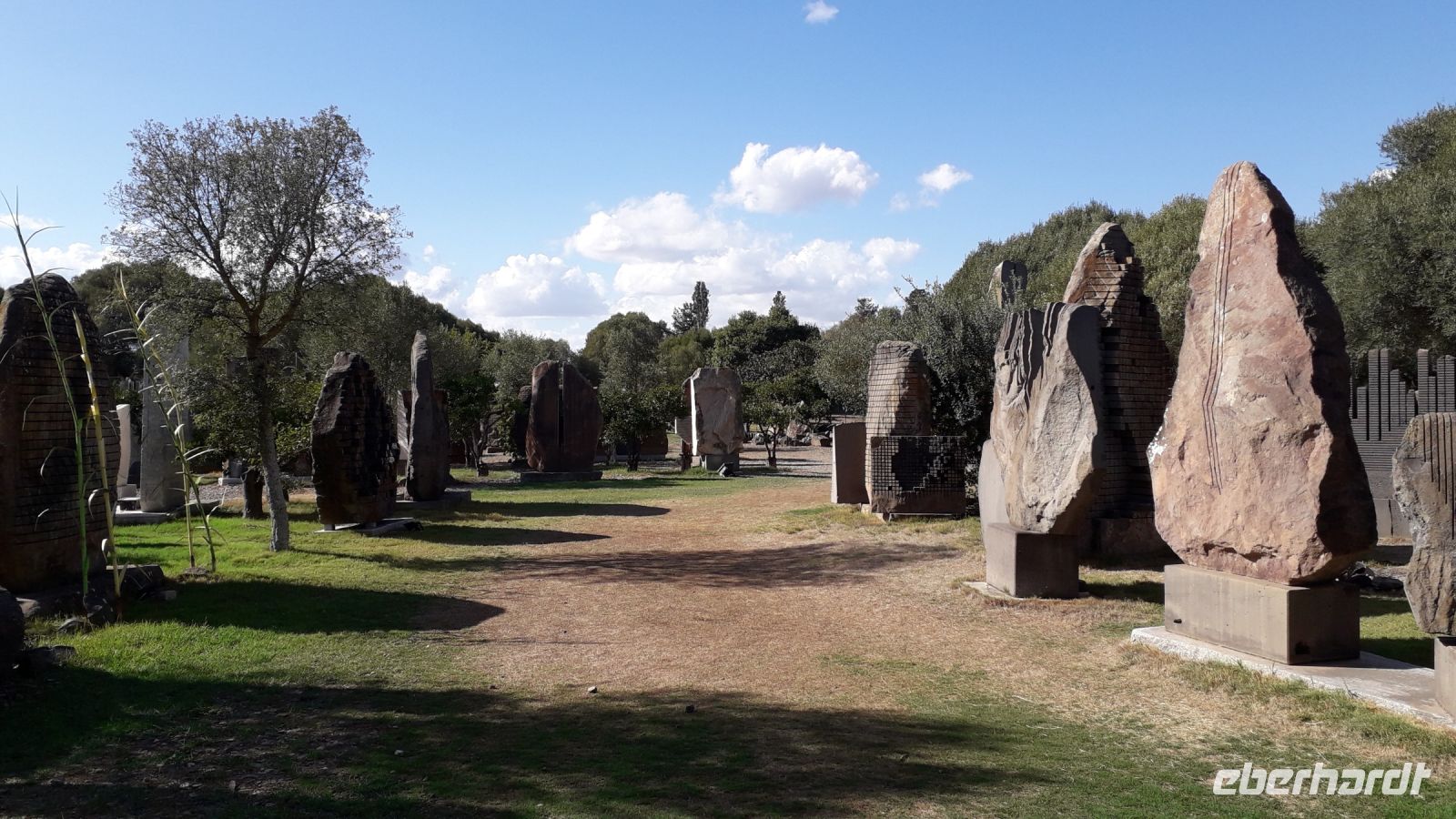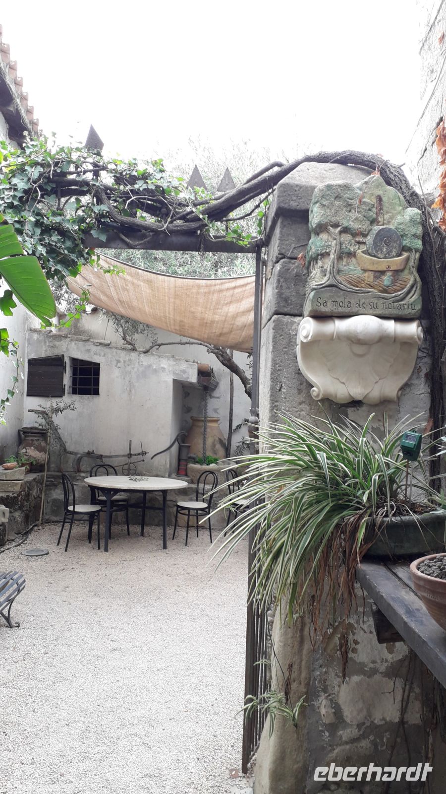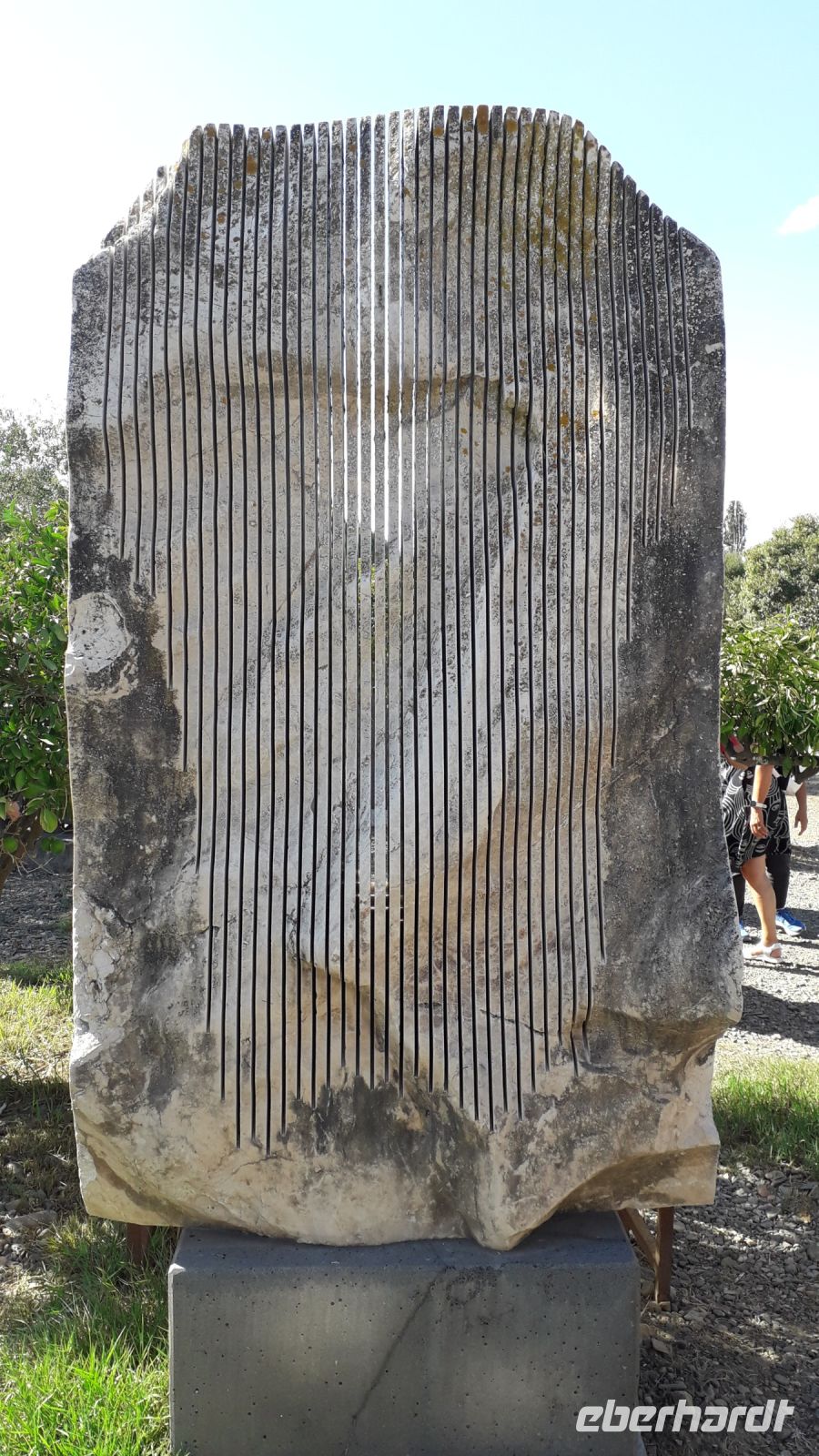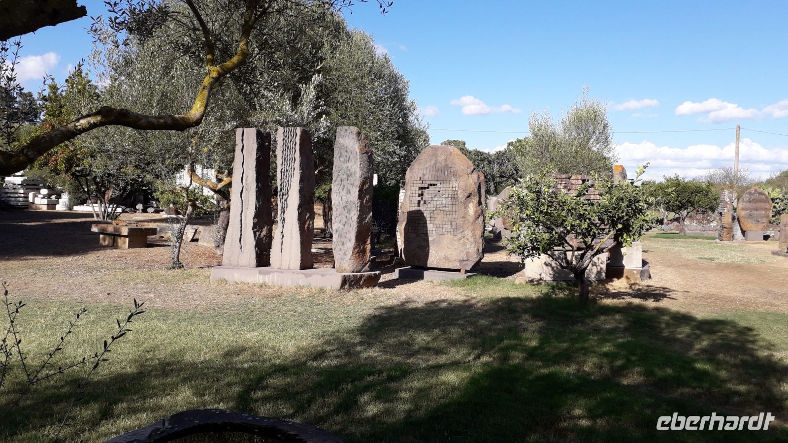 Am Nachmittag steht ein besonderes Highlight auf dem Programm: der Besuch des Künstlerdorfes San Sperate mit dem berühmten Skulpturen- und Klanggarten "Giardino Sonoro" von Pinuccio Sciola. Der sardische Künstler kehrt nach seinem Kunststudium im Ausland (Florenz, Madrid, Mexiko, etc.) nach Sardinien zurück und schafft hier ein Universum an klingenden Steinen, die unter freiem Himmel bewundert werden können. Bei der Führung durch den Garten hören wir ein paar Steine "singen" und sind begeistert.
