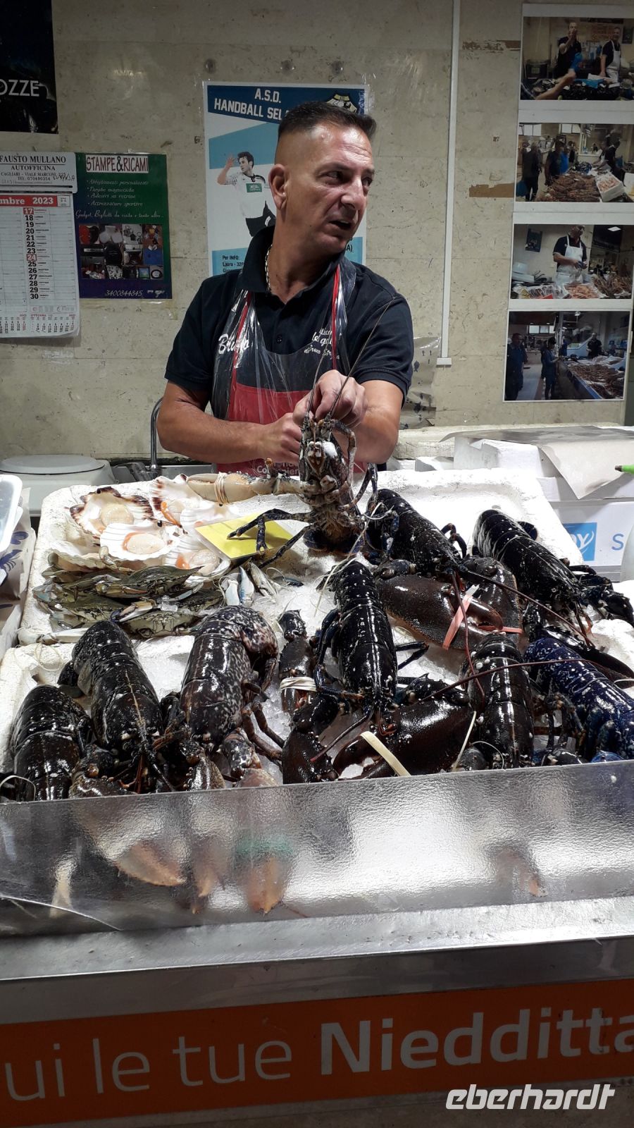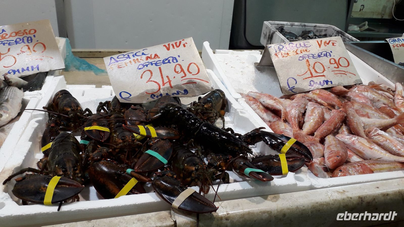 Als nächstes besuchen wir die zweistöckige Markthalle di San Benedetto - die größte in Italien. Dicht an dicht drängen sich hier Obst-, Gemüse-, Fleisch-, Fisch- und Käsestände. Hier kann man täglich bis 14 Uhr einkaufen.