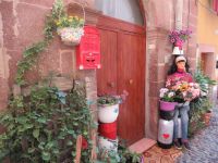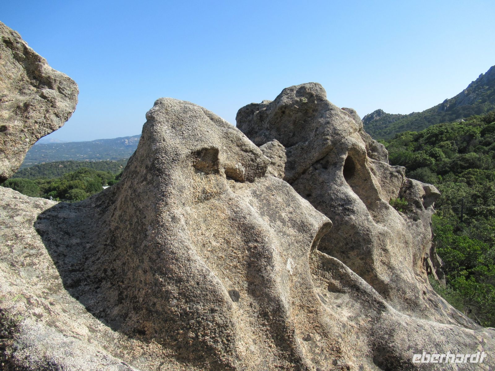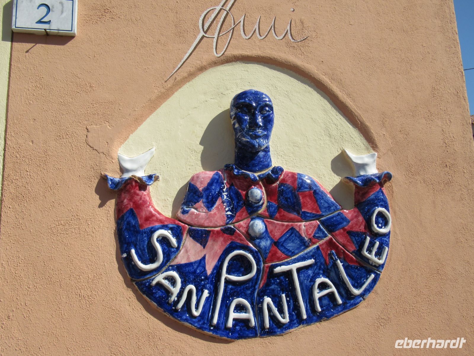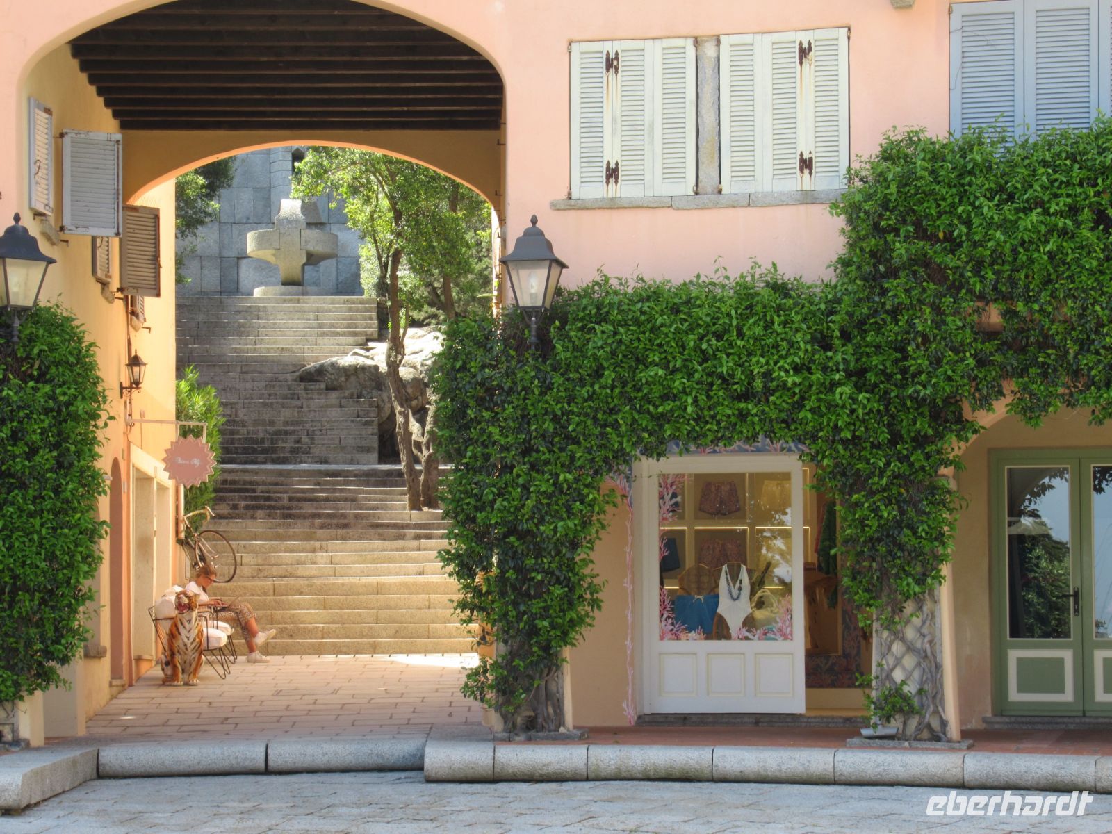Kleine Orte, tolle Buchten, kleine Häfen, türkisblaues Meer und prachtvolle Villen der Reichen und Schönen wollten wir heute entdecken. In San Pantaleo, ein schlichtes, mitten in den Bergen gelegenes, malerisches Örtchen begann unsere Entdeckungsreise. Kleine Granit-Häuschen, blumengeschmückte Gassen, wunderschön dekorierte Geschäfte und einen hübsch gestalteten Dorfplatz mit herrlichem Blick auf abenteuerliche Felsformationen konnten wir auf unserem gemütlichen Spaziergang entdecken.
