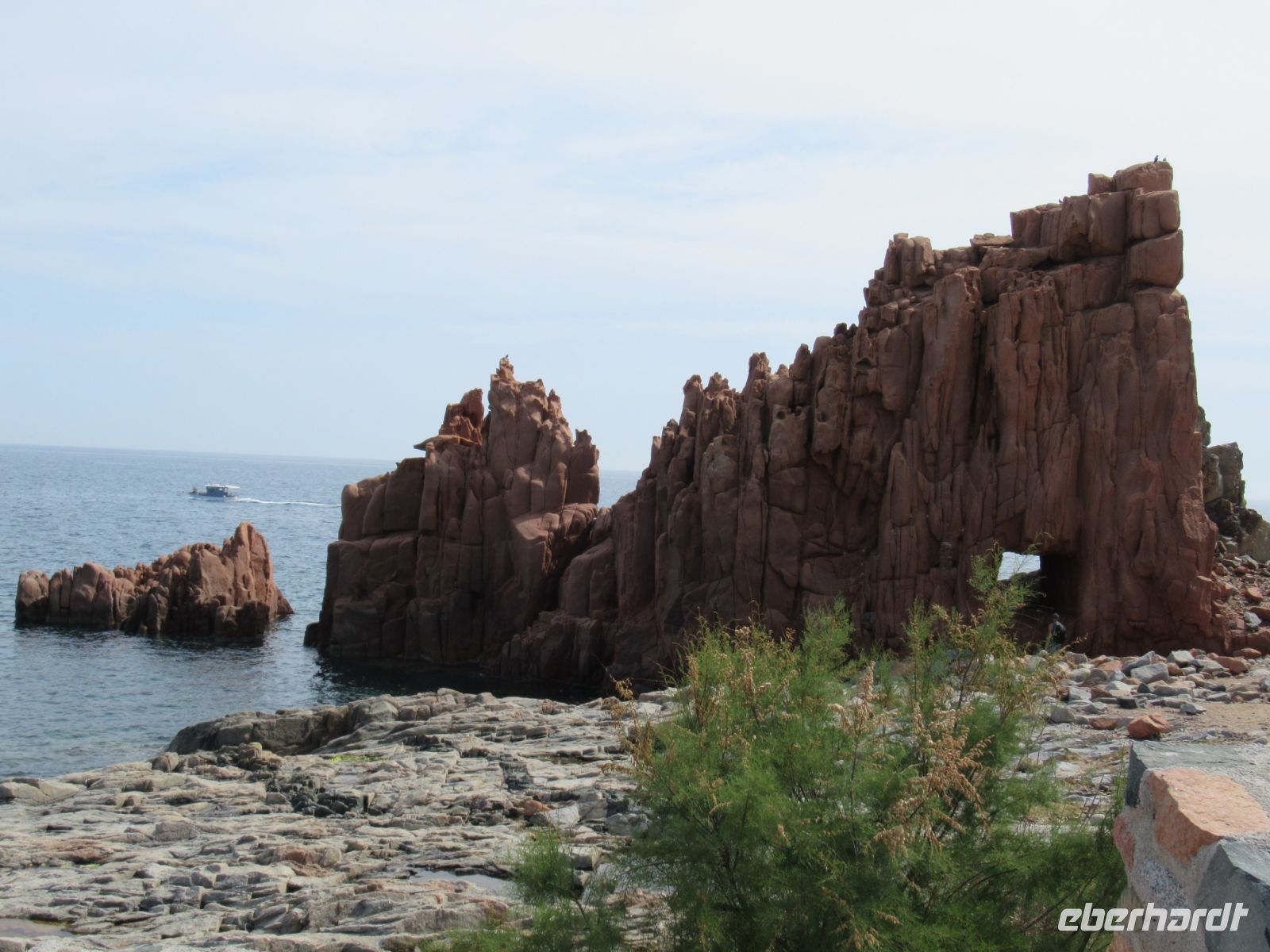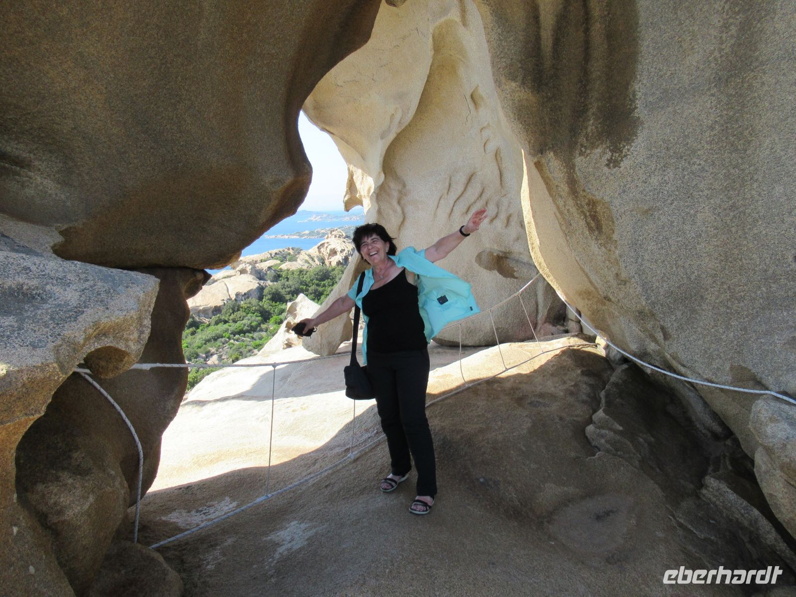 Zurück auf der Hauptinsel La Maddalena, unternahmen wir eine Inselrundfahrt und genossen unterwegs die fabelhaften Aussichten auf wilde Buchten mit türkisblauem Wasser. An einer ruhig gelegenem kleinen Strandbucht, wo auch unser Bus problemlos parken konnte, machten wir eine Pause und alle Badehungrigen konnten sich in das, noch empfindlich kalte kristallklare Wasser stürzen. Anschließend fuhren wir wieder in die Inselhauptstadt La Maddalena und lernten bei einem Spaziergang die kleinen Gassen und Geschäfte näher kennen. Noch ein leckeres italienisches Eis genießen und schon ging es mit der Fähre wieder zurück nach Sardinien um das Capo d‘ Orso zu besuchen, einem gewaltigen Granitfelsen in Form eines Bären. Diese Felsformation wurde durch Gezeiten und Wasser-Strömungen aus dem Granitfelsen geformt und diente aufgrund der markanten Form, die an einen Bären erinnert, für Seefahrer aller Epochen als Orientierungspunkt zur Navigation zwischen den vielen kleinen Inseln.