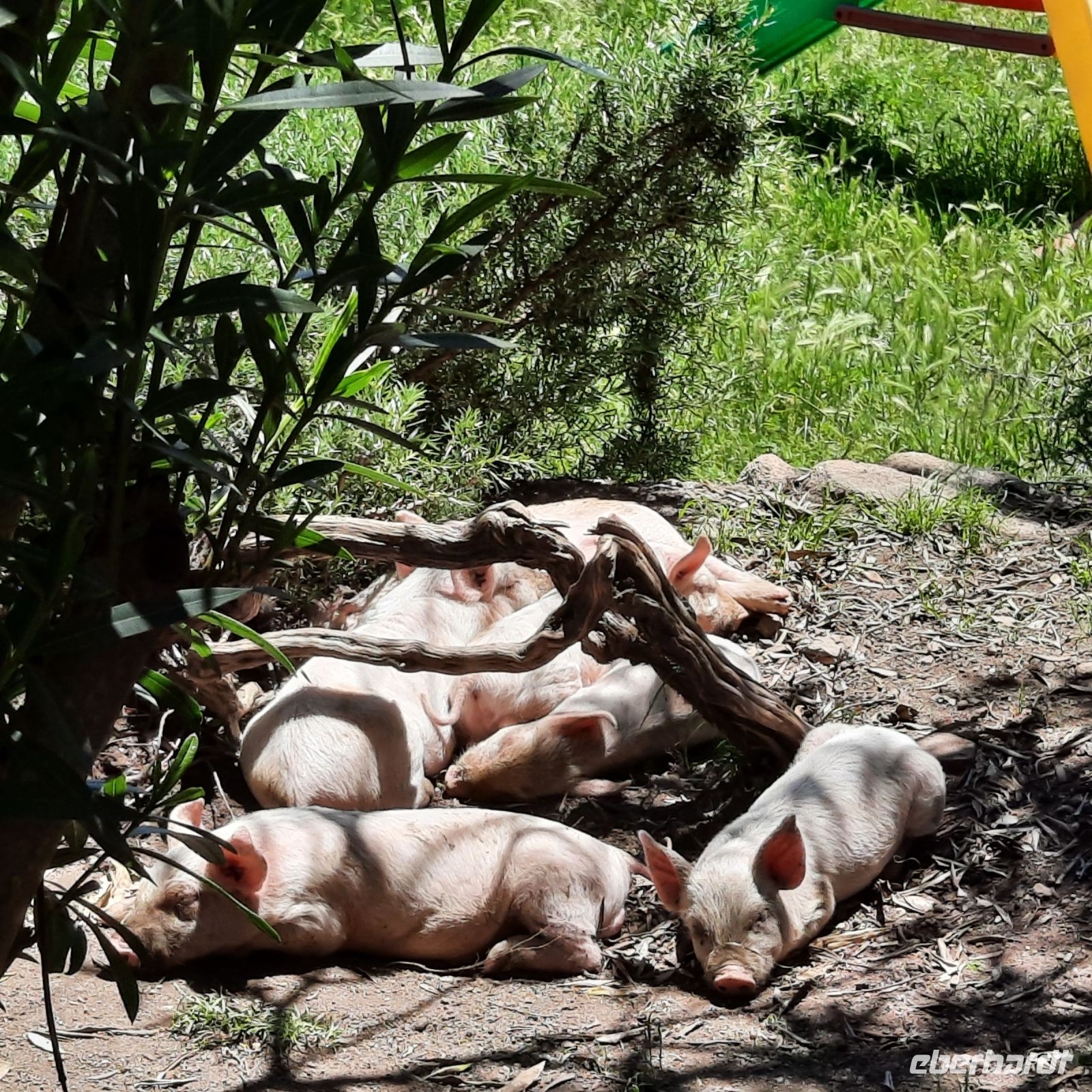 Die nächste Etappe unserer Entdeckungsreise, die Westküste Sardiniens, stand auf dem Programm. Bei wieder strahlendem Sonnenschein machten wir uns auf den rund 170km langen Weg nach Alghero durch die Gallura. Das Gebiet ist geprägt durch den dichtesten Korkeichenbestand Sardiniens, aber auch durch kahle Hochflächen mit bizarren Granitzacken ohne Bäume und Sträucher. In der sardischen Kleinstadt Tempio Pausania machen wir Pause. Ein Spaziergang führt uns entlang winkliger Granitgasse mit ausgetretenem Pflaster, vorbei an alten Bürgerhäusern mit blumengeschmückten Balkonen, durch das Stadtzentrum. Sehenswert die Kathedrale di San Pietro und das Oratorium. Es bleibt ein wenig Zeit in den kleinen Läden zu stöbern, die verschiedensten Produkte aus Kork anbieten oder einen Kaffee zu genießen. Zur Mittagszeit werden wir auf einem sardischen Bauernhof erwartet. In familiärer Atmosphäre unter freien Himmel, umgeben von den Tieren des Hofes, verkosten wir leckere Köstlichkeiten aus eigener Herstellung, wie Käse, Schinken, Schaffleisch, Gemüse, Nudeln & Gebäck bei einem guten Glas Wein. Natürlich darf auch der Selbstgebrannte nicht fehlen – wahlweise Myrto, Crappa oder Limoncello. Gern wären wir noch länger geblieben.