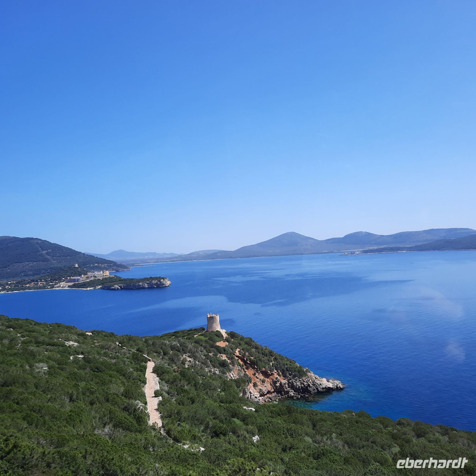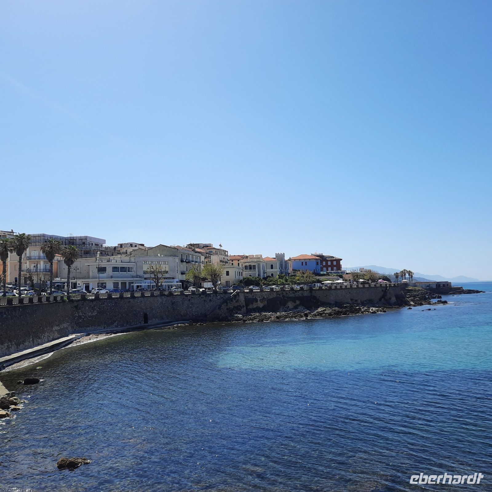 Immer wieder werden die Häuserzeilen durchbrochen durch Panorama-Terrassen, die den Ausblick auf die umliegenden Buchten freigeben. Nach diesem schönen Erlebnis machen wir und auf die letzte Etappe den heutigen Tages nach Alghero an der sardischen Westküste.