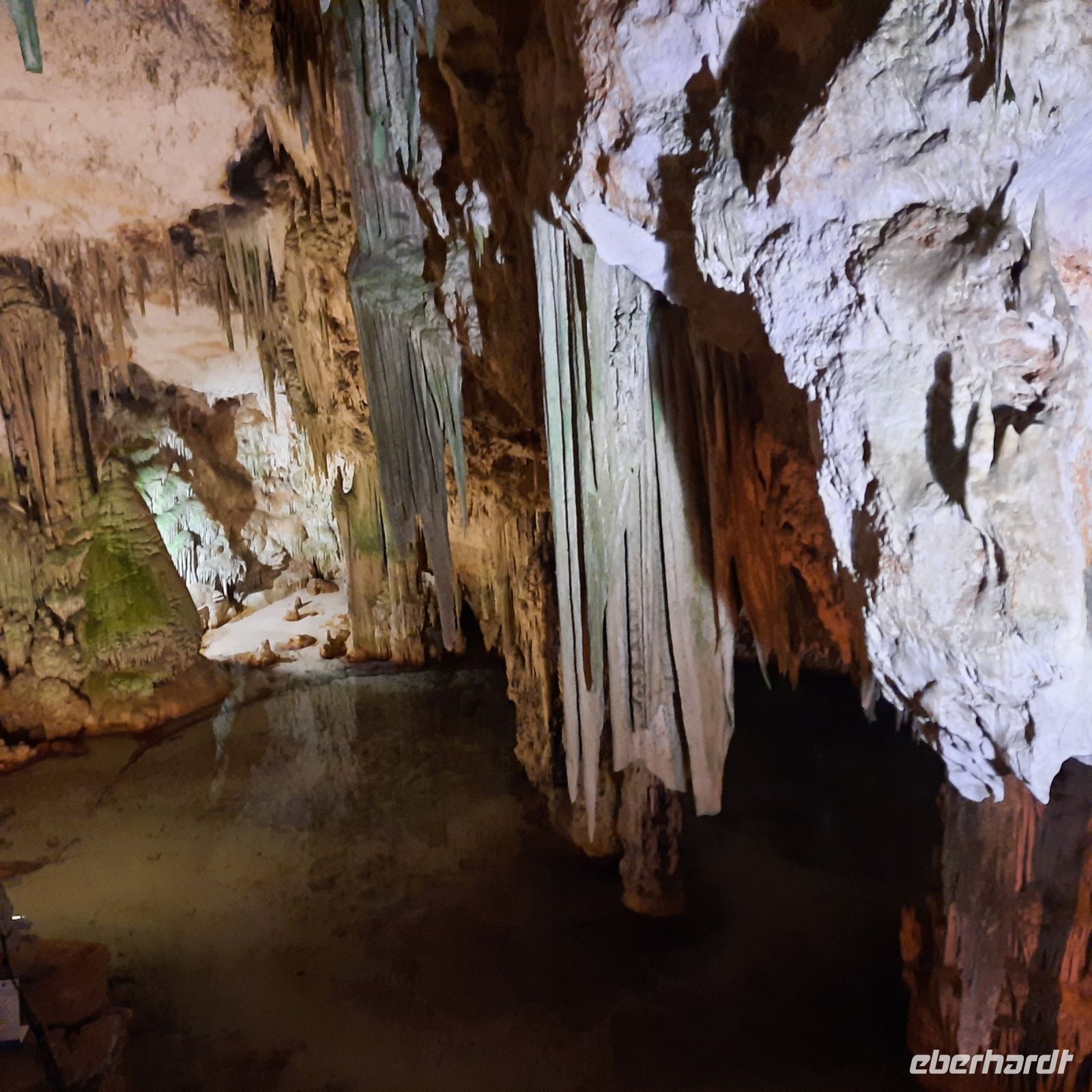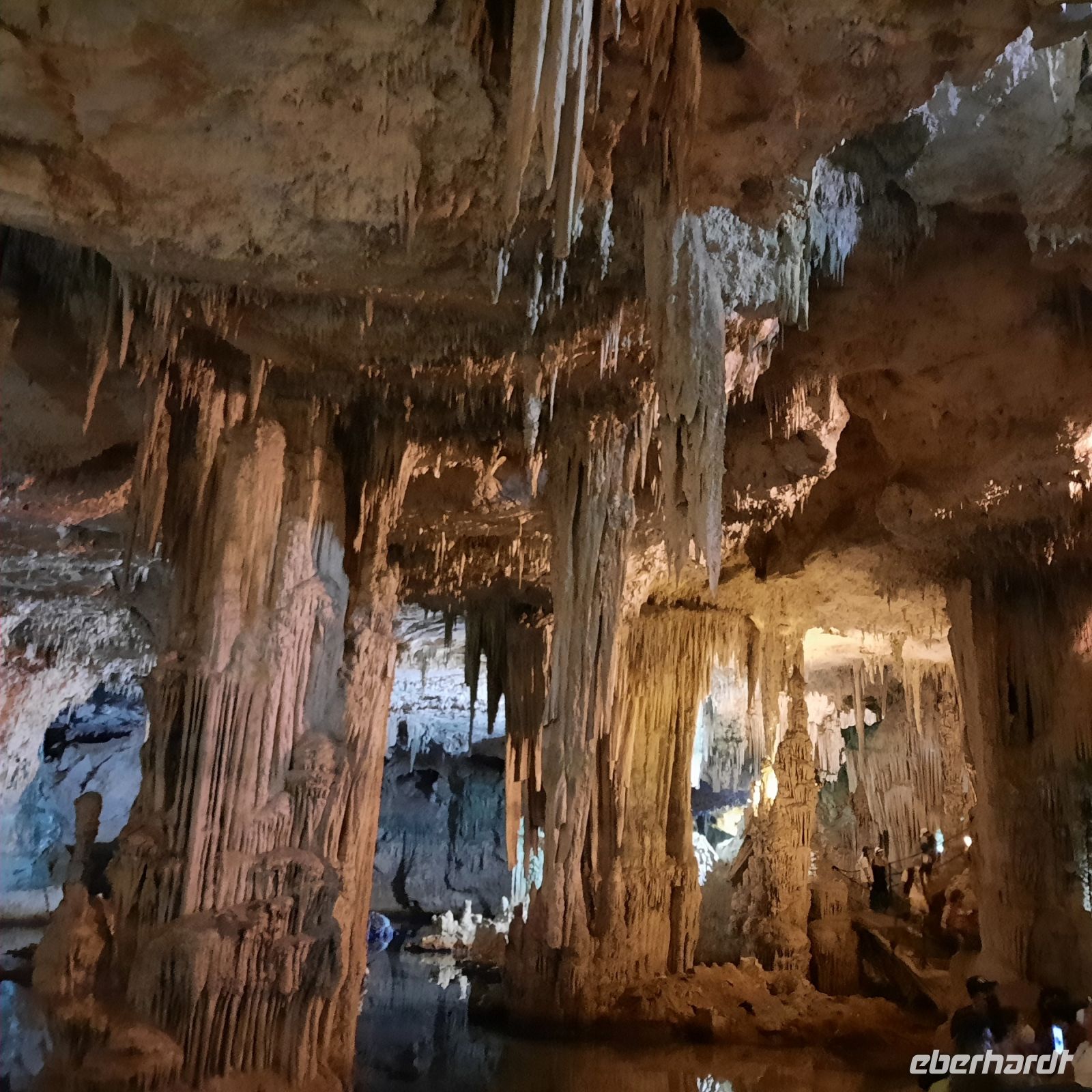 Am Nachmittag erwartete uns eine Bootsfahrt entlang der Küste Porto Conte, zum Capo Caccia mit Sardinien‘s bekanntester Tropfsteinhöhle, der Grotta di Nettuno. Die Grotte führt 500m in den Berg hinein und beeindruckt mit ihren Tropfsteinhallen und riesigen Stalaktiten und Stalakmiten, die im laufe der Jahrhunderte entstanden sind.