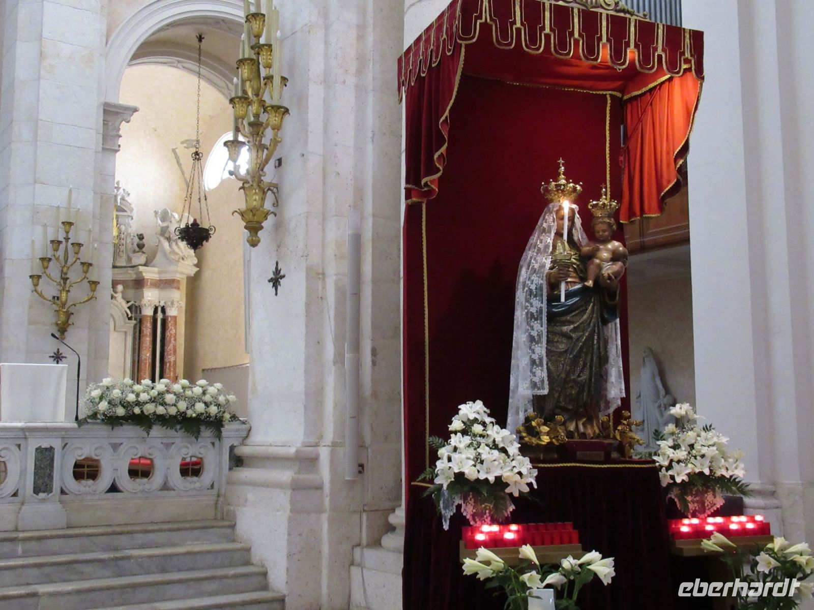 Mit Anja spazierten wir das historische Hafenviertel. Umringt von einer gewaltigen Stadtmauer, betrachteten wir hier die farbenfrohen Geschäfte, die Kirche Chiesa di San Michele mit ihrem bunten Kuppeldach und das malerische Kloster San Francesco. In vielen kleinen Geschäften wird hier Schmuck angeboten, welcher aus roten Korallen hergestellt wird. Die Korallenart ist eine der Besonderheiten von Alghero und ziert sogar das Stadtwappen.