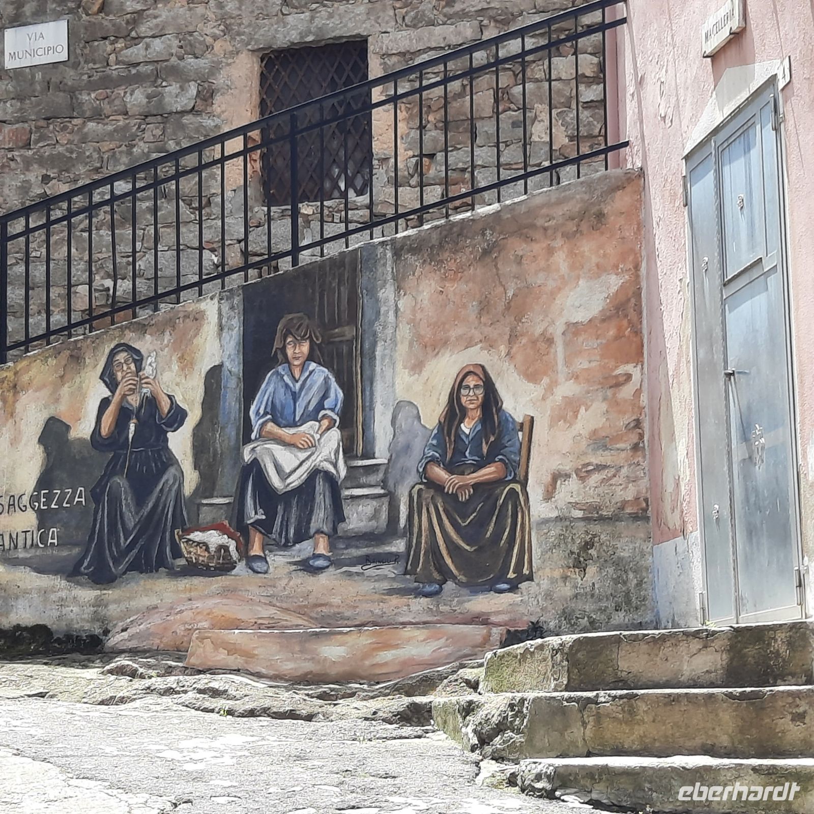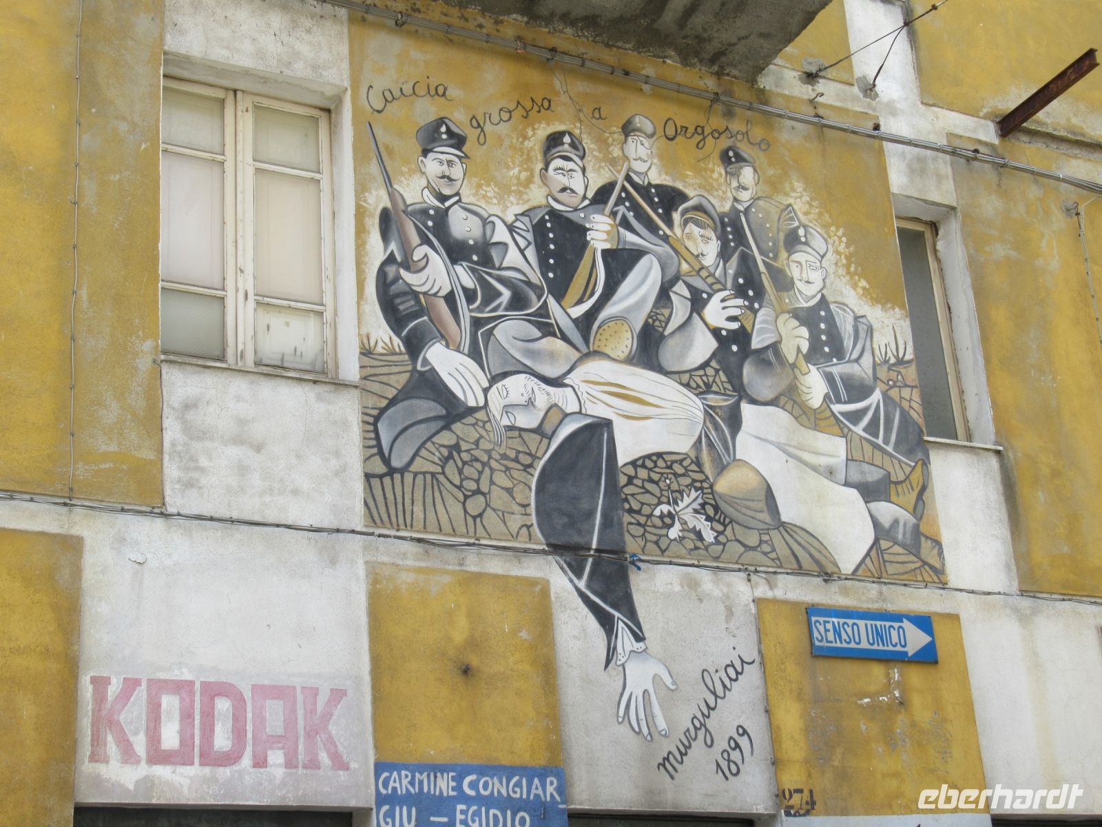Unser letzter Ausflug auf der schönen Insel Sardinien führt uns heute in den Osten und ins Innere der Insel. Bei unserem ersten Stopp konnten wir die feenhafte Klippe des Rocce Rosse in Arbatax bestaunen. Dies sind Überreste roter Porphyrfelsen, auf denen Wind und Wasser im Laufe der Jahrhunderte vage geometrische Formen geschaffen hat. Die Aussicht entlang der Bergstraßen genießend fuhr wir weiter ins „Banditendorf“ Orgosolo. Hier zeigte uns Anja bei einem Rundgang viele der für das Örtchen bekannten Murales. Diese farbenfrohen politischen Wandmalereien sind in dem Bergdorf seit Mitte des 20. Jahrhunderts Tradition.
