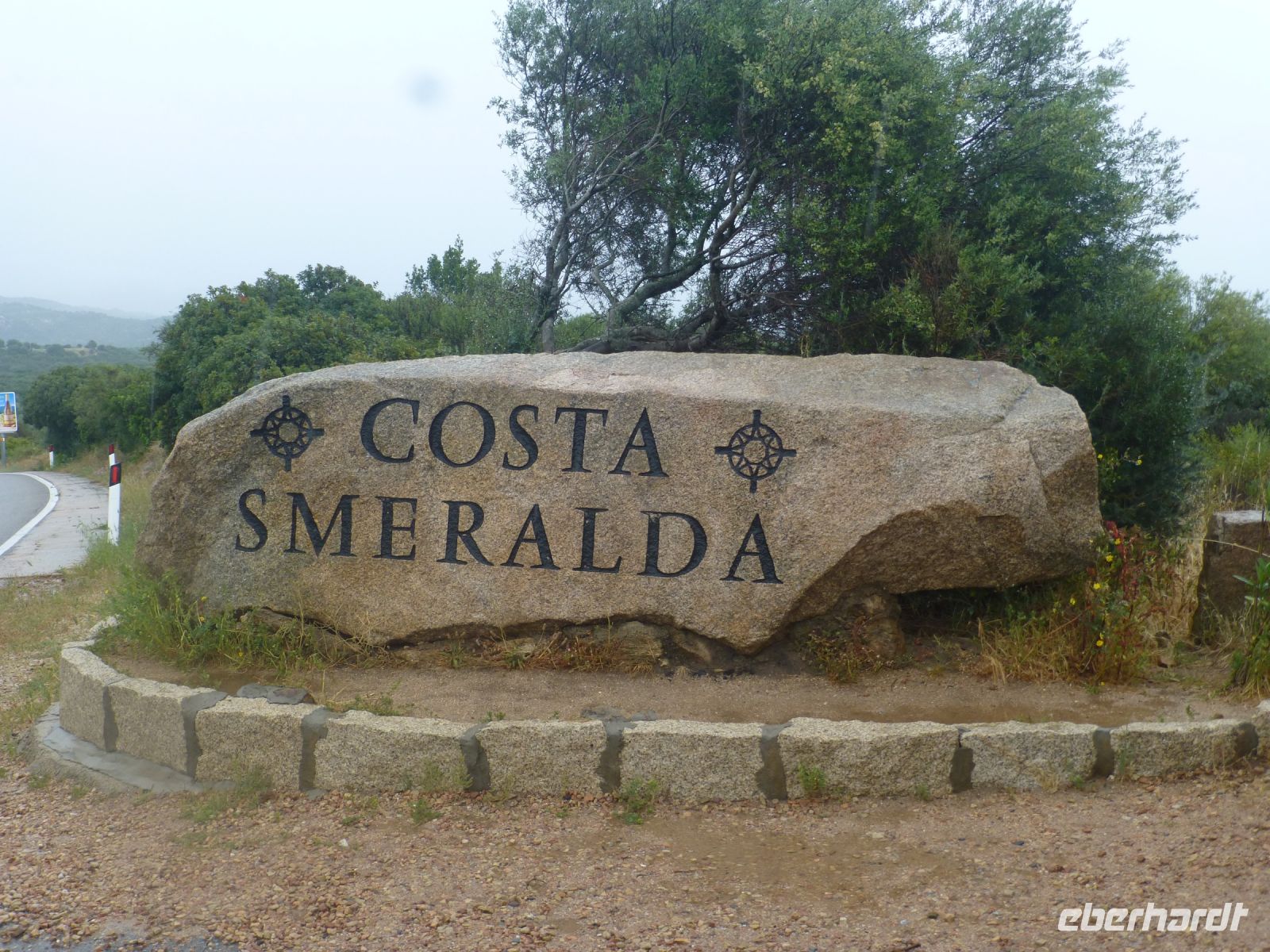 Wir passieren den „Grenzstein“ zur Costa Smeralda – es ist sozusagen der Markenname für einen ganz bestimmten Küstenabschnitt. Der ist nicht lang und man muss schon wissen, wann man dort ist. 1962 durch ein Konsortium angelegt mit dem Wunsch, ein Refugium für die Reichen zu schaffen. Wohin sollten auch die armen Menschen, die Welt steht ihnen offen, doch wenn die Orientierung fehlt, können 55 km Küste auf Sardinien schon helfen. Sylt in Groß…