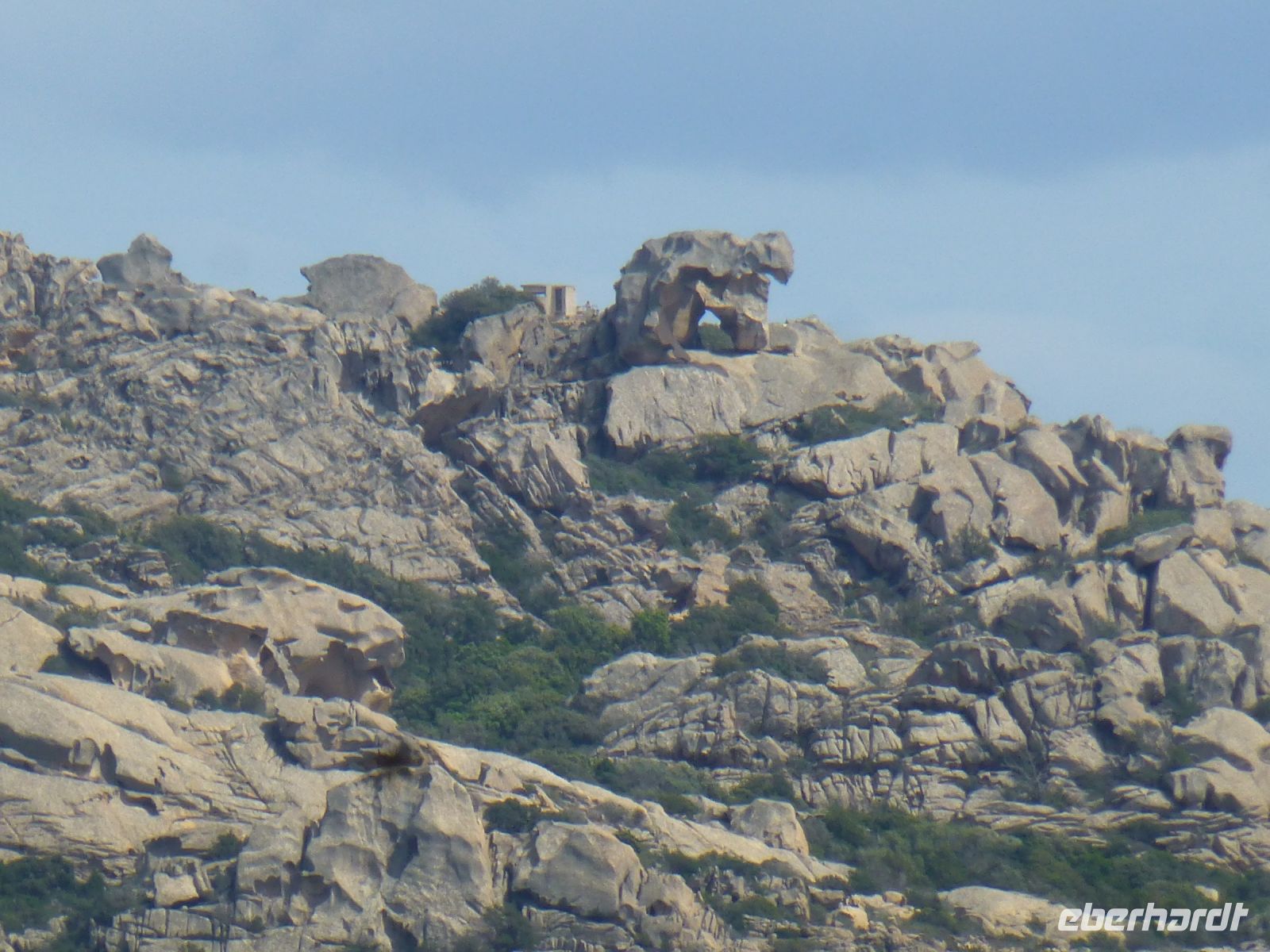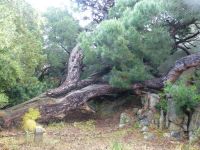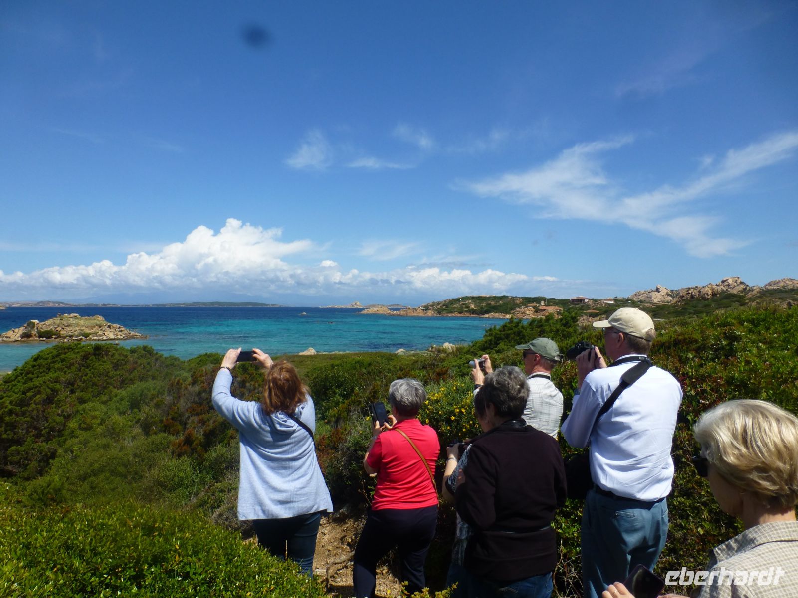 Guido, unser Busfahrer, fährt uns zunächst über eine schmale Brücke auf die Insel Caprera. Diese Insel war früher militärisches Sperrgebiet, so dass sich die Natur so recht nach Lust und Laune entfalten konnte, was der Insel gut steht. Wir fahren unter Pinienalleen entlang und bekommen einen kleinen Eindruck, dass es sich hier gut wandern lässt. Kioske am Wegesrand sichern die Versorgung.